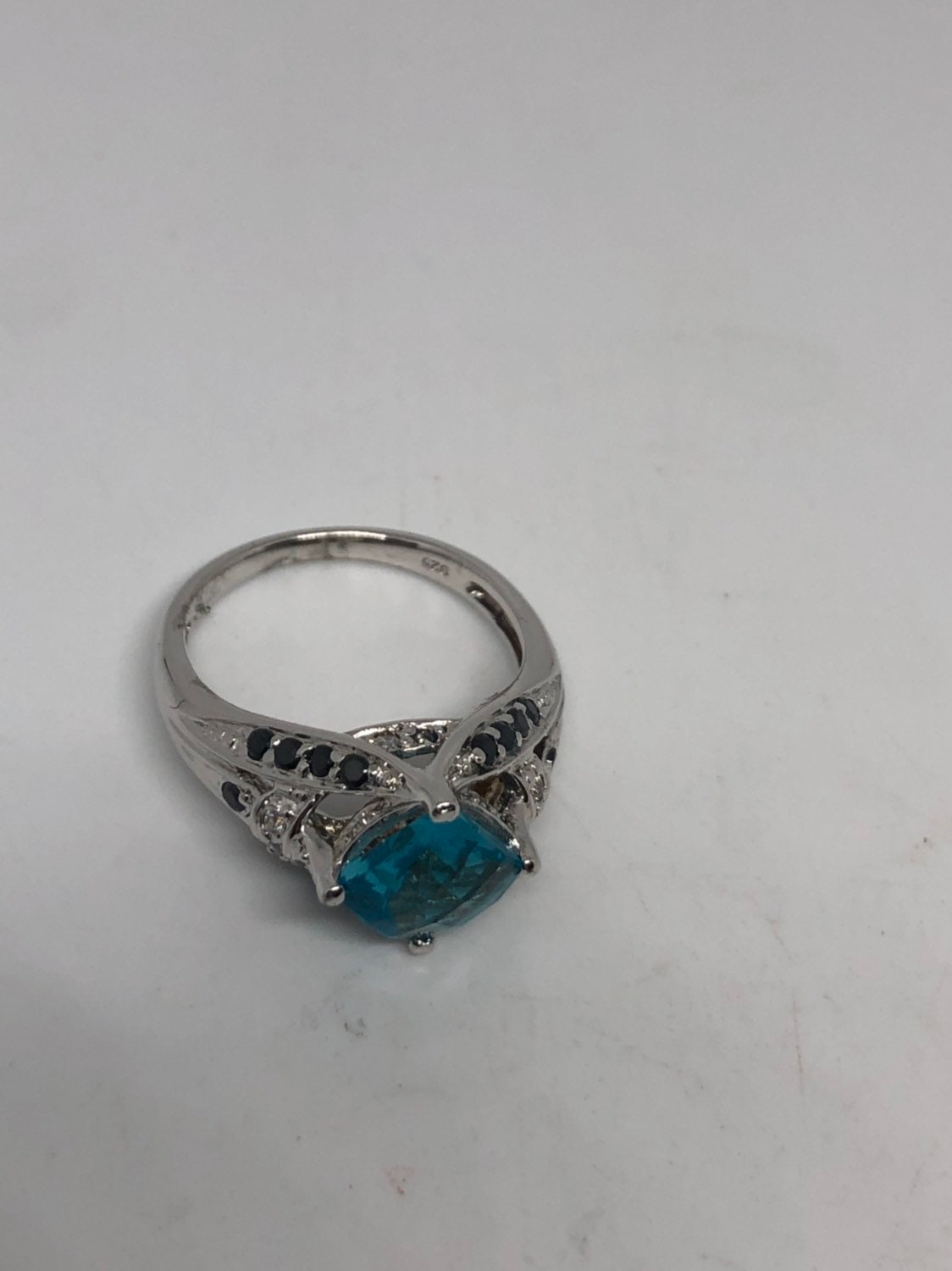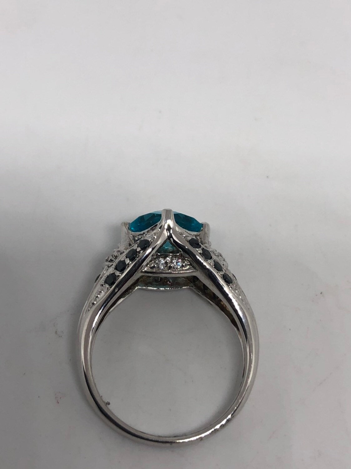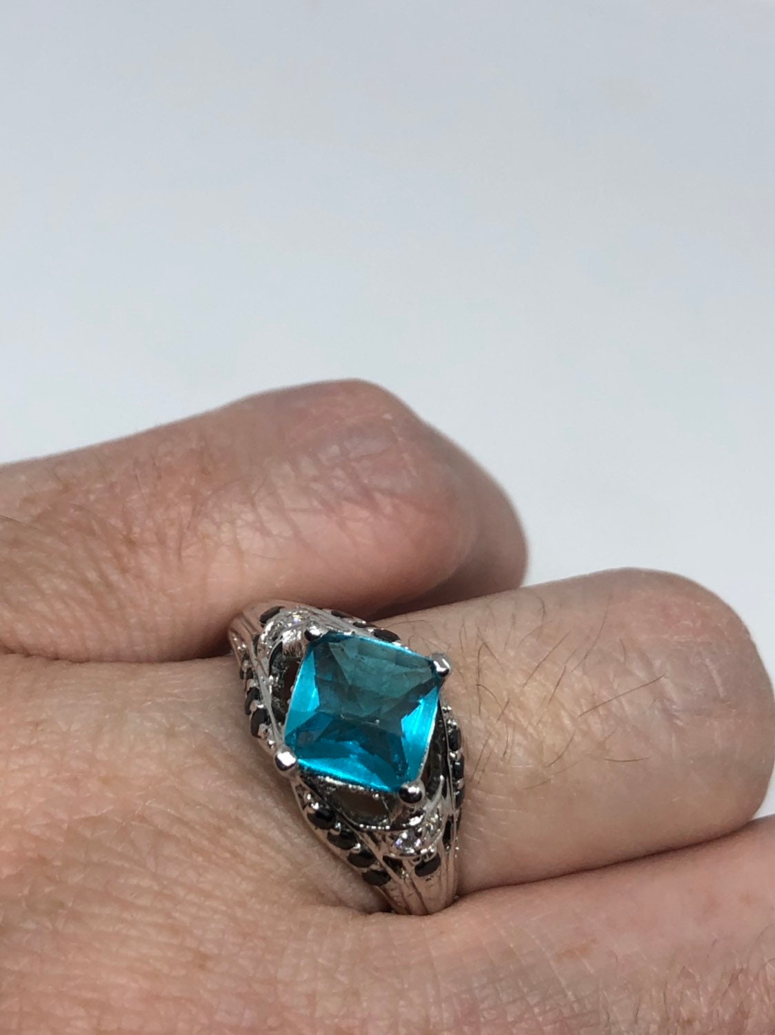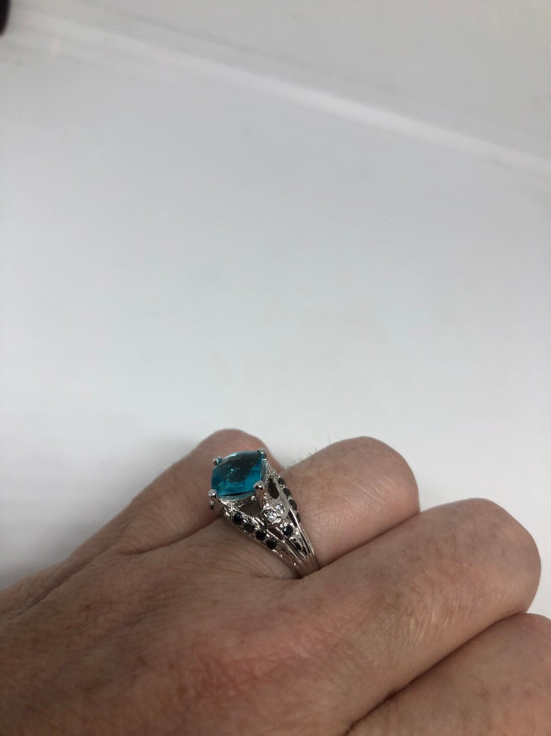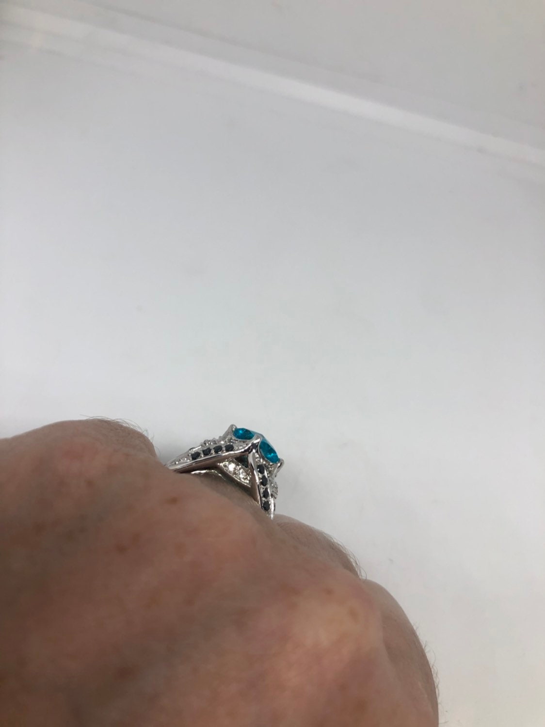 Vintage Genuine Blue Topaz 925 Sterling Silver Rhodium Ring