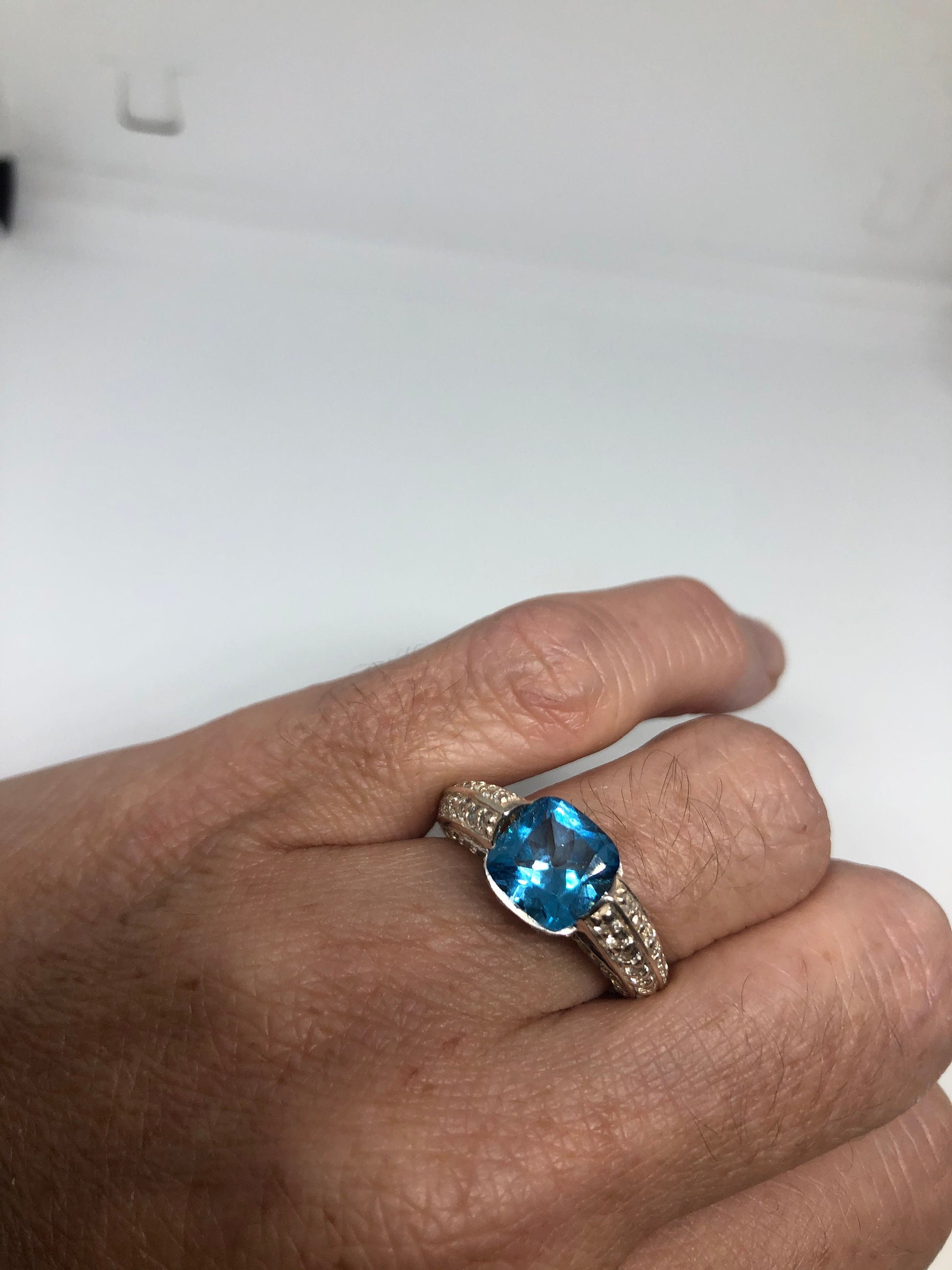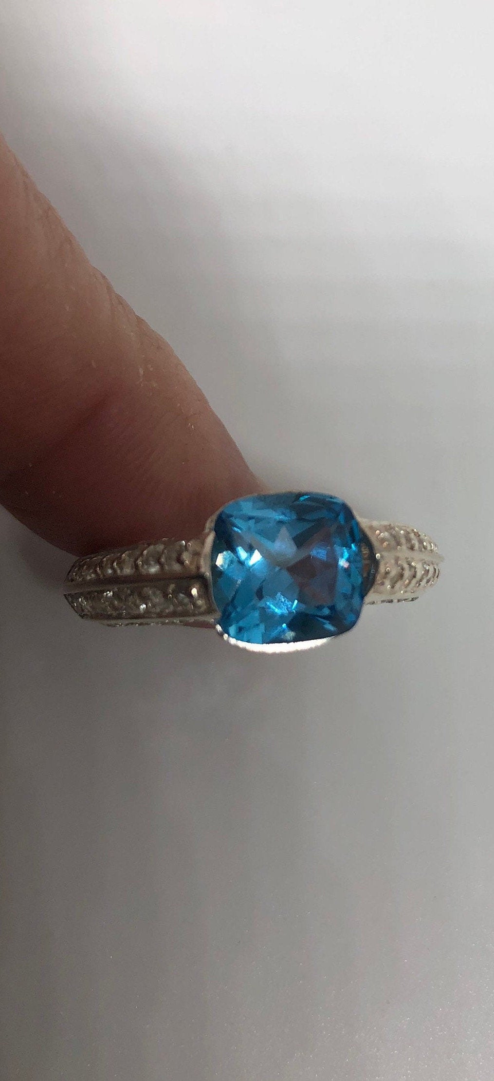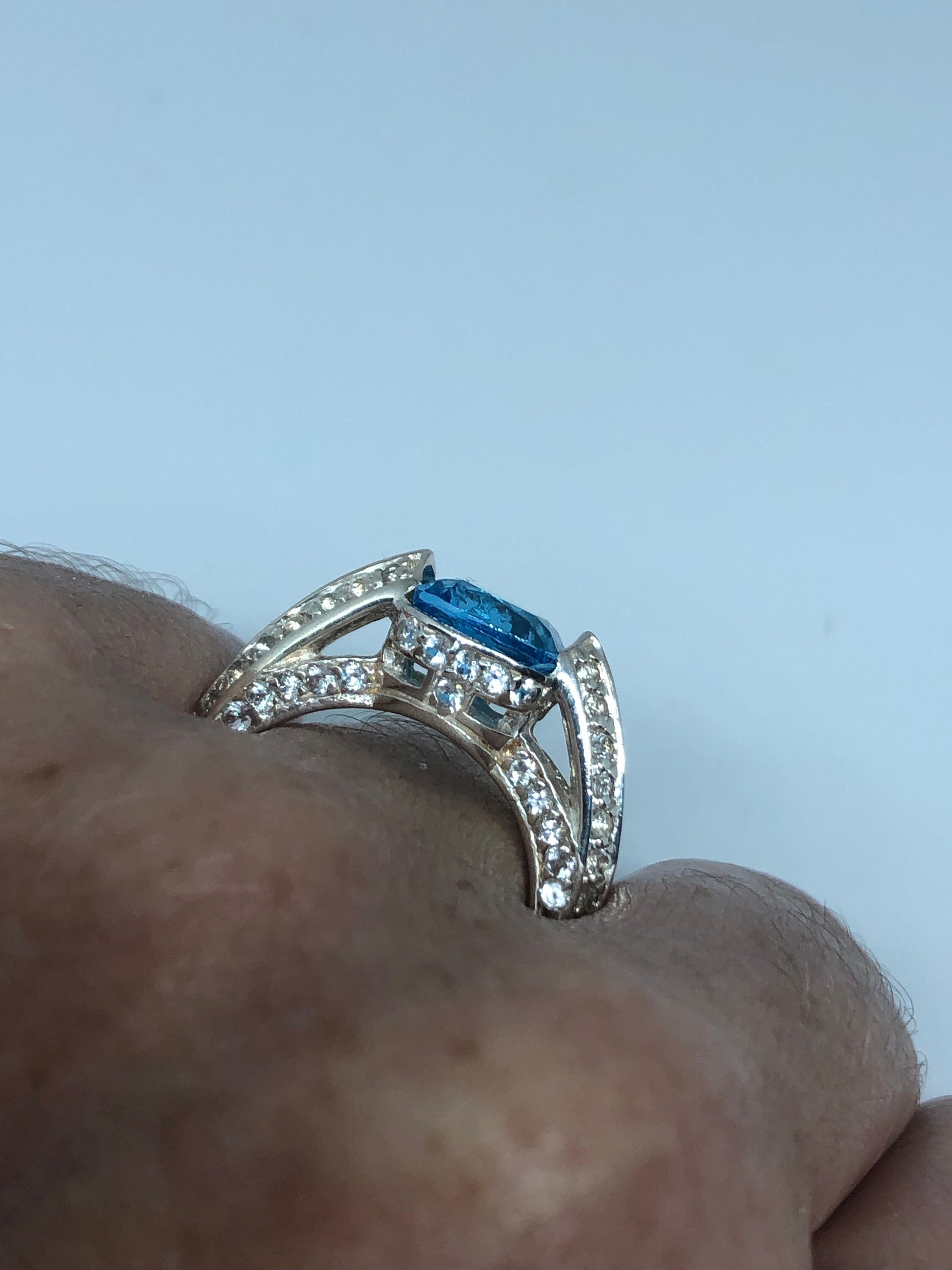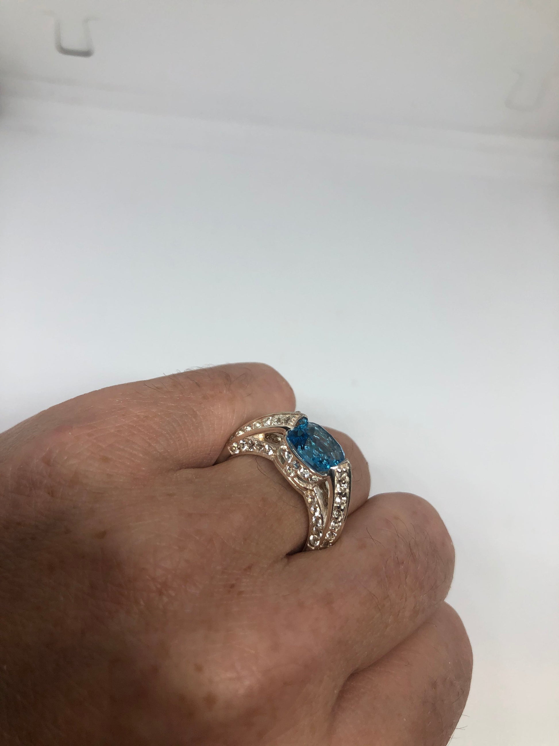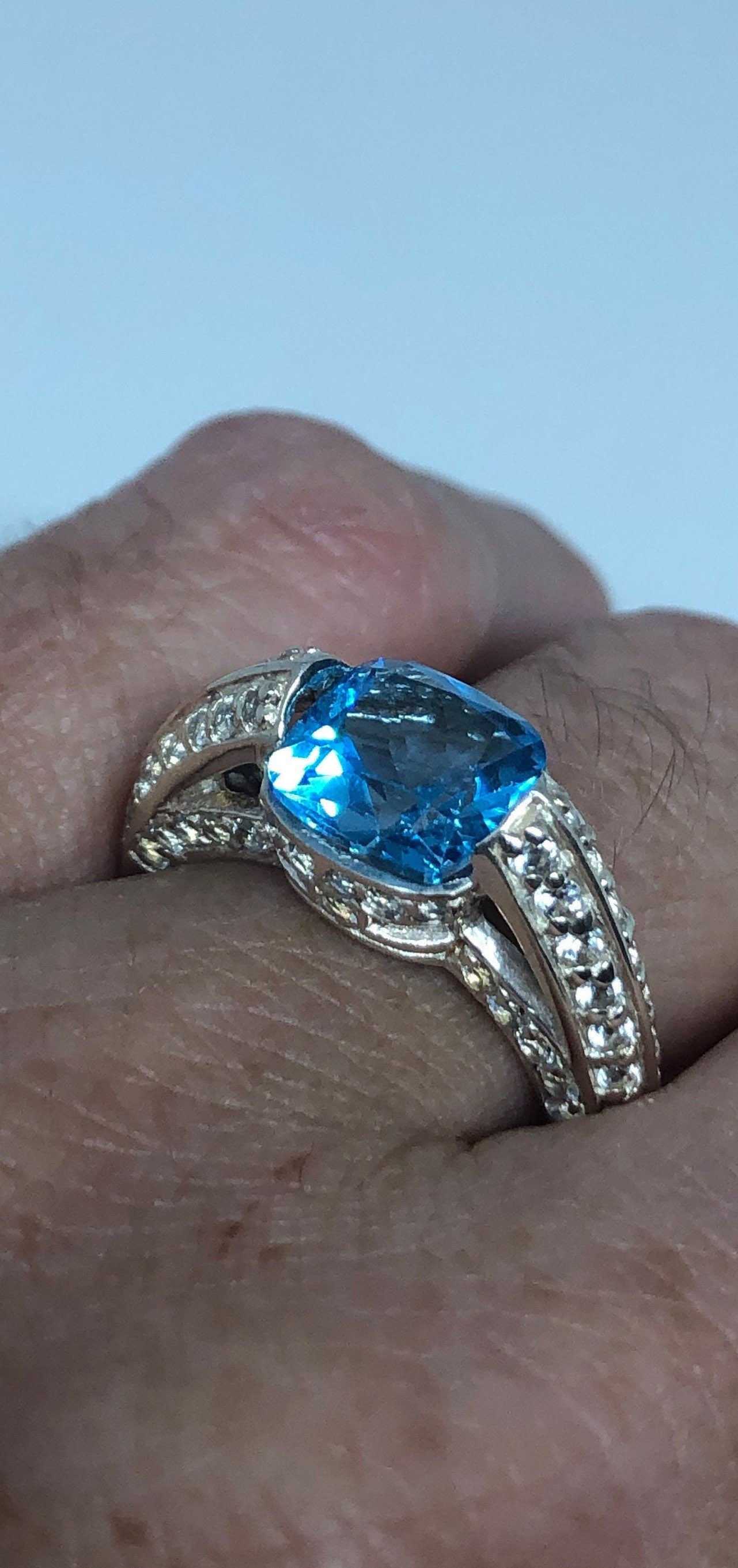 Vintage Genuine Blue Topaz 925 Sterling Silver Ring Size 7.5