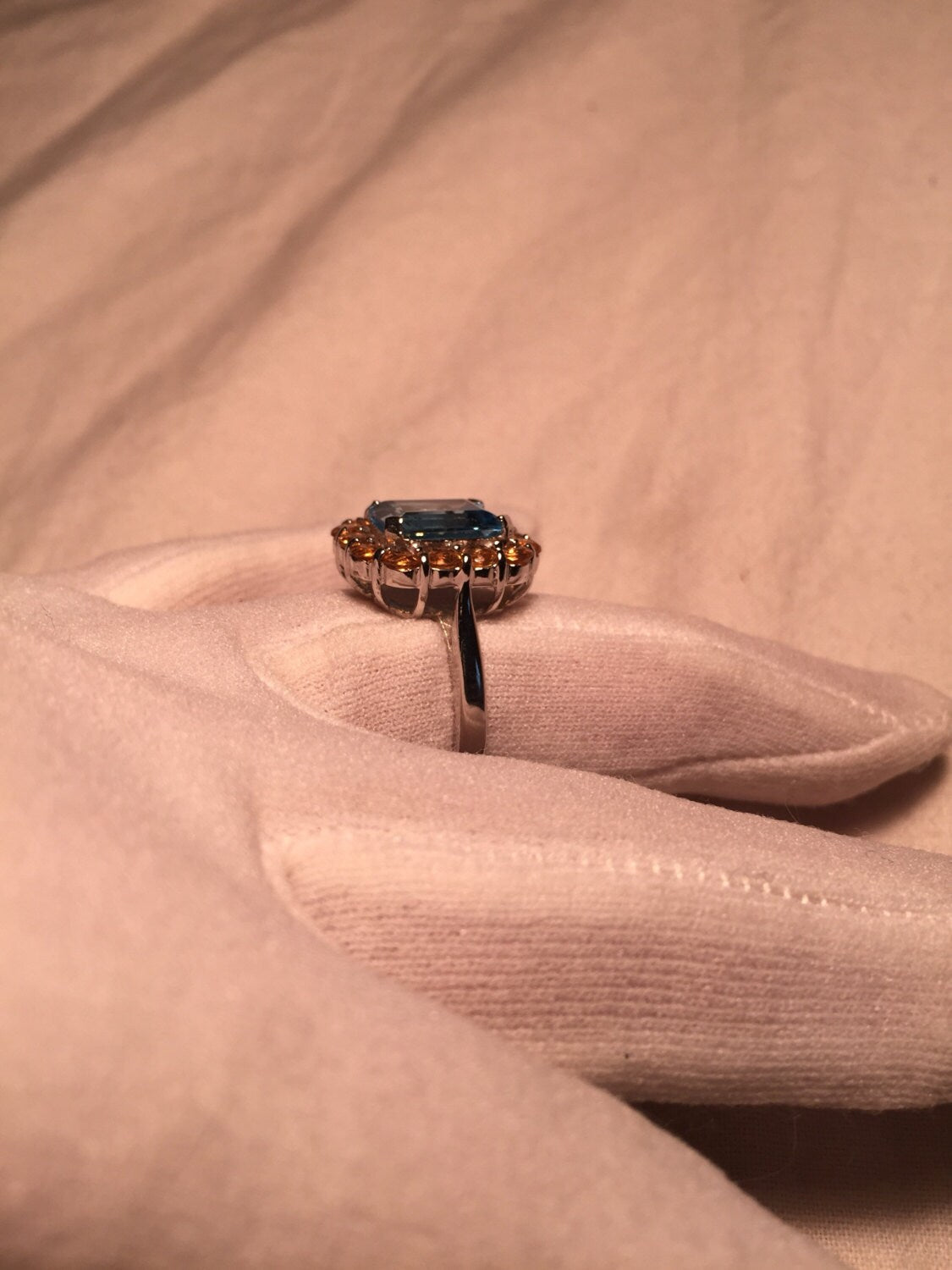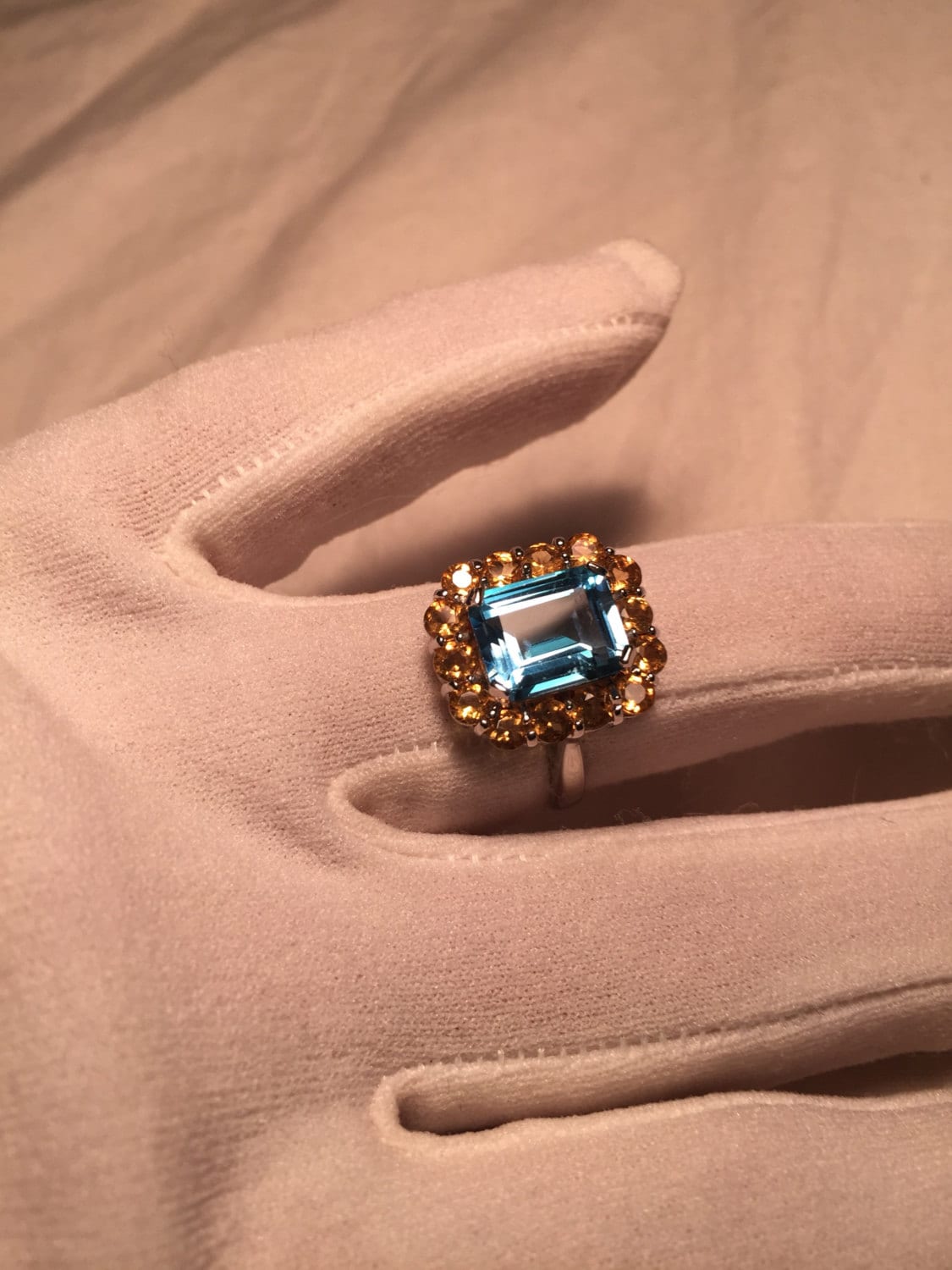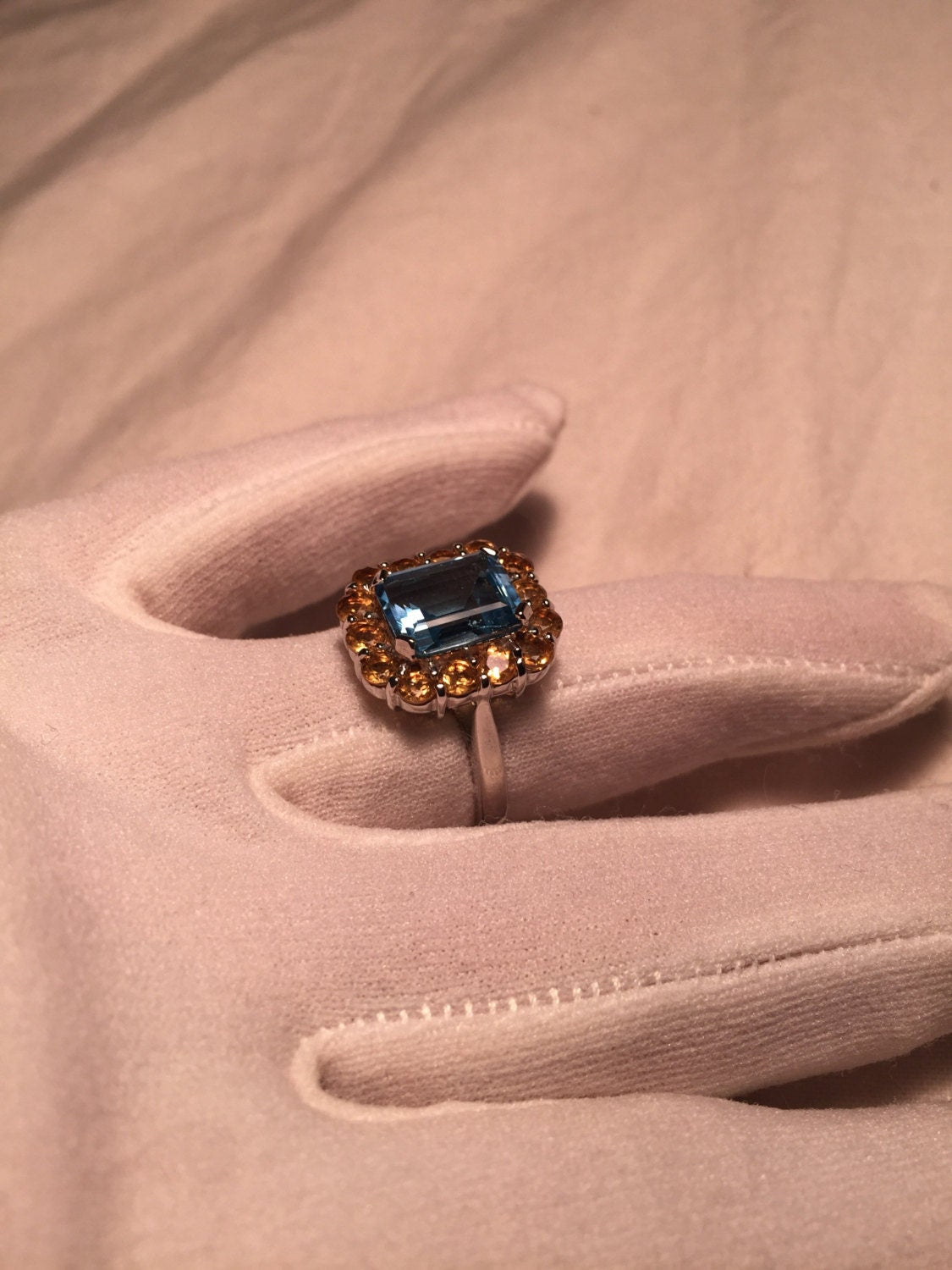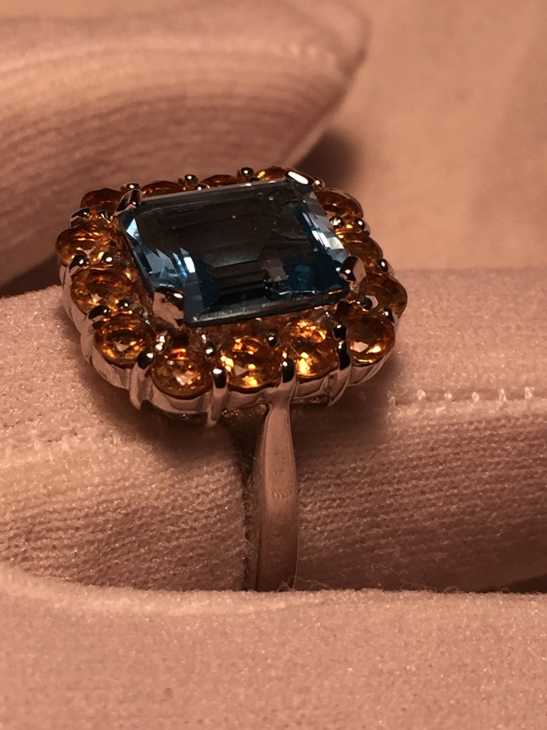 Vintage Genuine Blue Topaz Citrine 925 Sterling Silver Ring