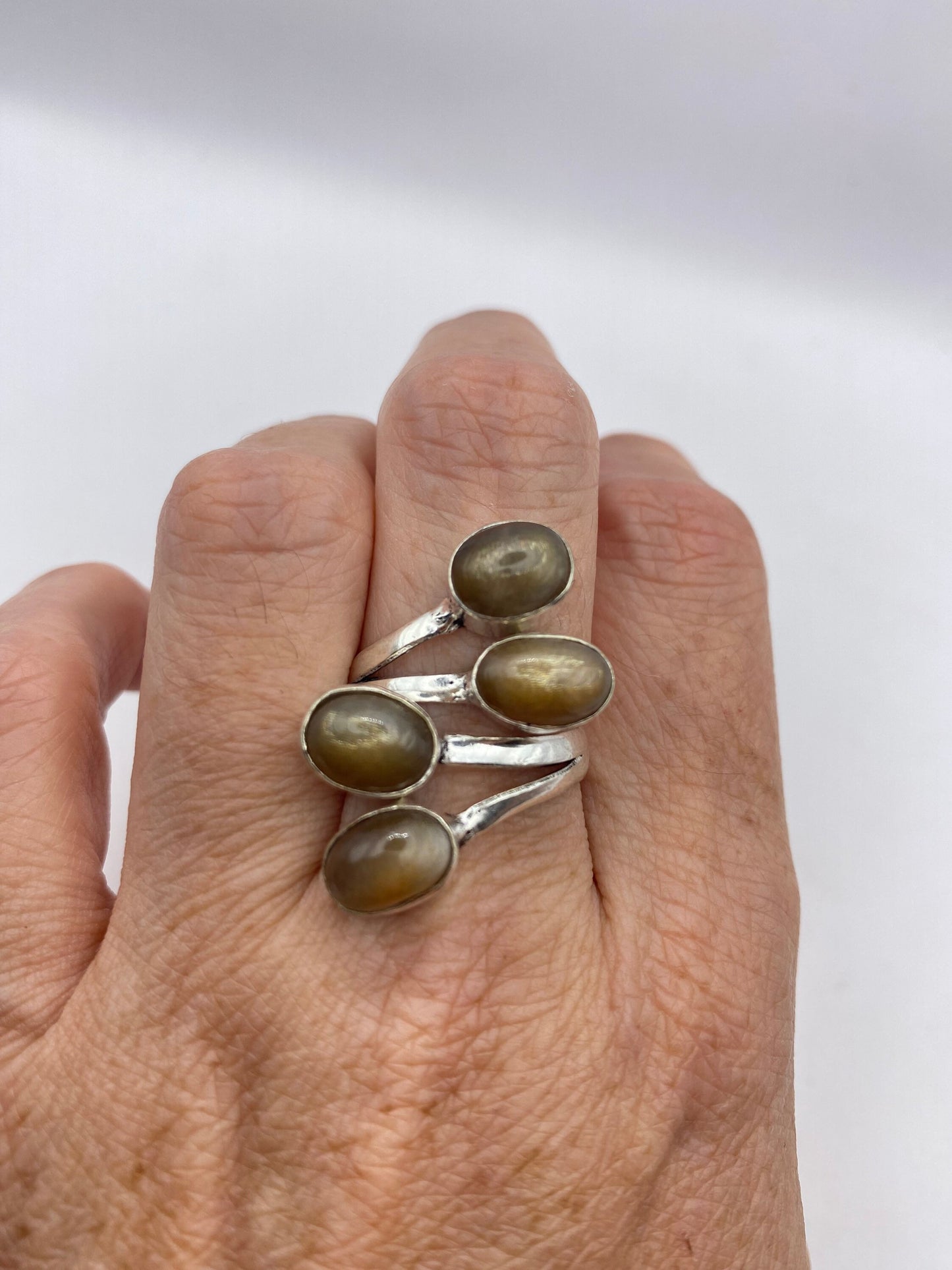 Large Vintage ring set with huge row of Moonstone.