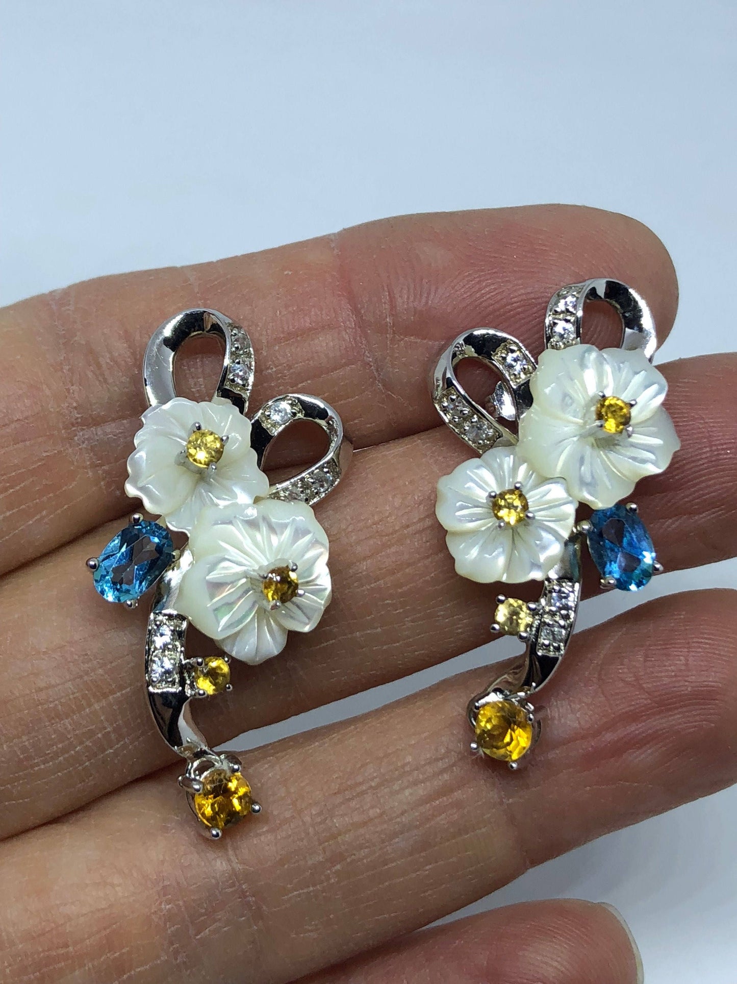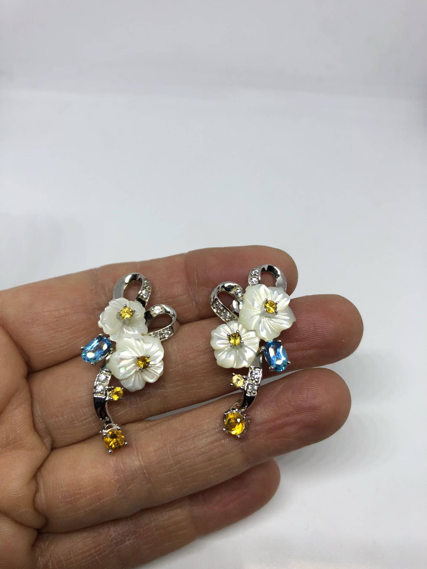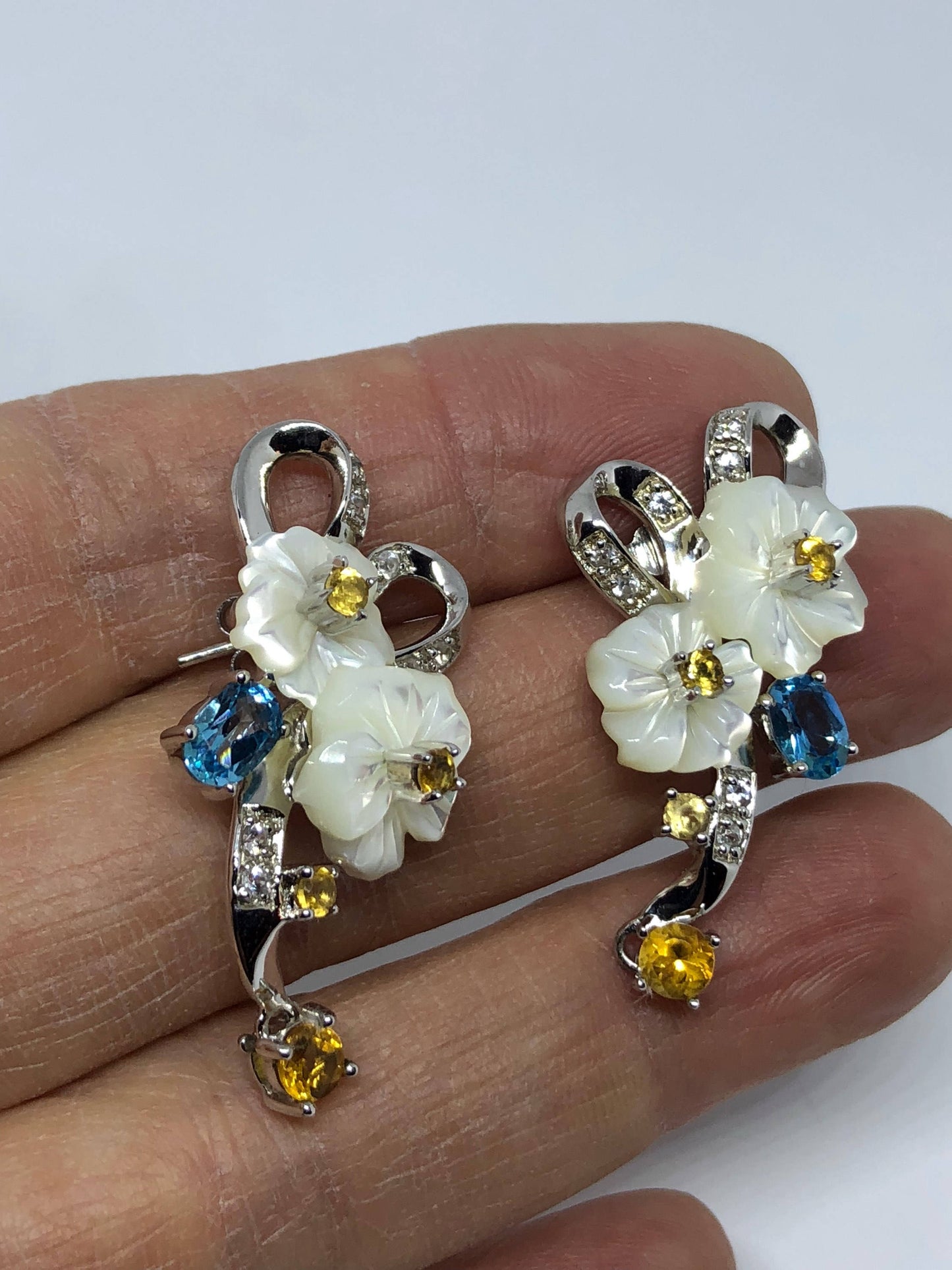 Delicate and detailed vintage Mother of Pearl and Sterling Silver earrings
