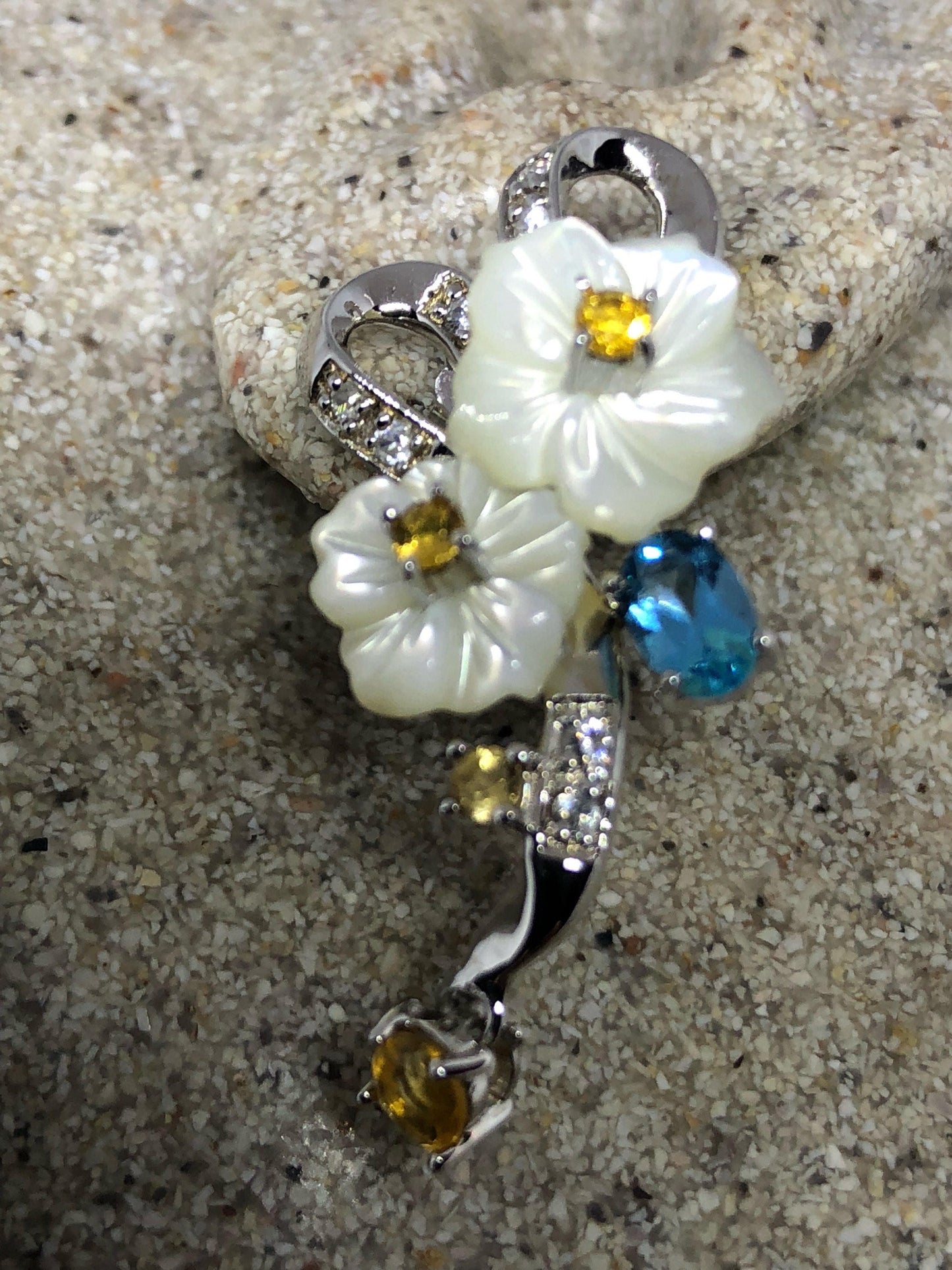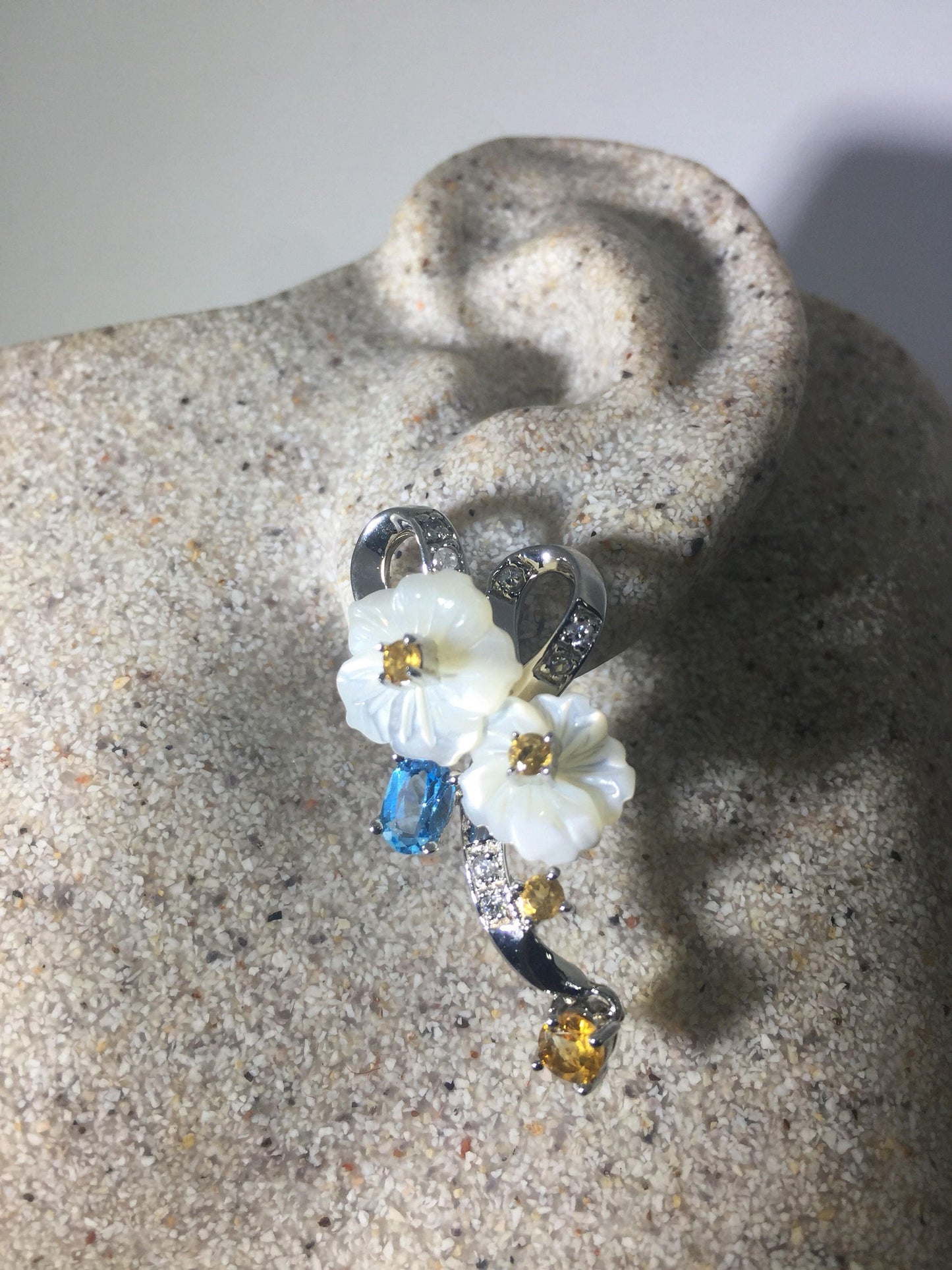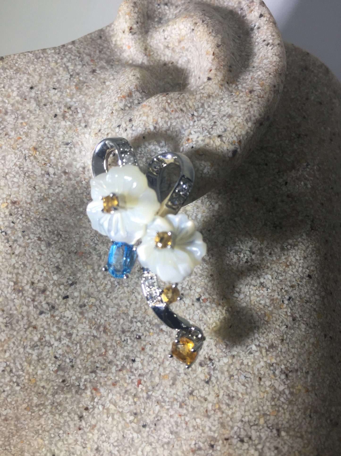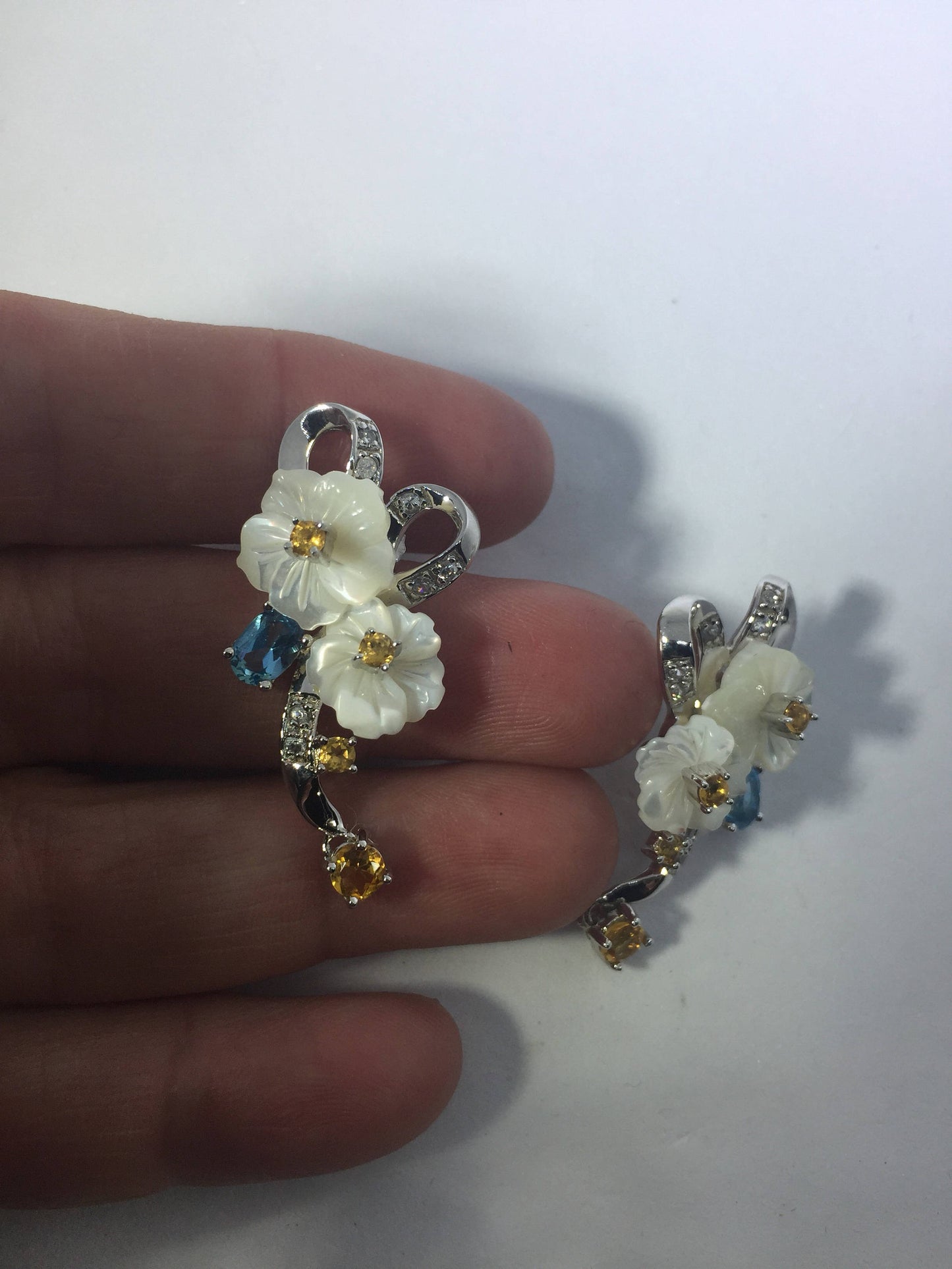 Delicate and detailed vintage Mother of Pearl and Sterling Silver earrings