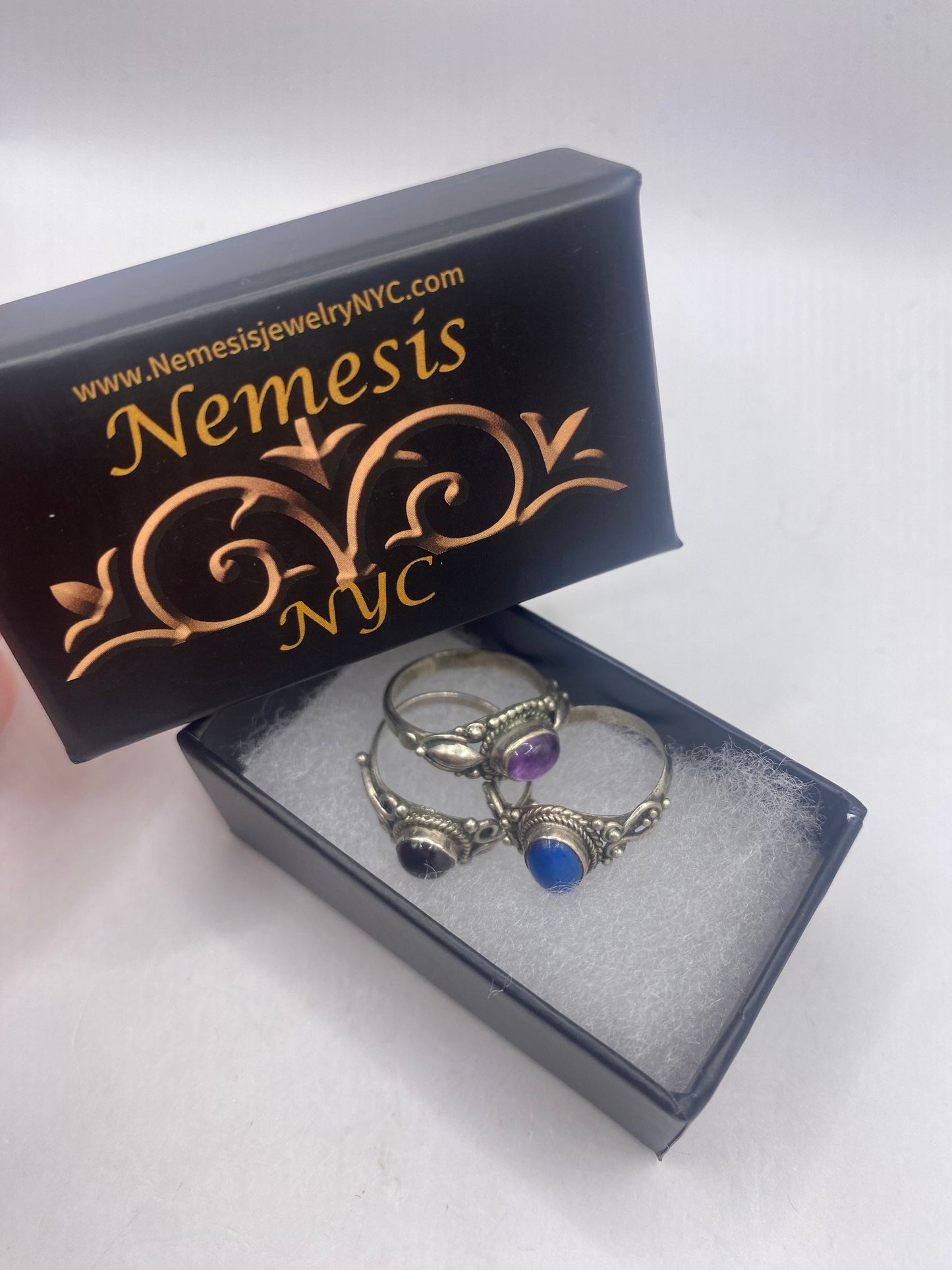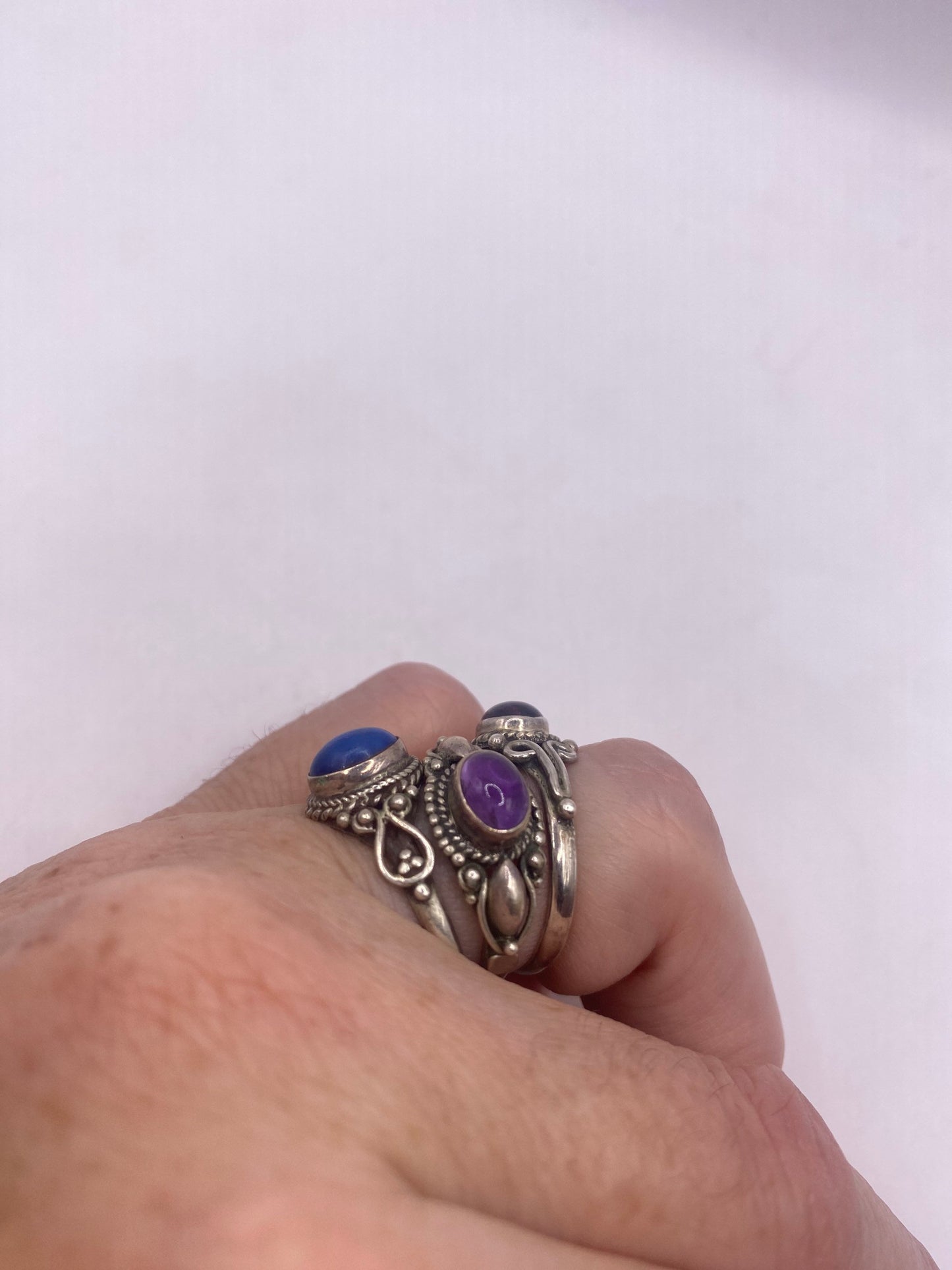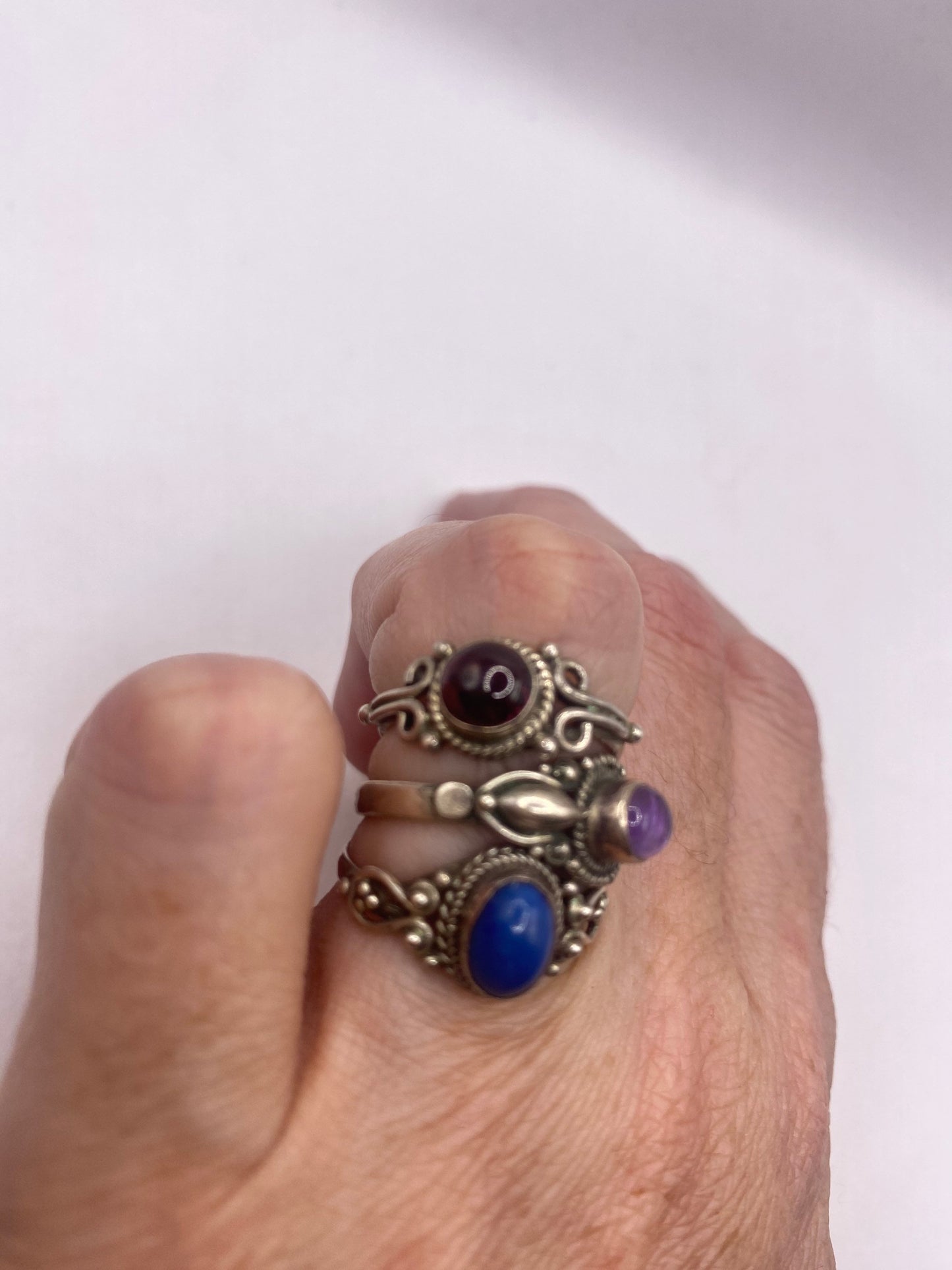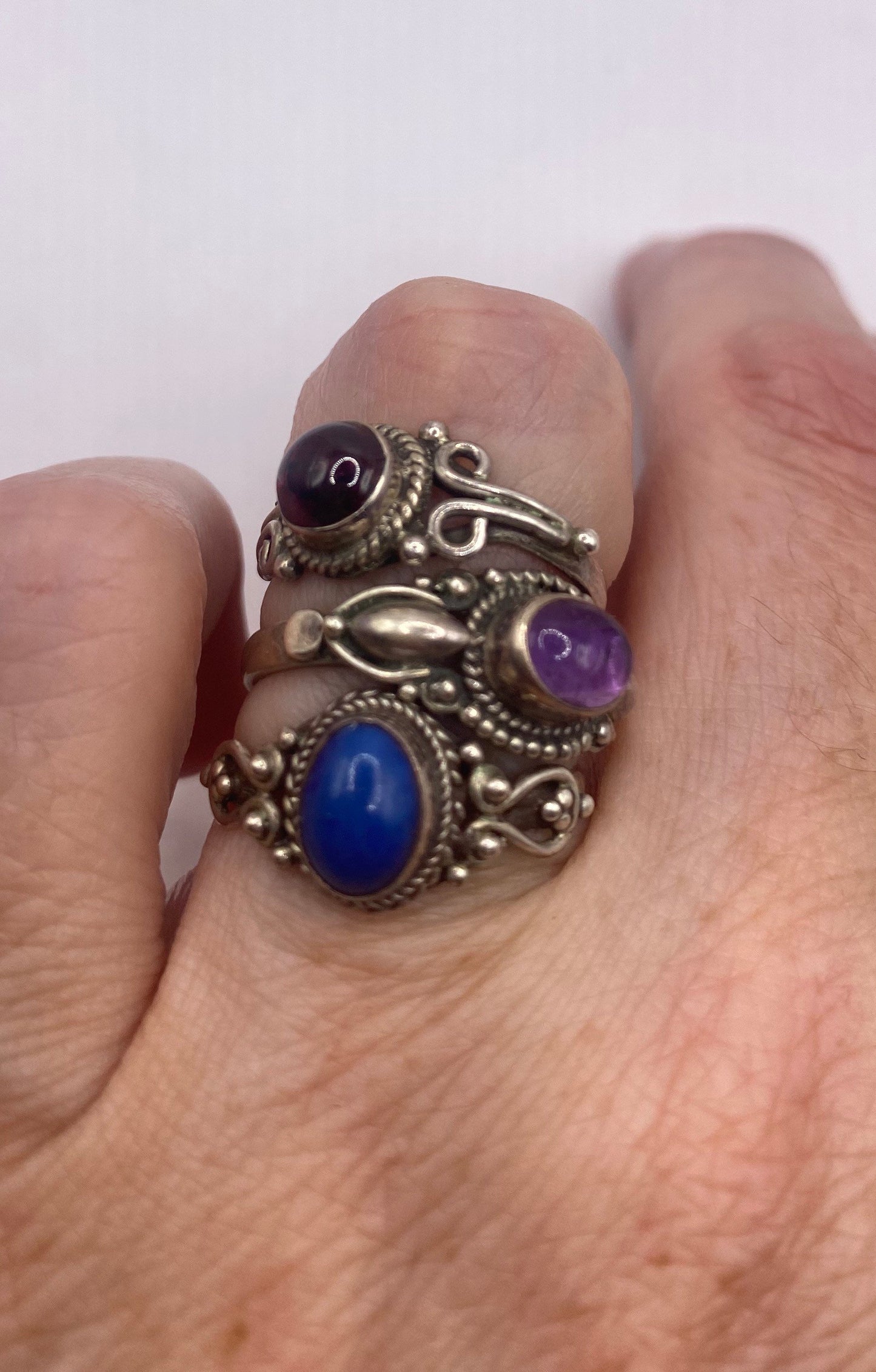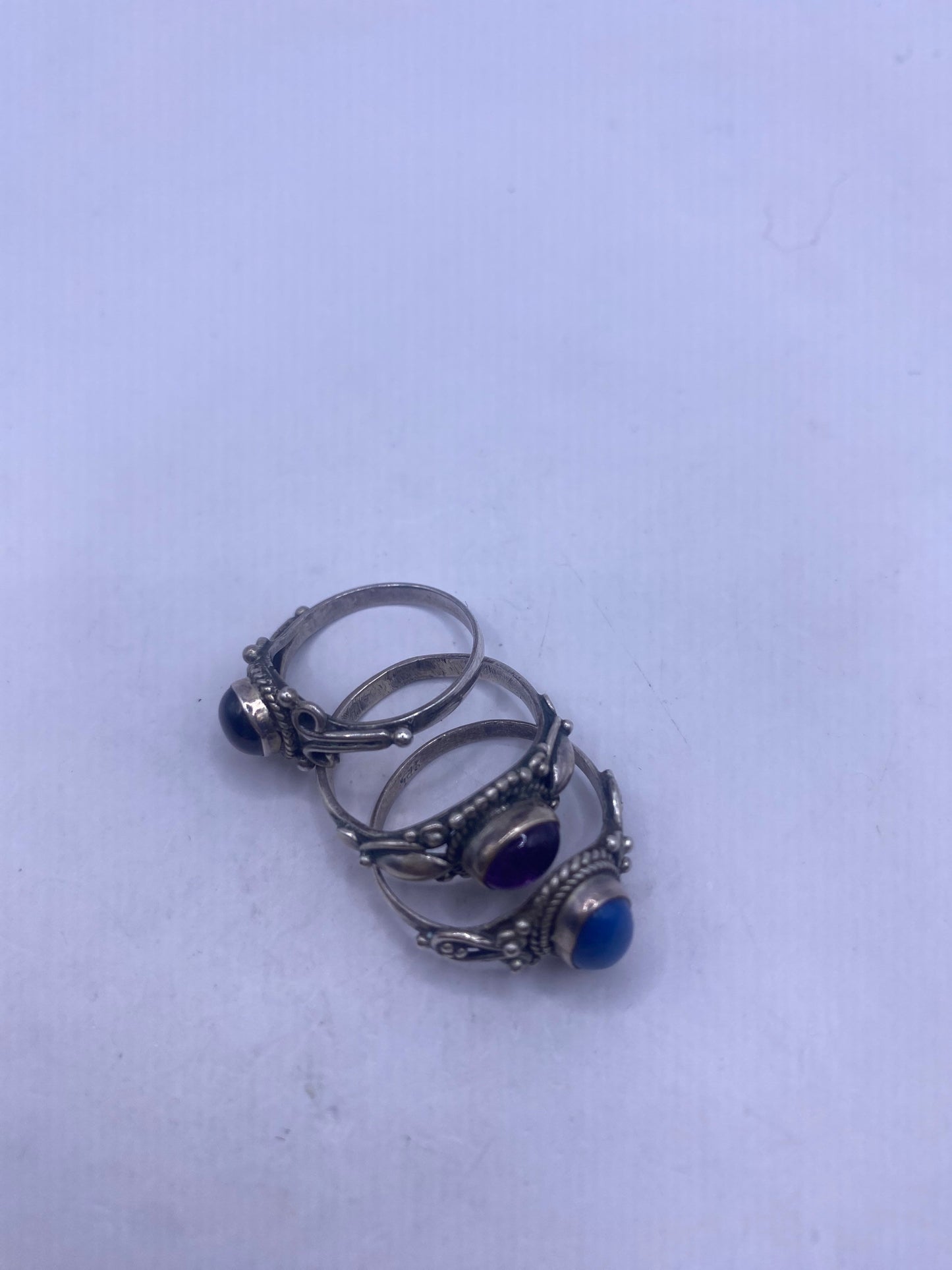 Vintage Genuine Gemstones 3 Stacking Rings Silver Cocktail