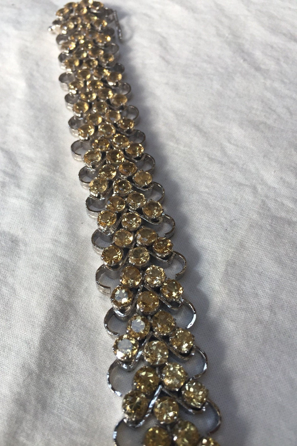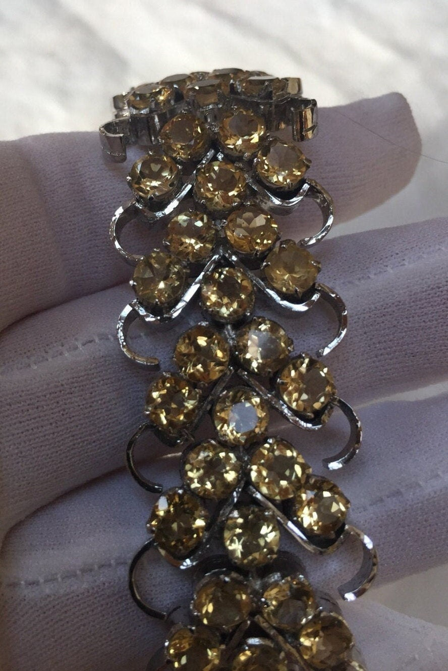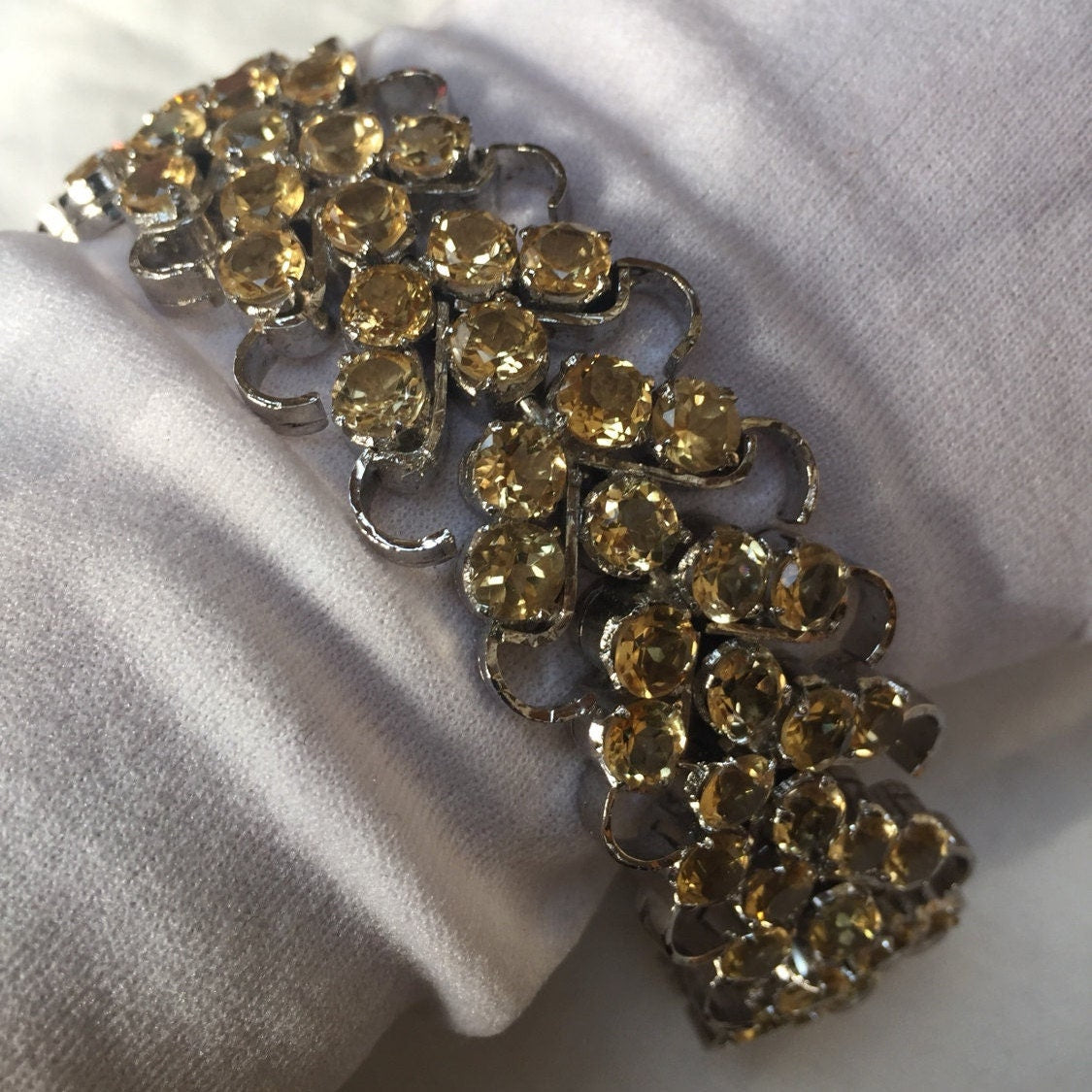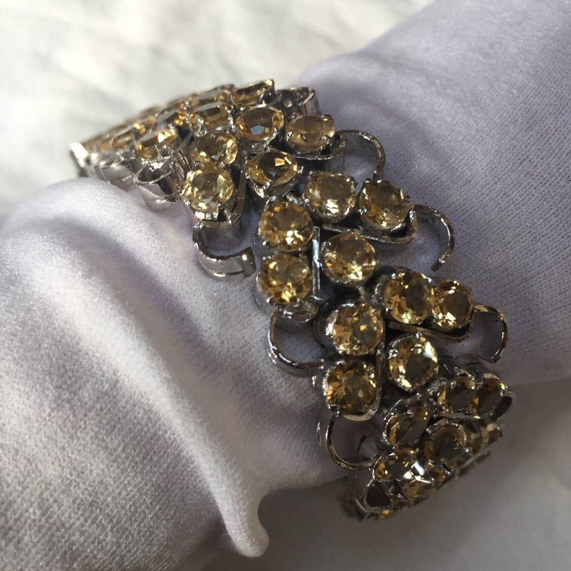 Vintage Gold Citrine Statement Bracelet Deco 925 Sterling Silver Chunky Tennis