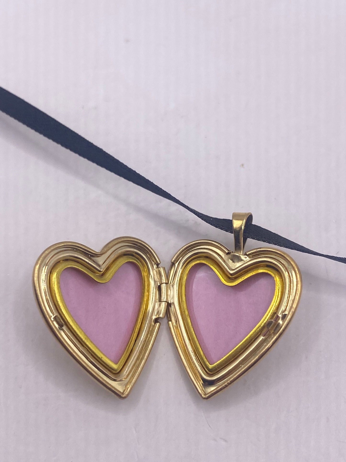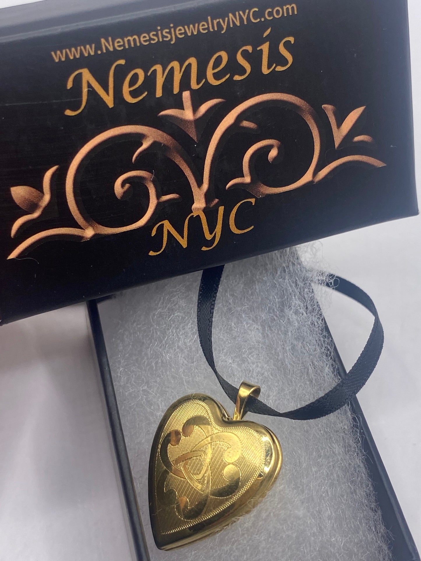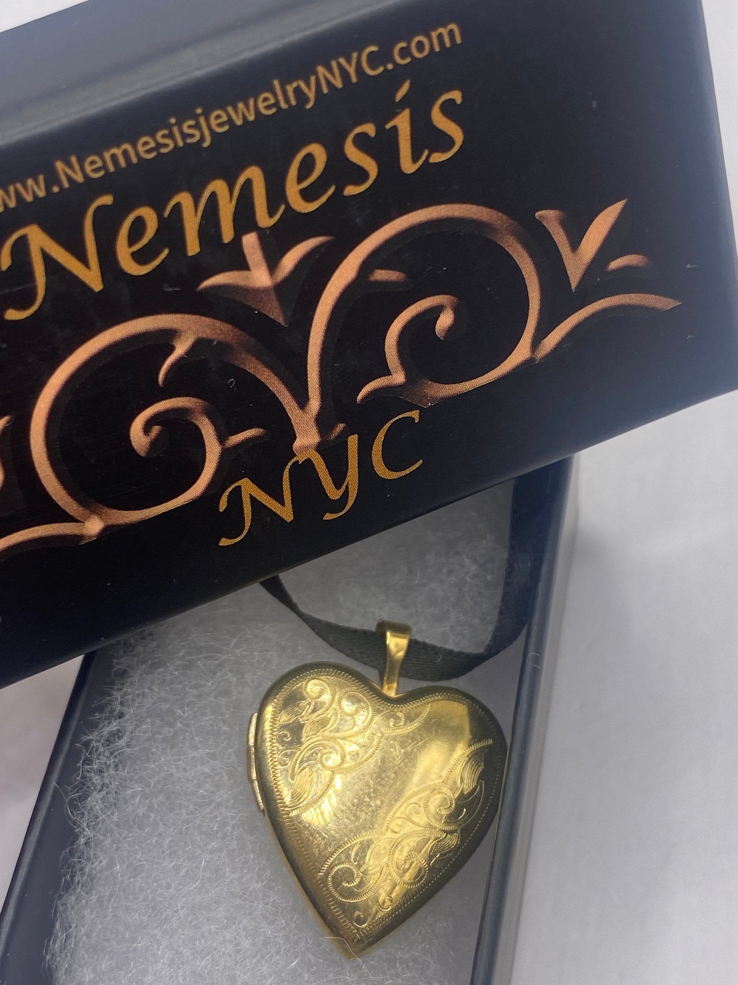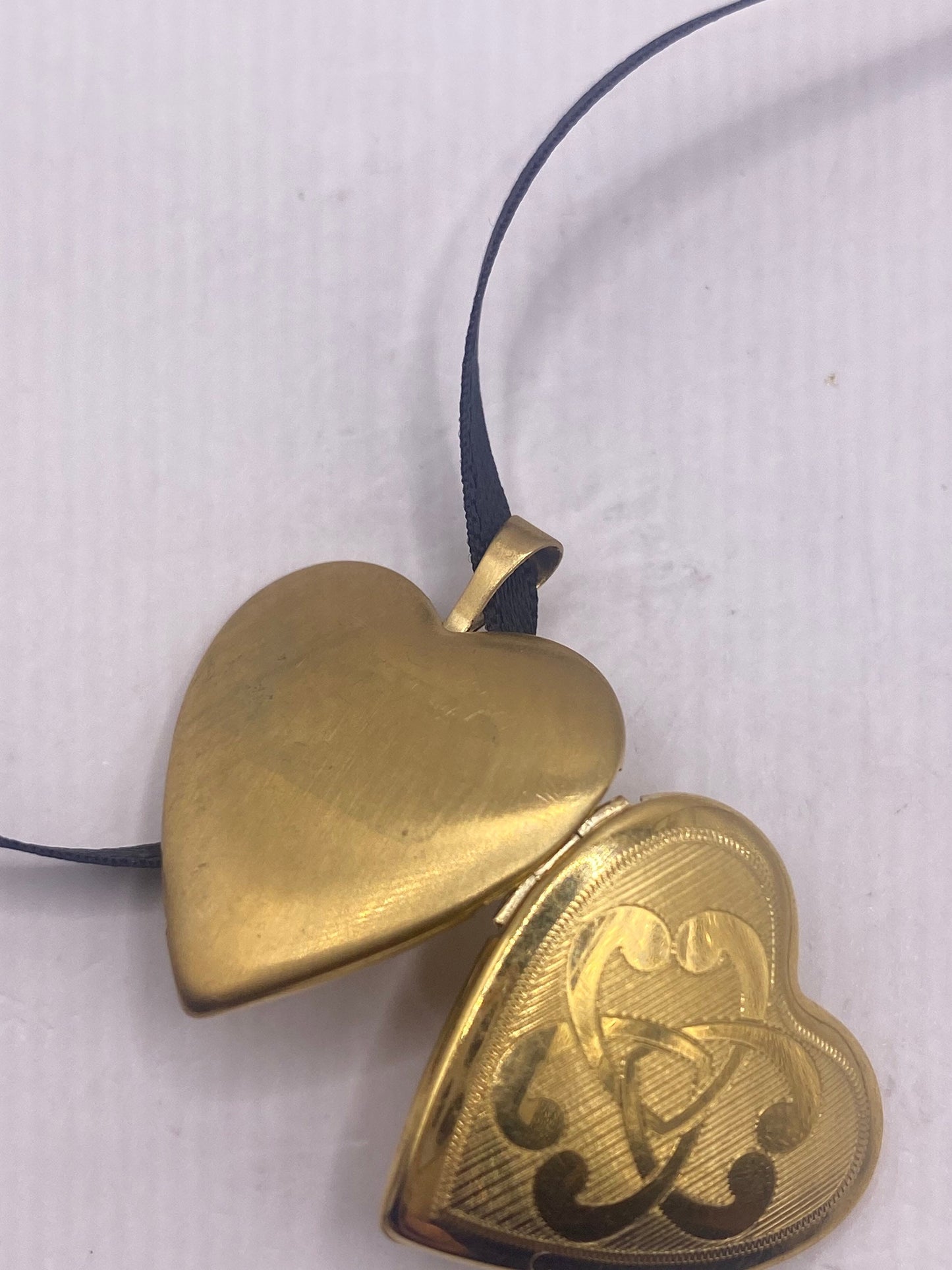 Vintage Gold Locket | Tiny Heart 9k Gold Filled Pendant Photo Memory Charm Engraved Etched Design | Choker Necklace