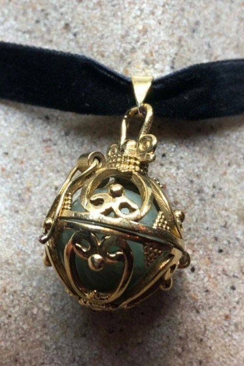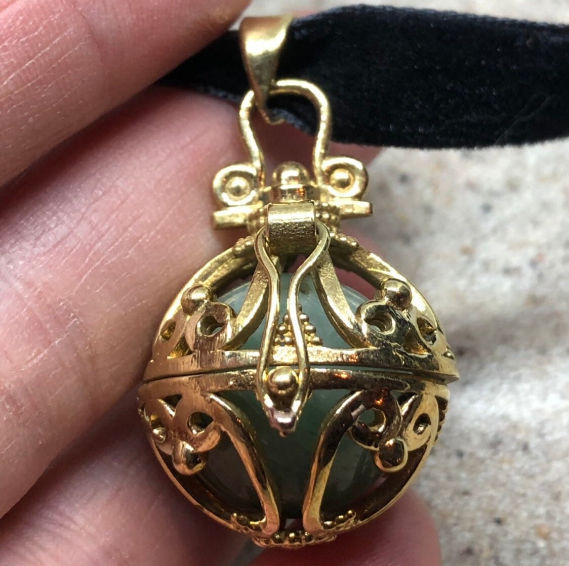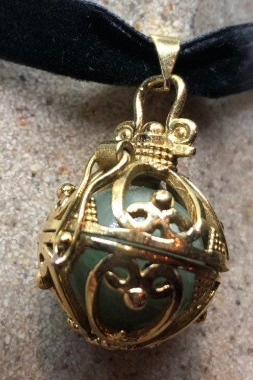 Vintage Golden Bronze Healing Stone Cage Locket