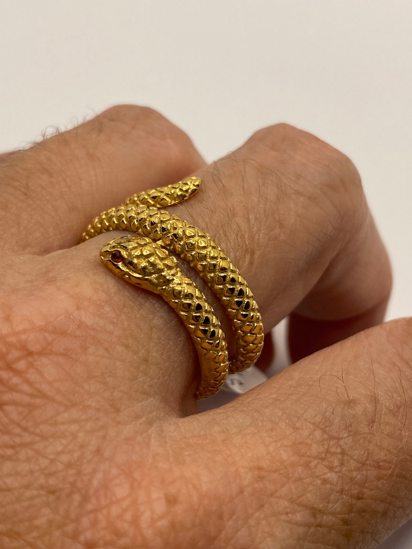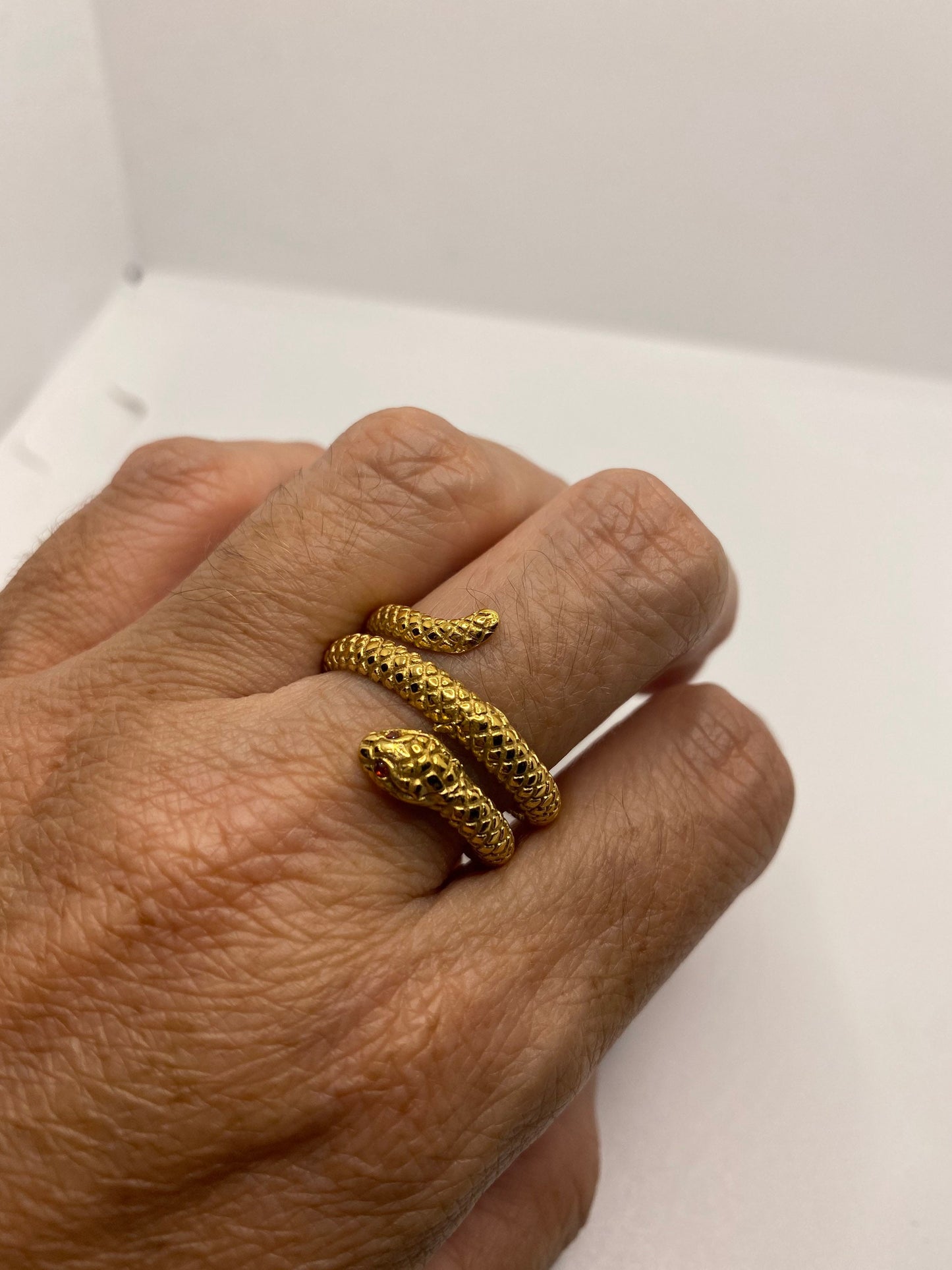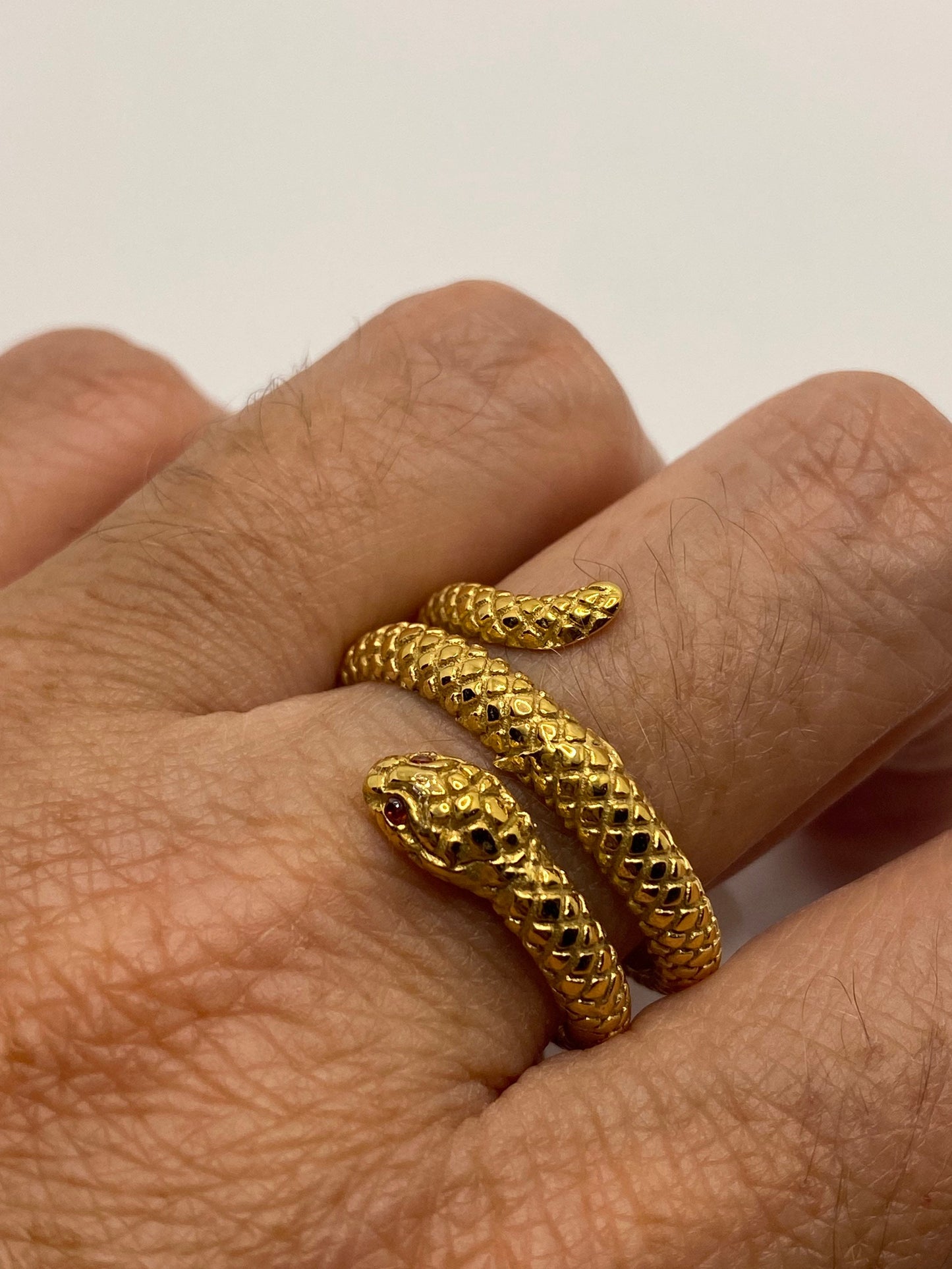 Vintage Gothic 18k Gold Finish Stainless Steel Snake Ring