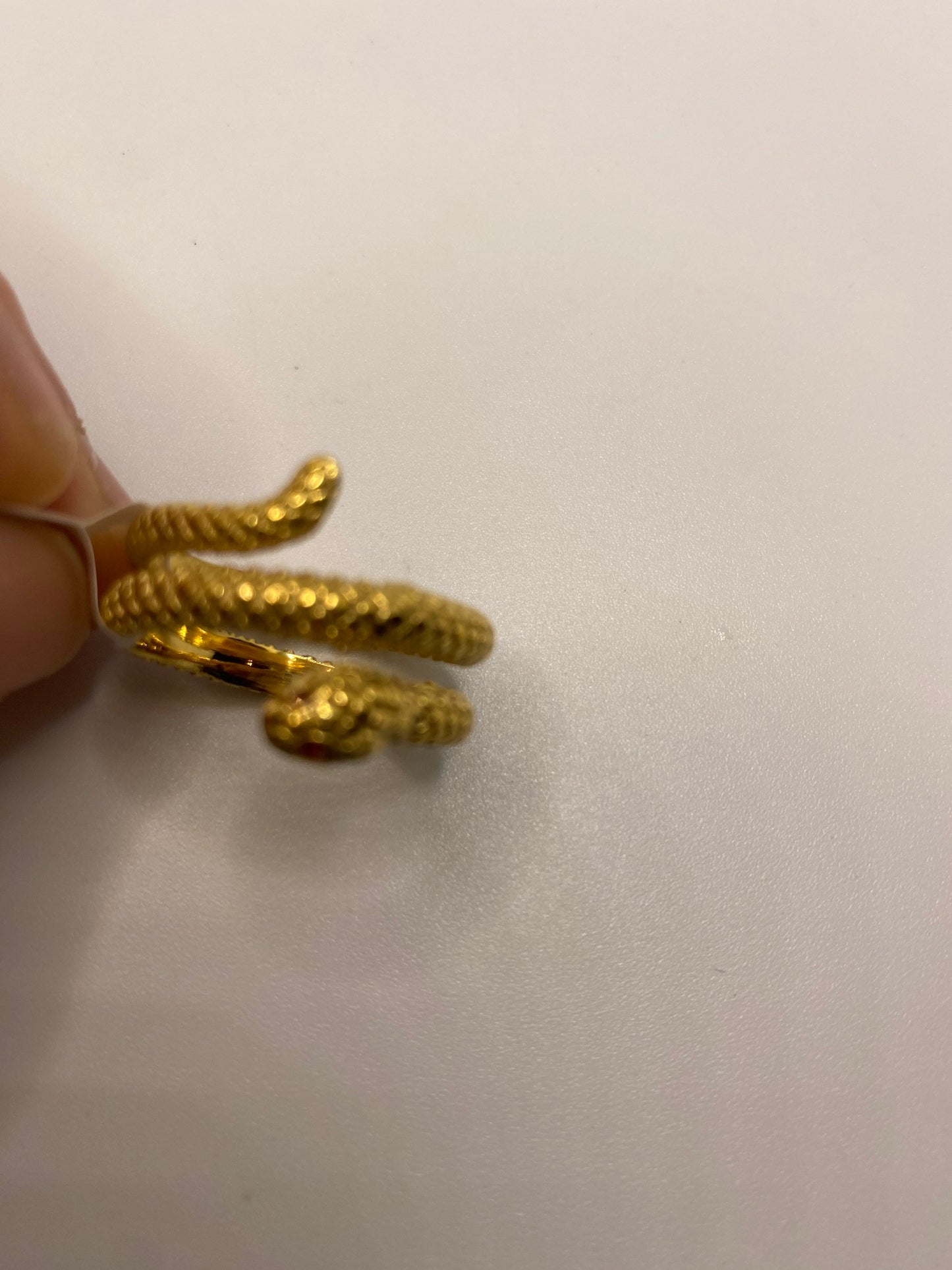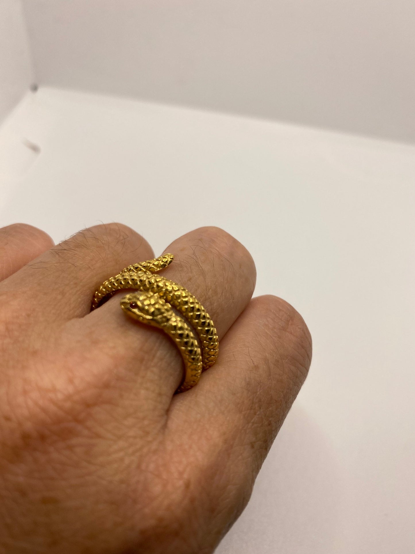 Vintage styled snake ring in stainless steel, finished in durable 18k gold, does not tarnish