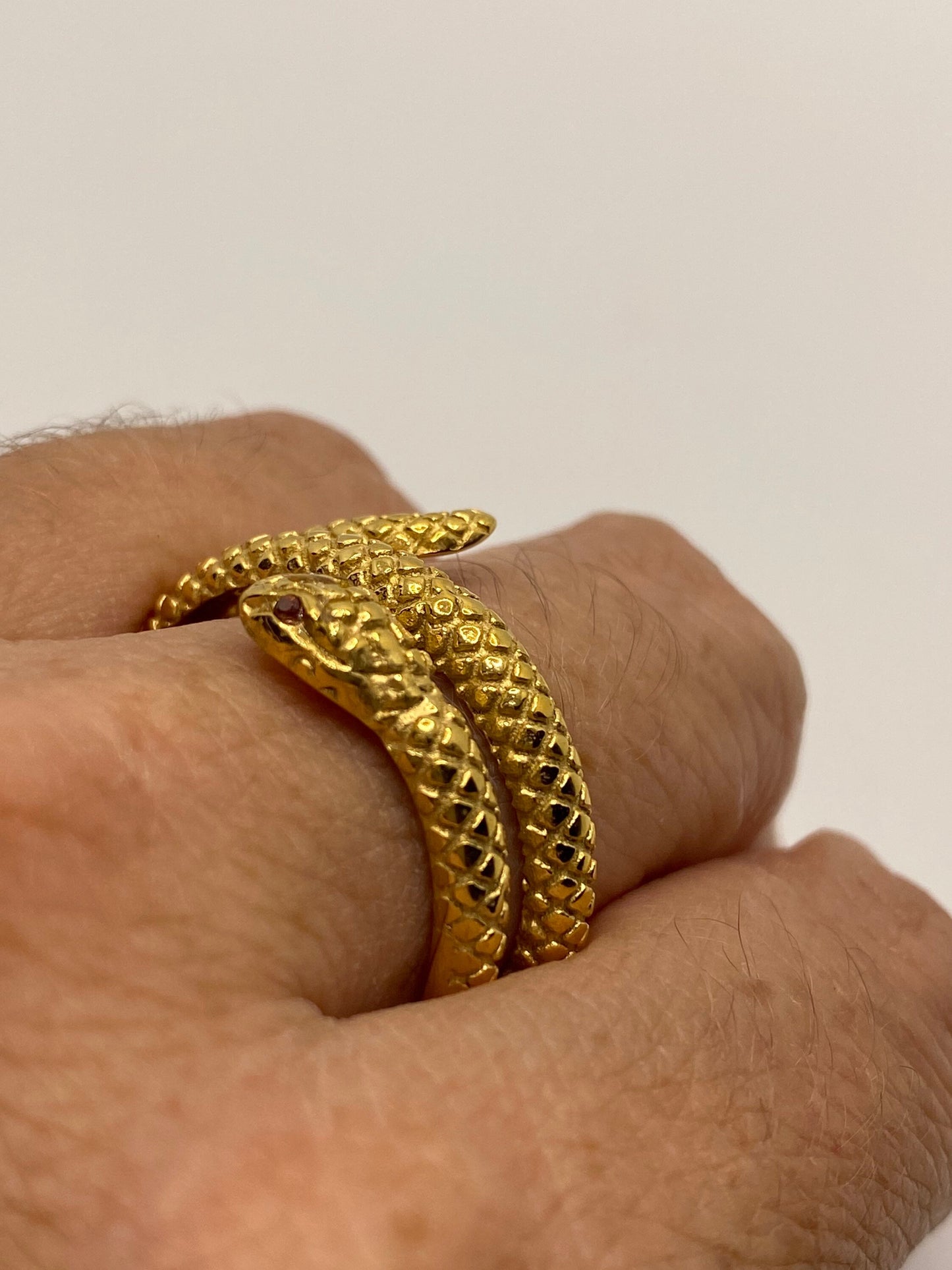 This serpent ring can be fit to sizes 7-13, please let us know which you need so we can adjust it for you