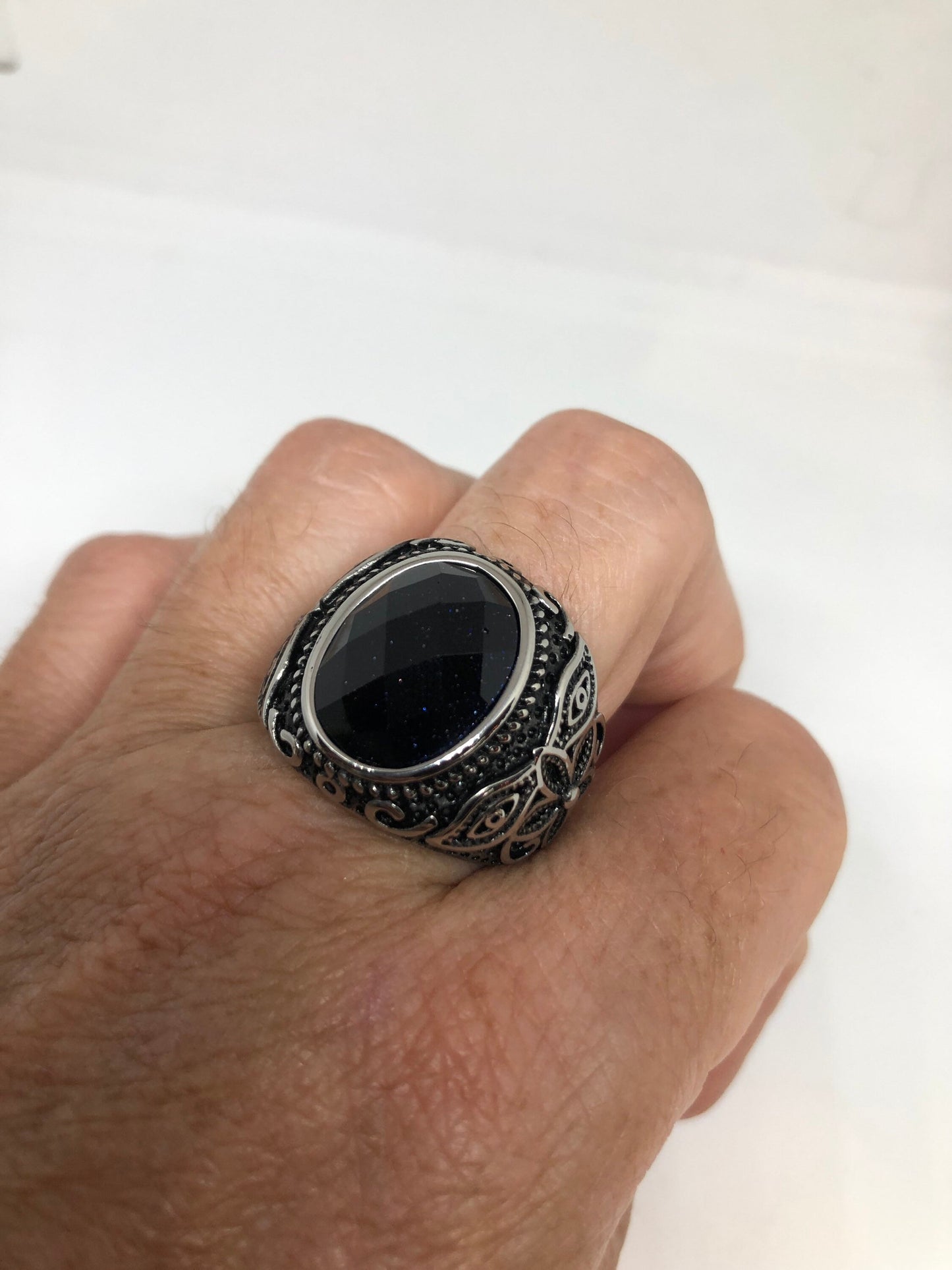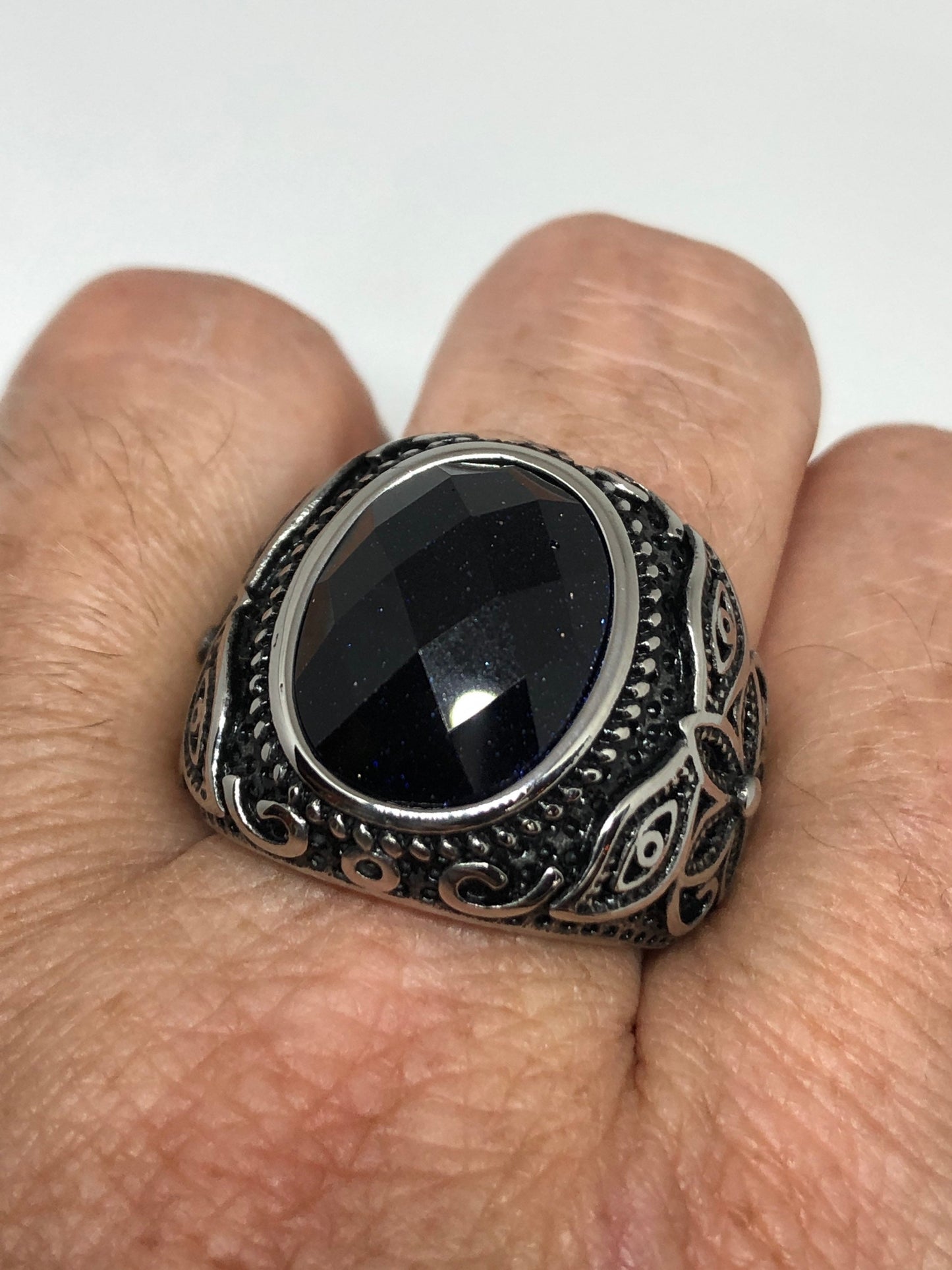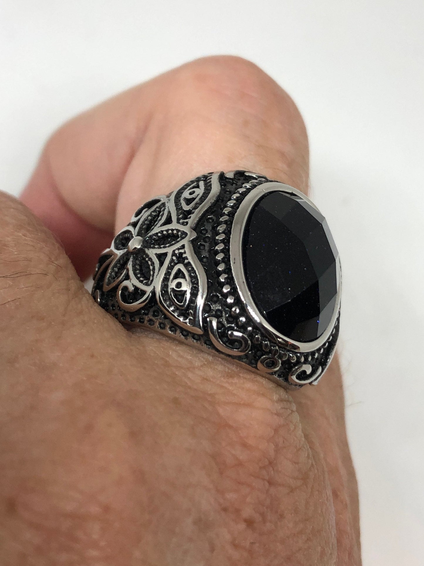 Vintage Gothic Black Goldstone Egyptian stainless steel Mens Ring