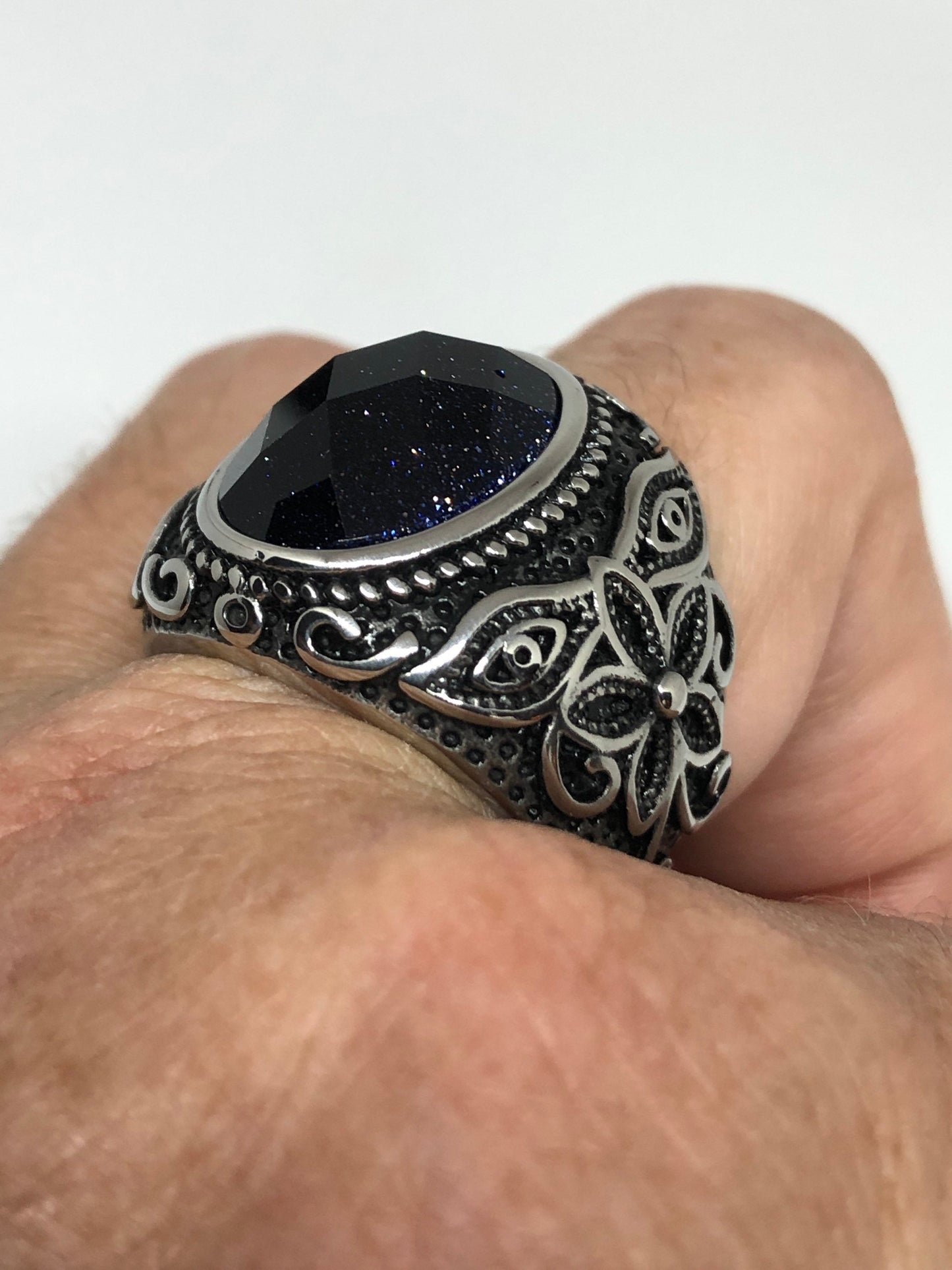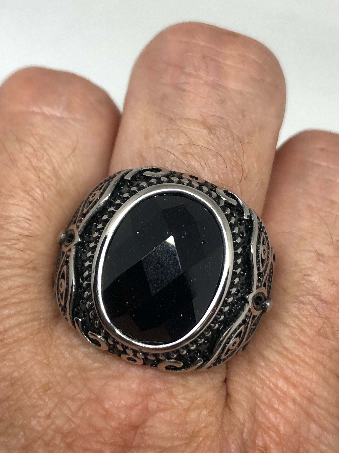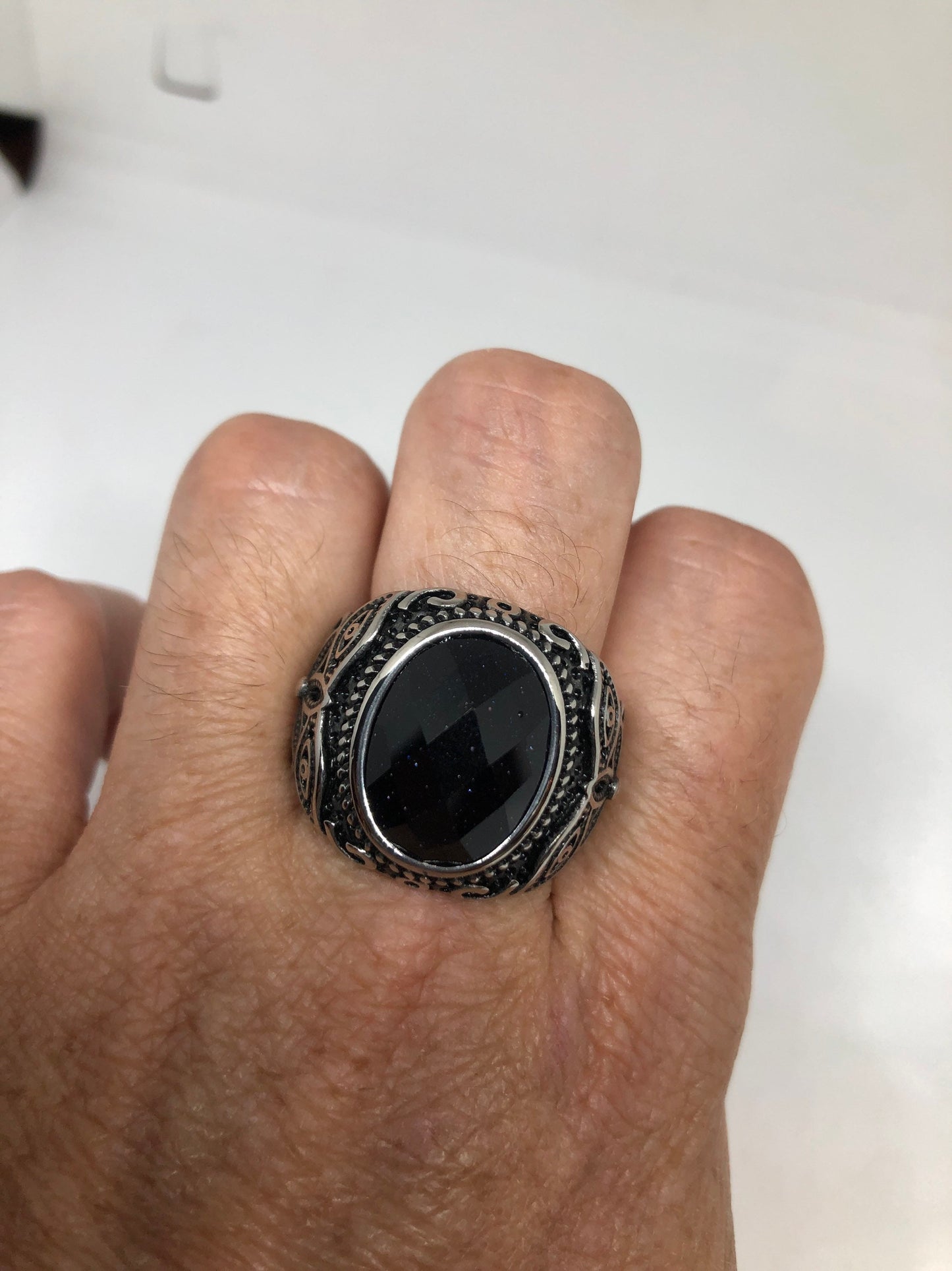 Vintage Gothic Black Goldstone Egyptian stainless steel Mens Ring