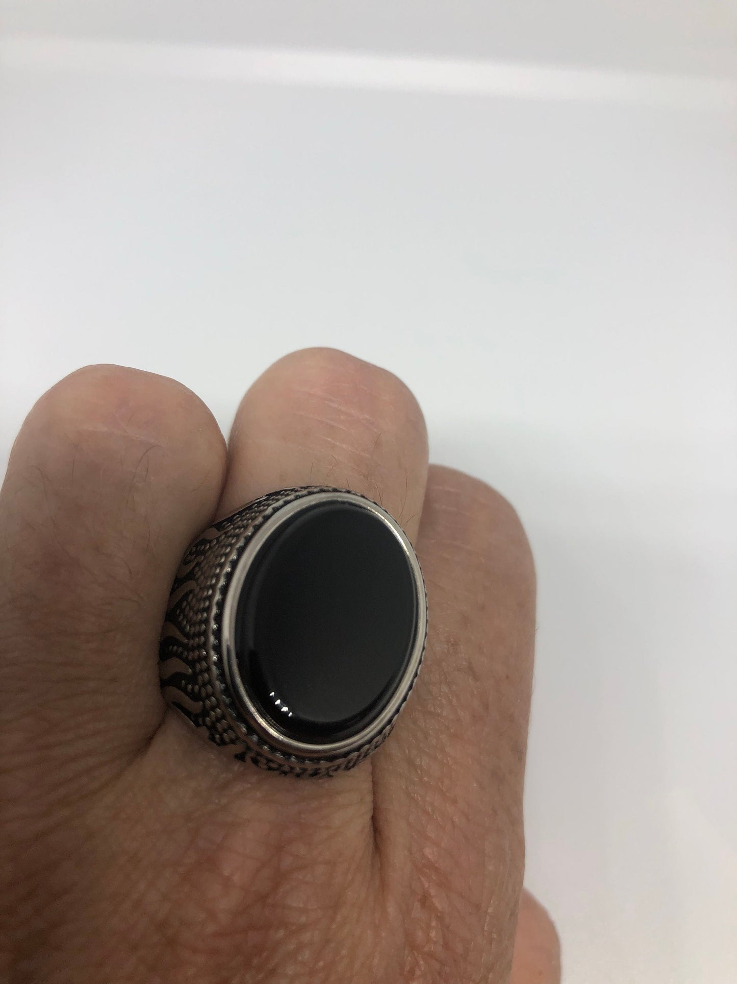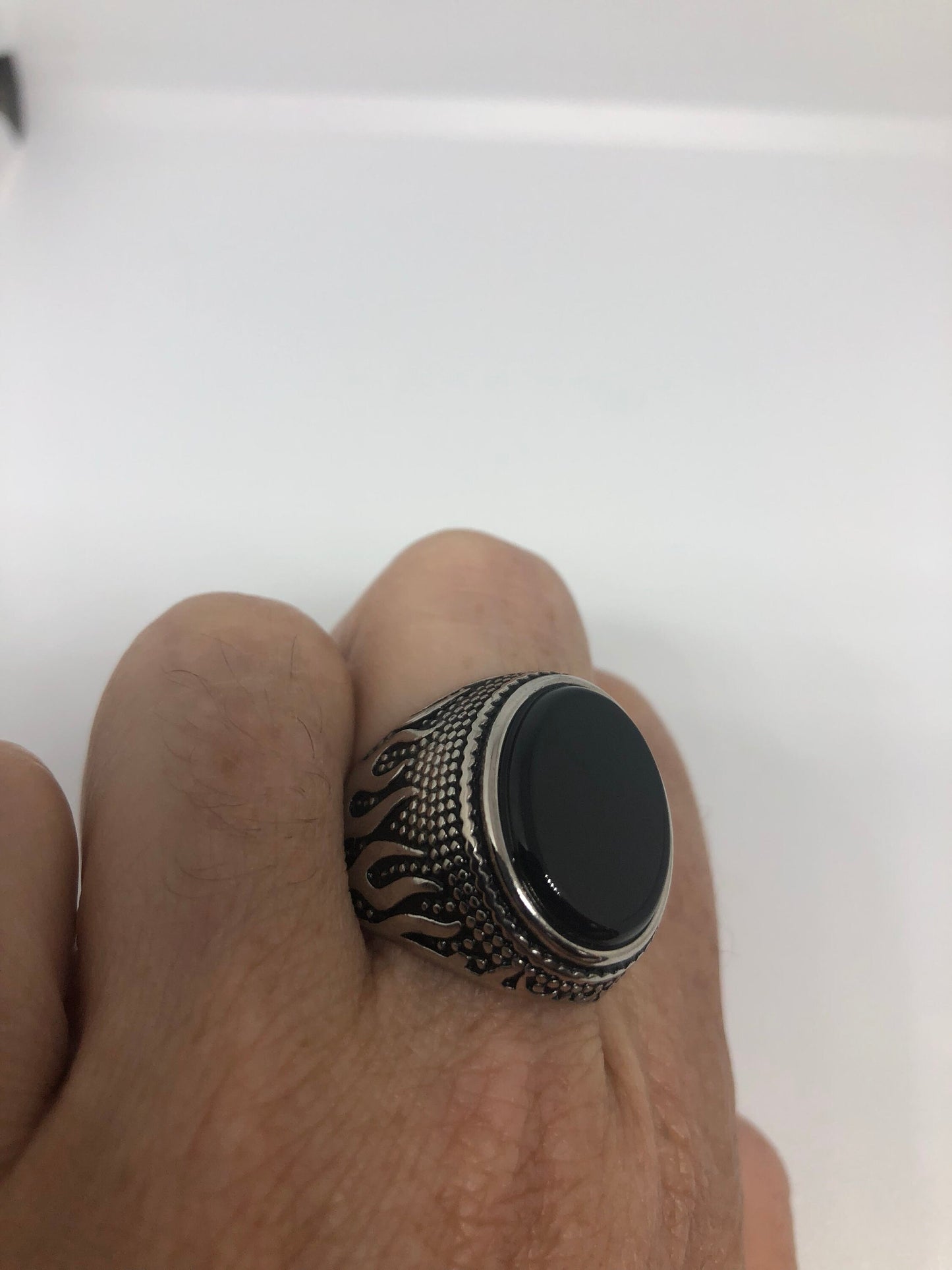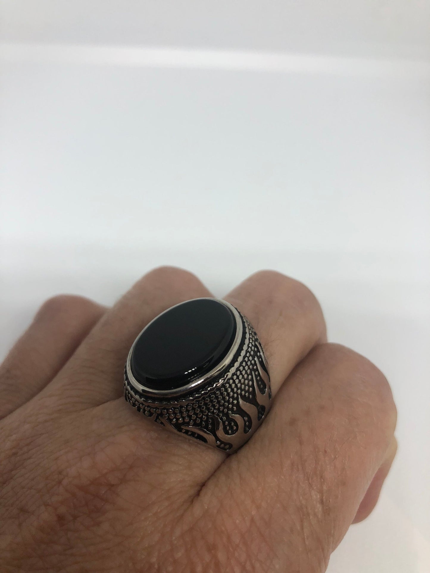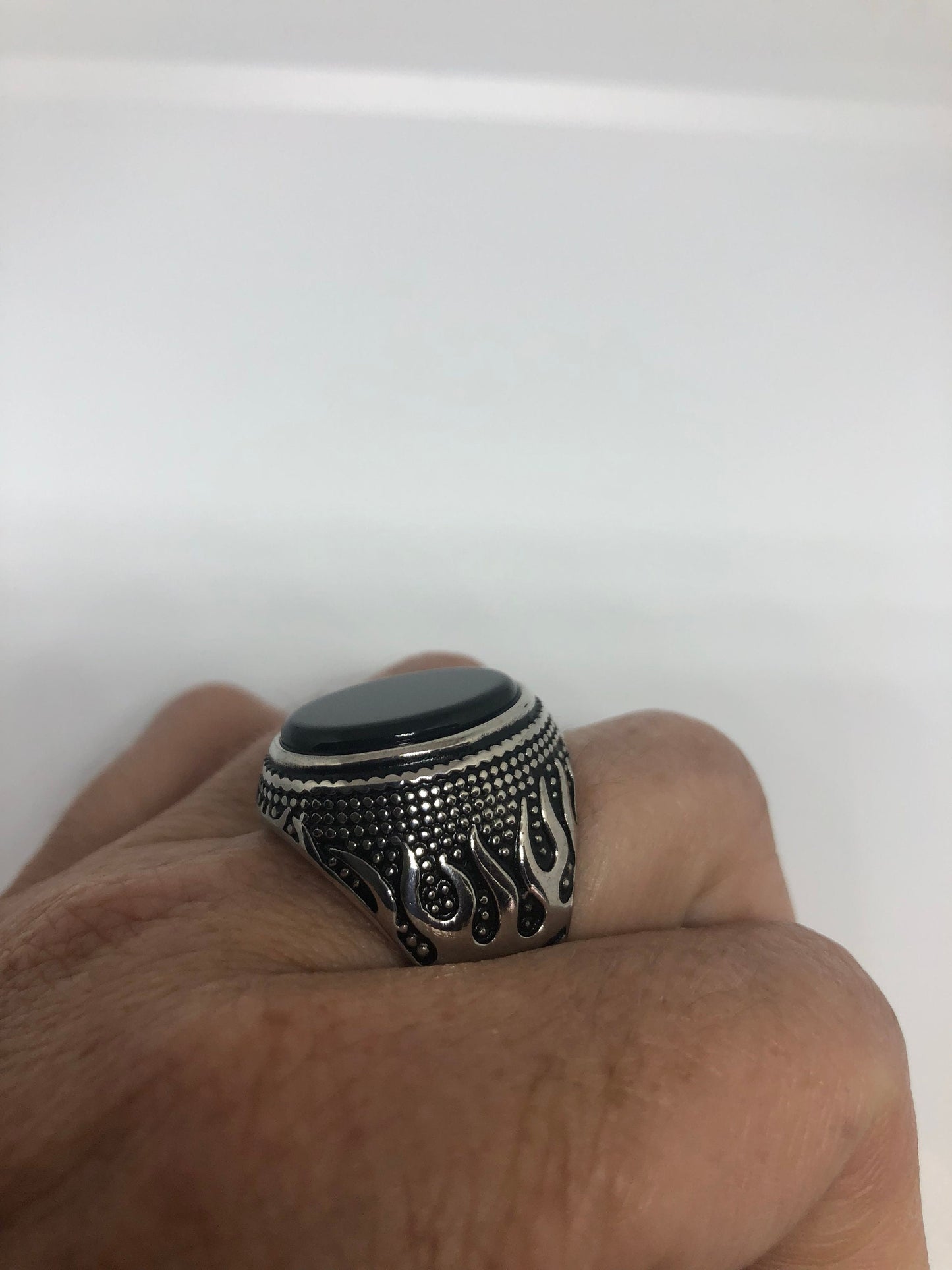 Vintage Gothic Black Onyx Stainless Steel Flame Mens Ring