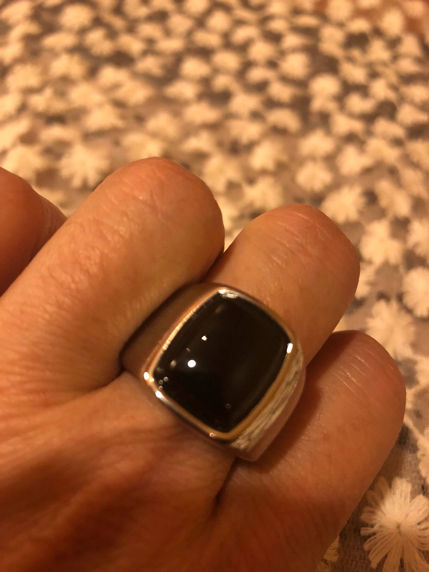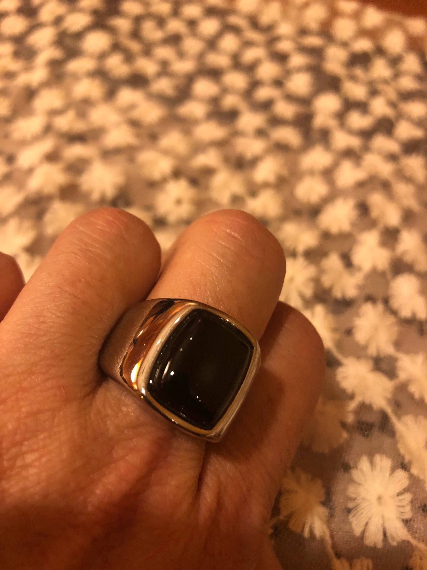 Vintage Gothic Black Onyx Stainless Steel Mens Ring