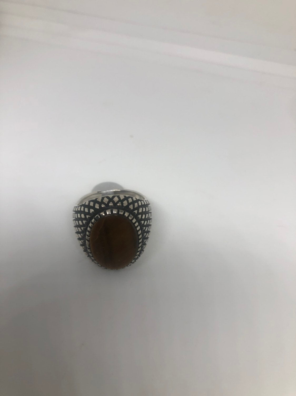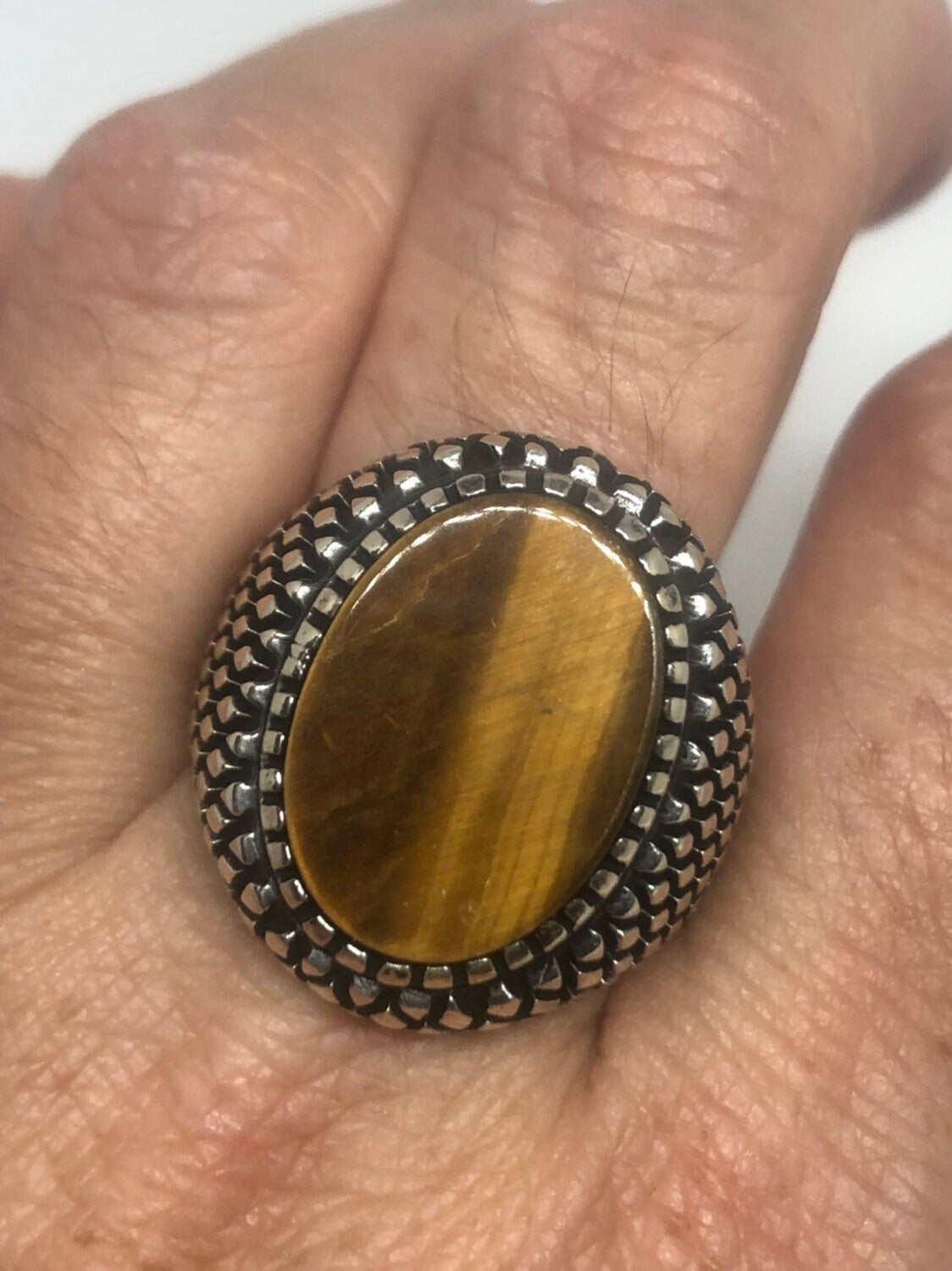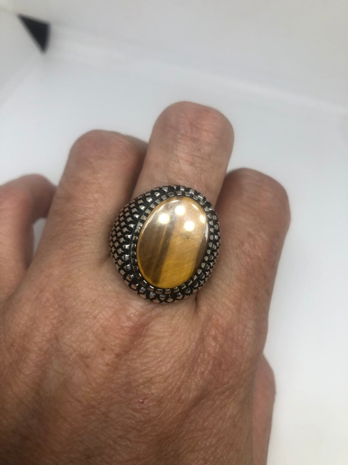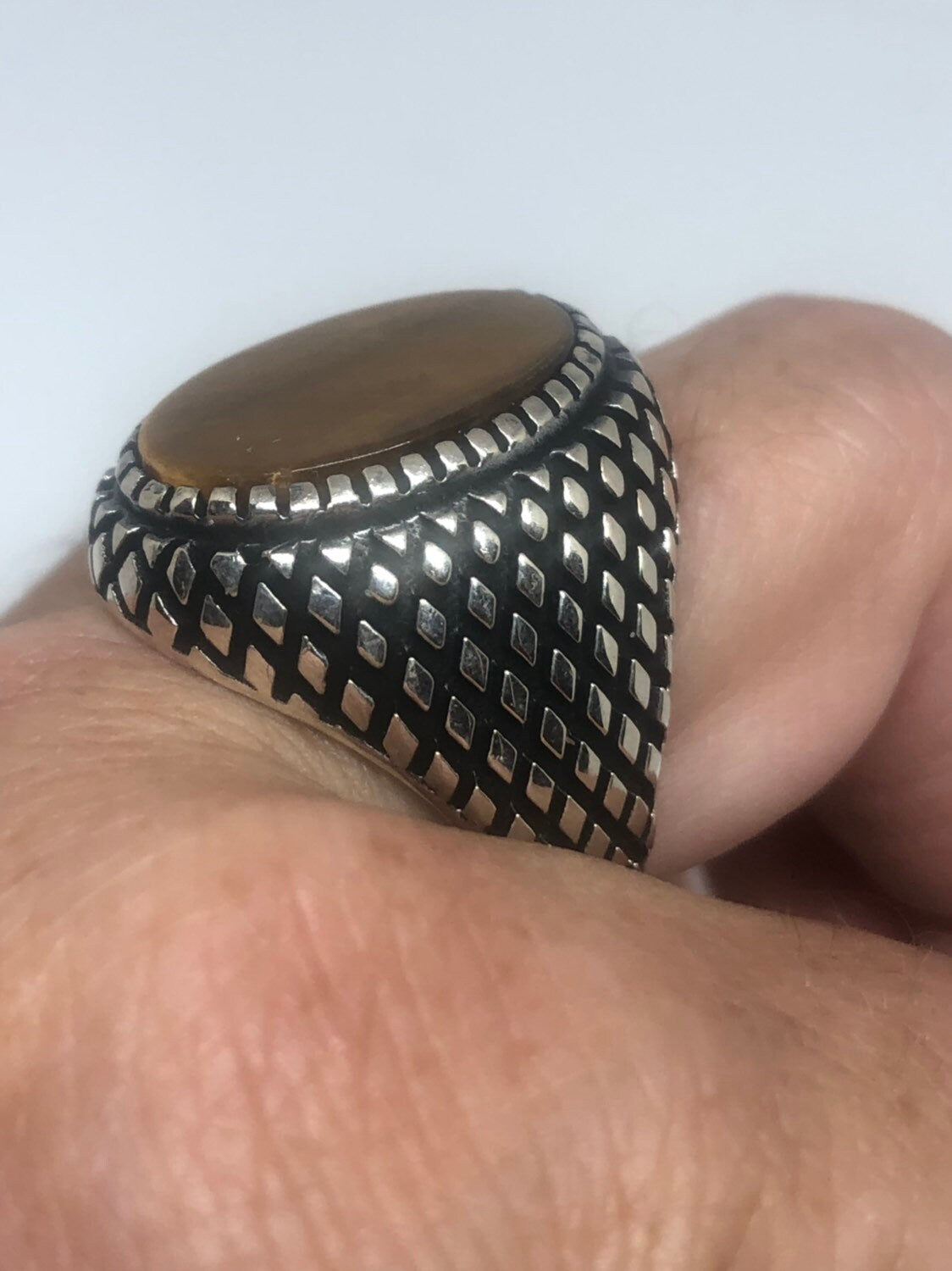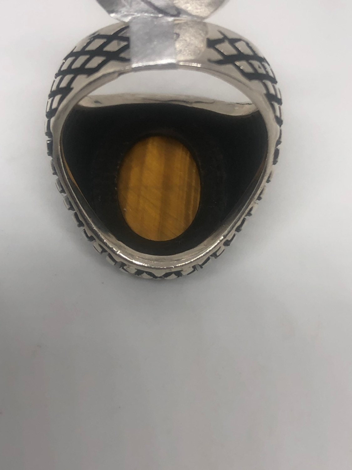 Vintage Gothic Sterling Silver Genuine Tigers Eye Mens Ring