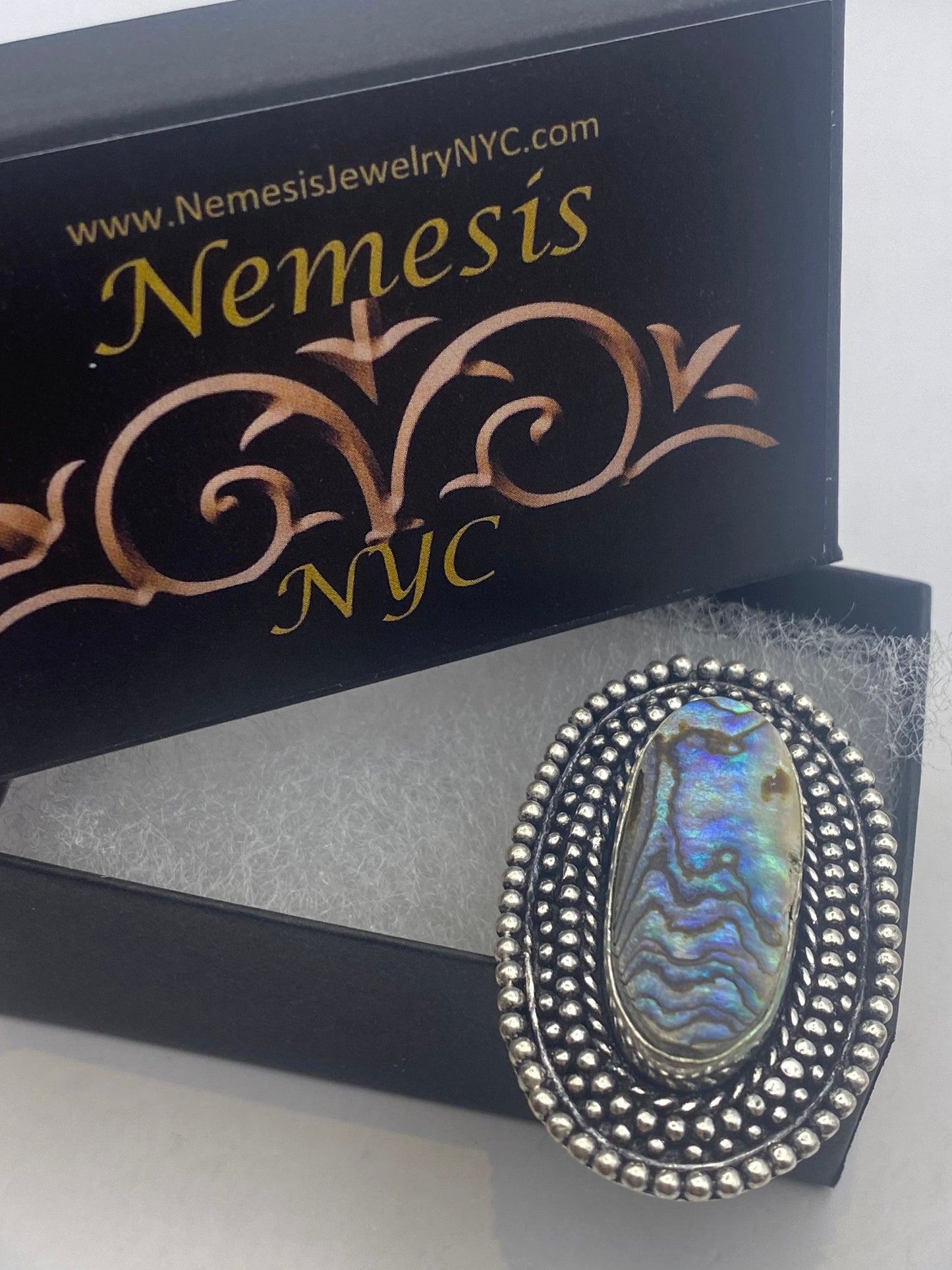 Lovely polished white bronze silver has the look of 925 set with a huge Abalone
