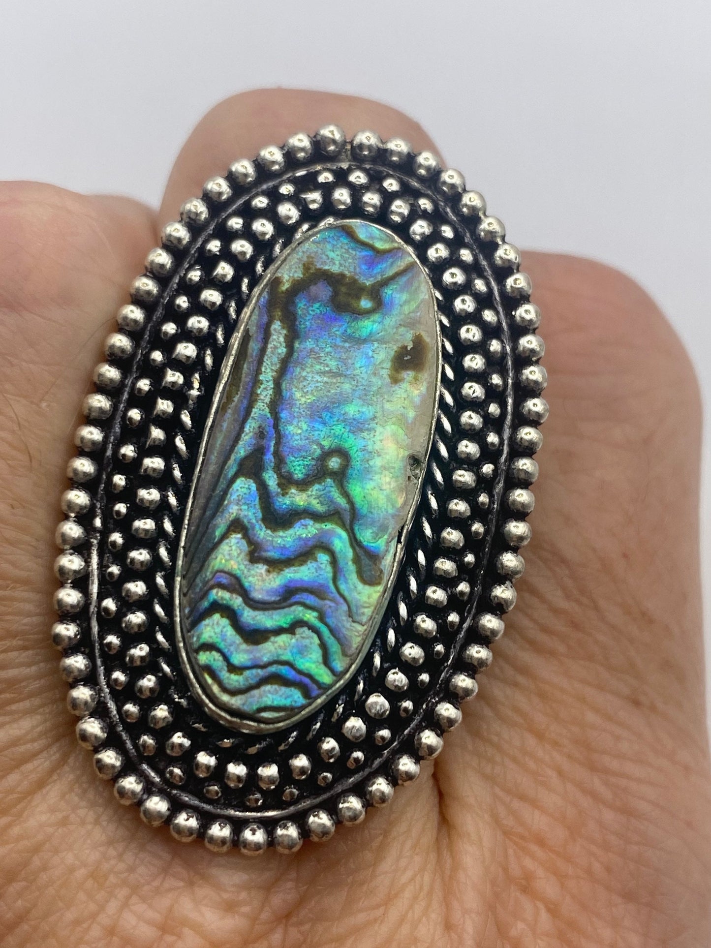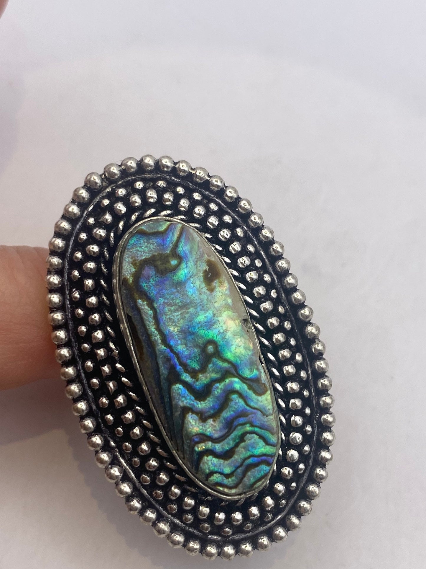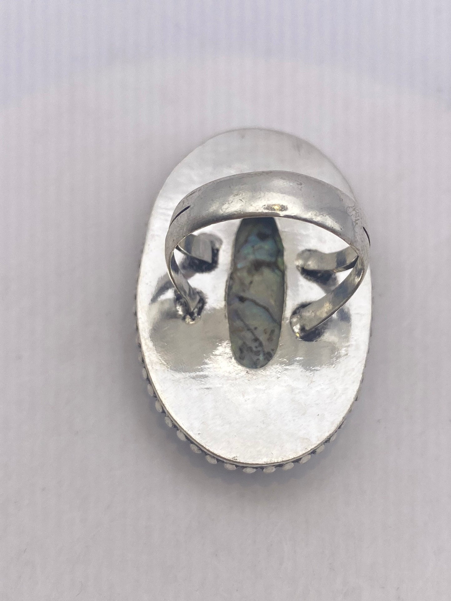 Vintage Green Abalone White Bronze Silver Cocktail Ring