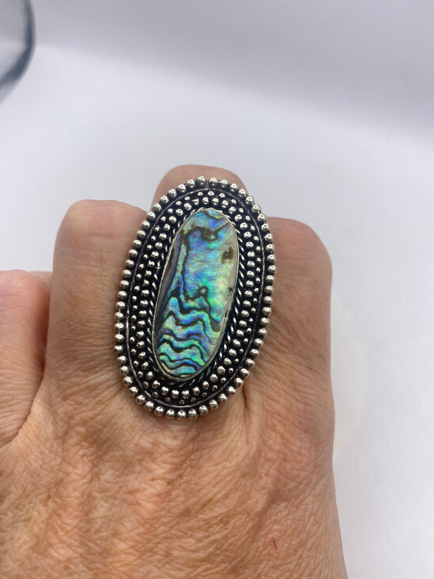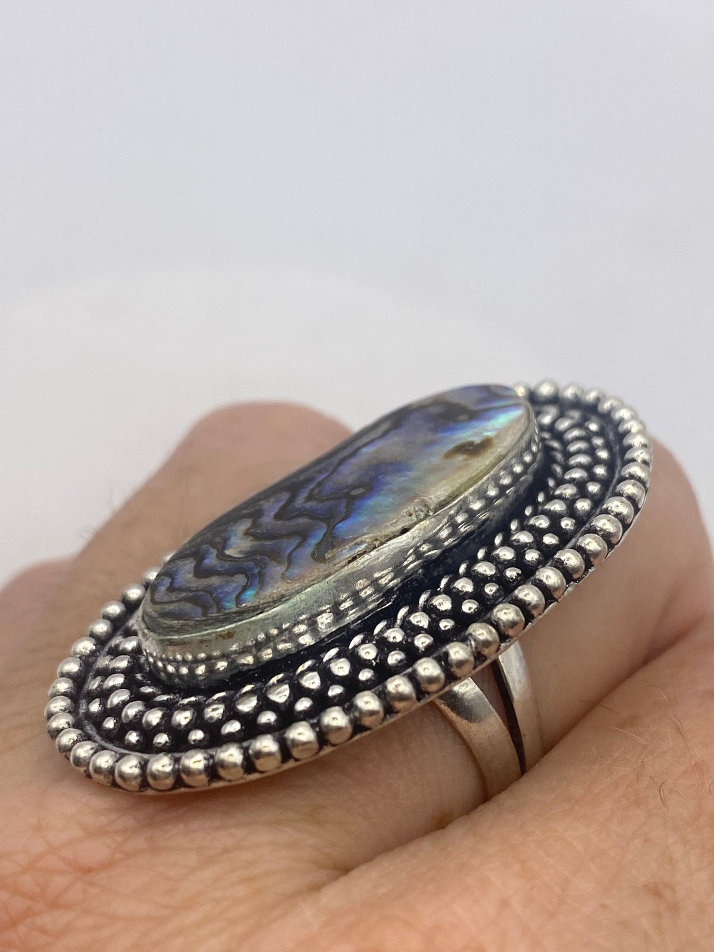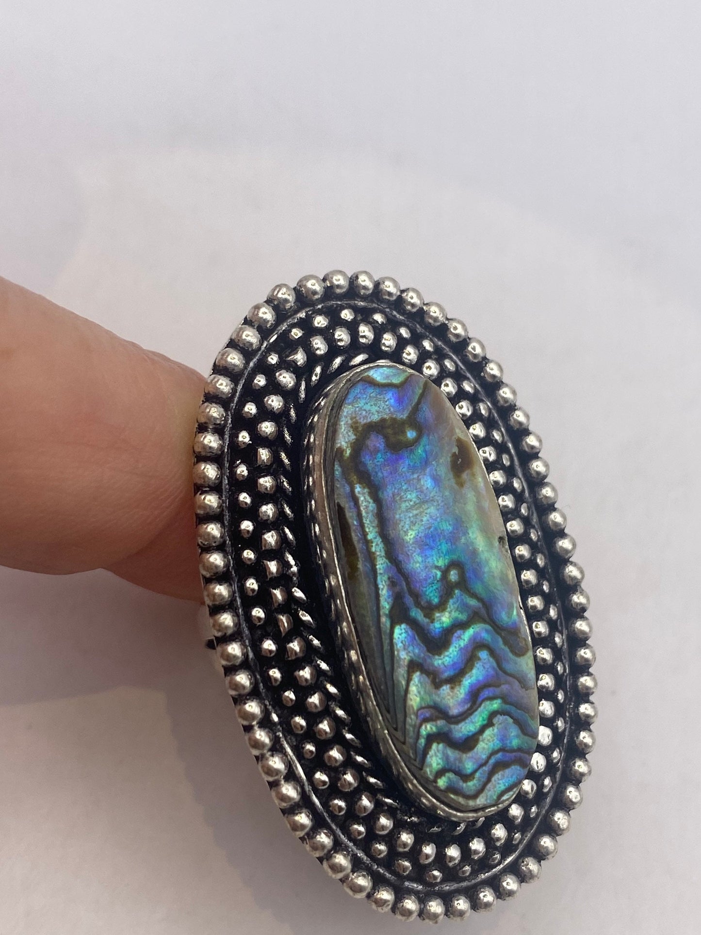 Vintage Green Abalone White Bronze Silver Cocktail Ring