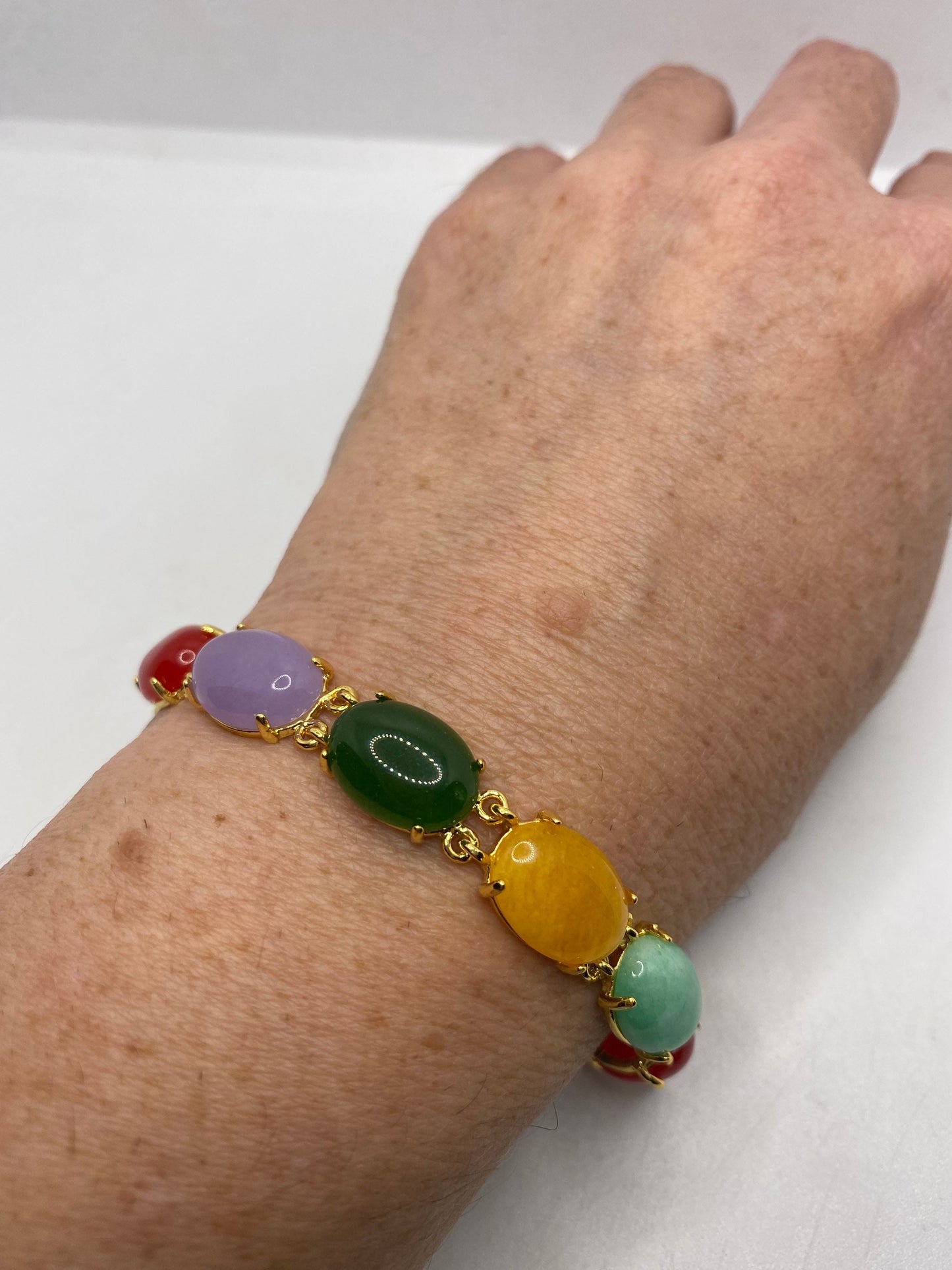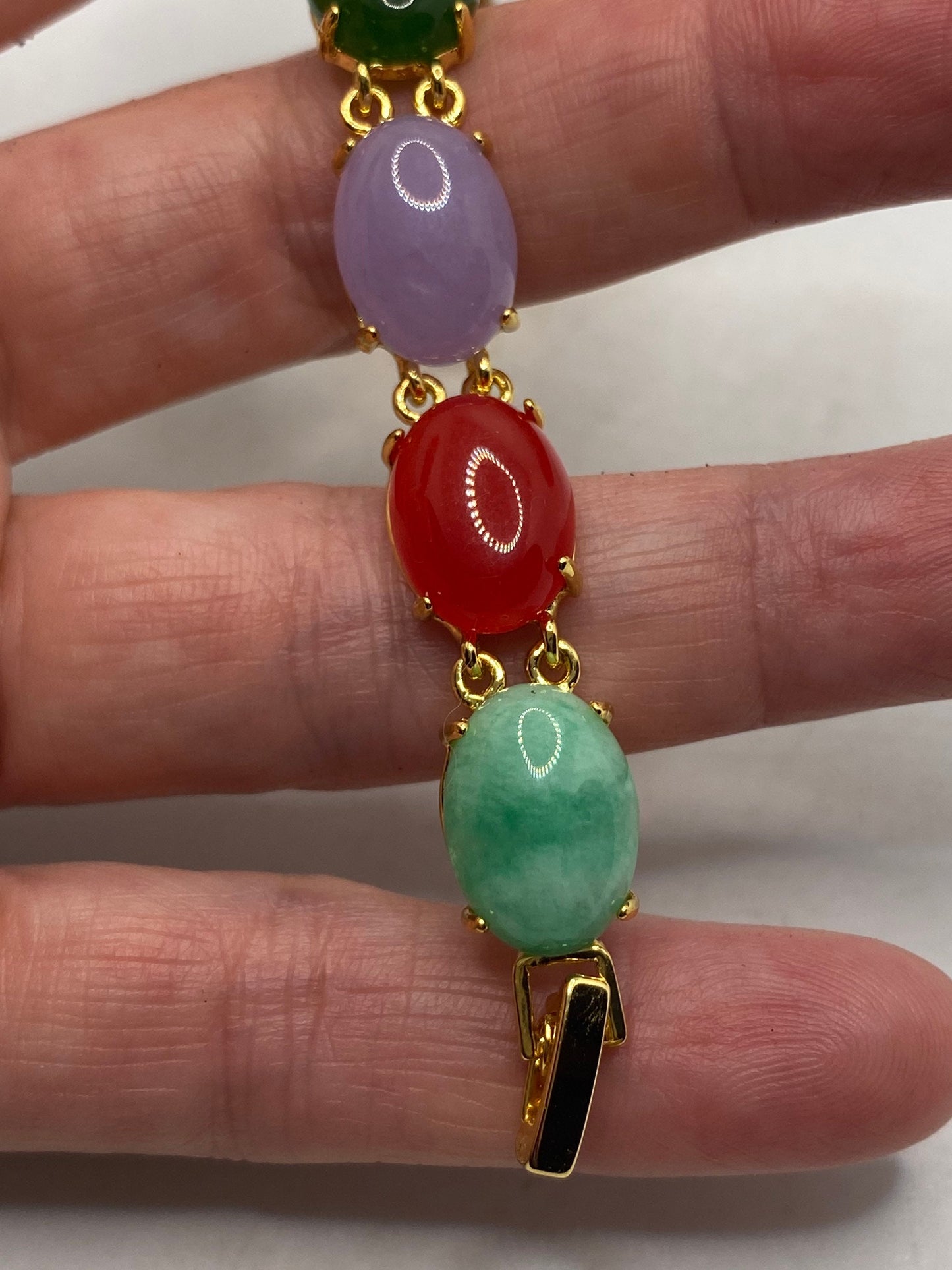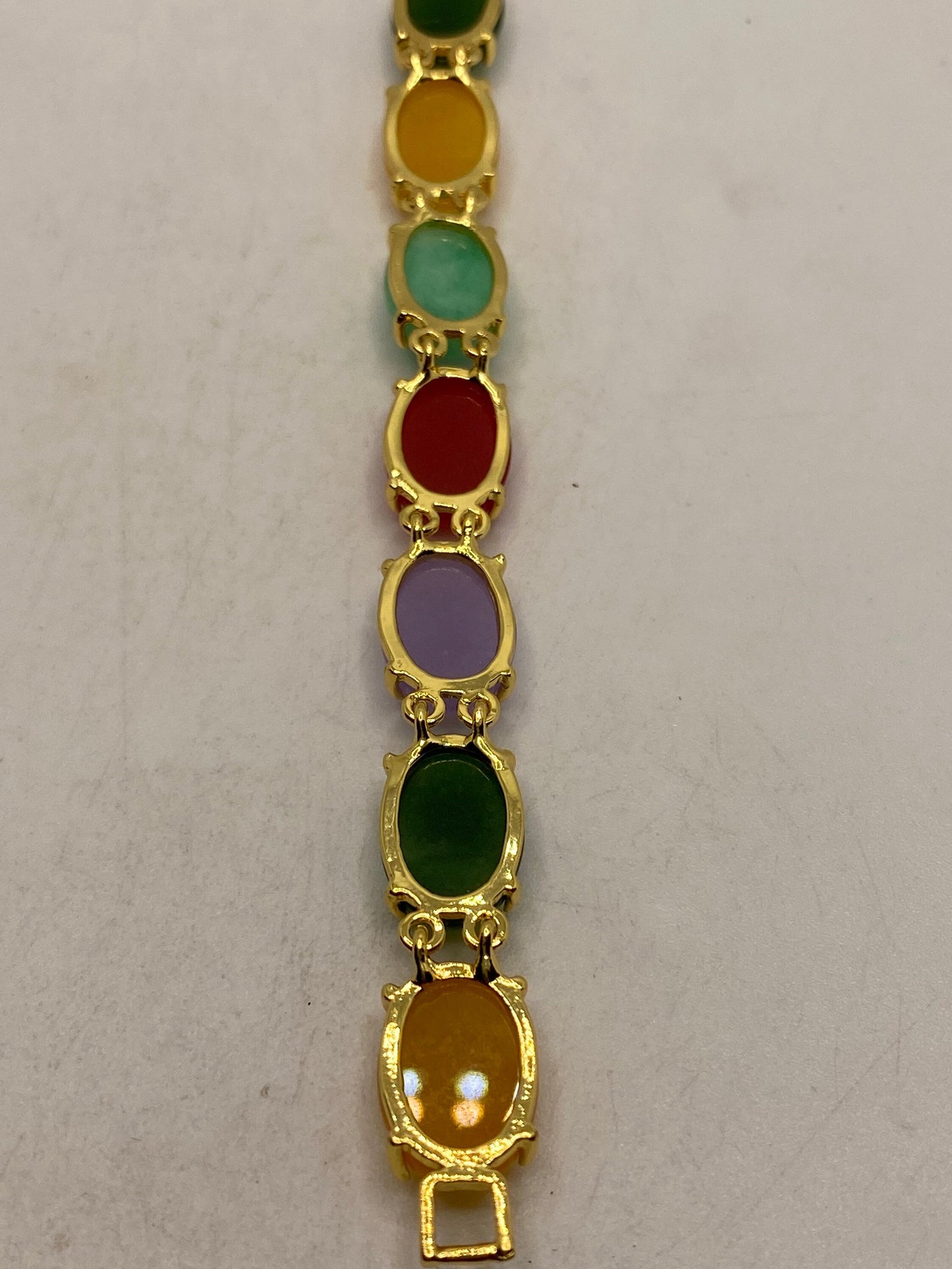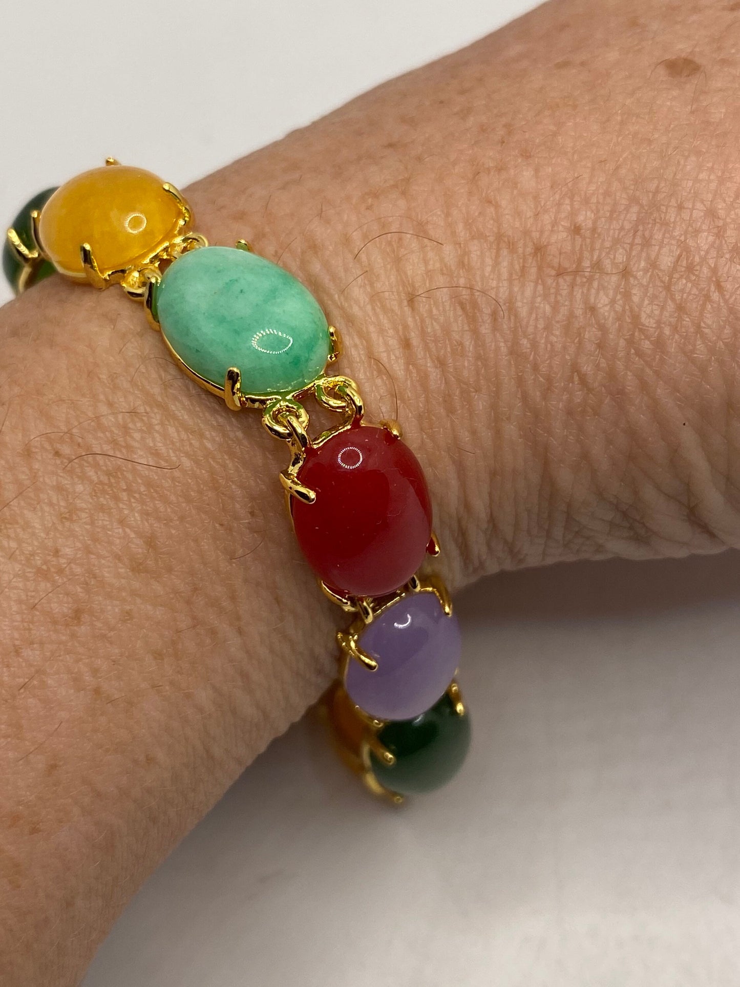 This is "fun jade" Color enhanced stone. Vintage 1970's re finished.