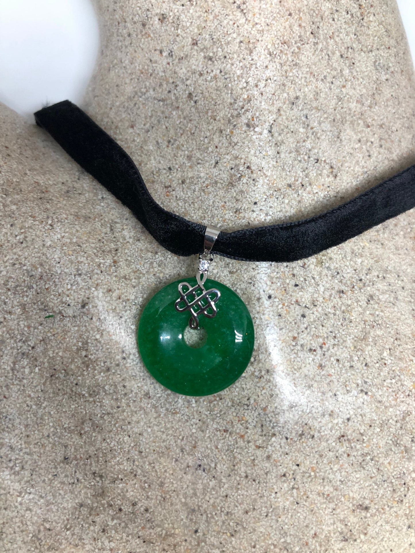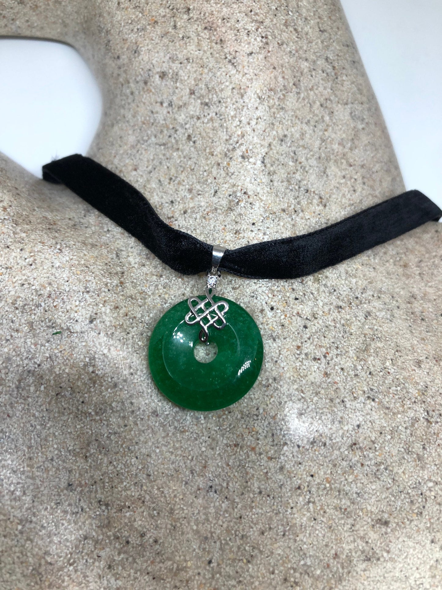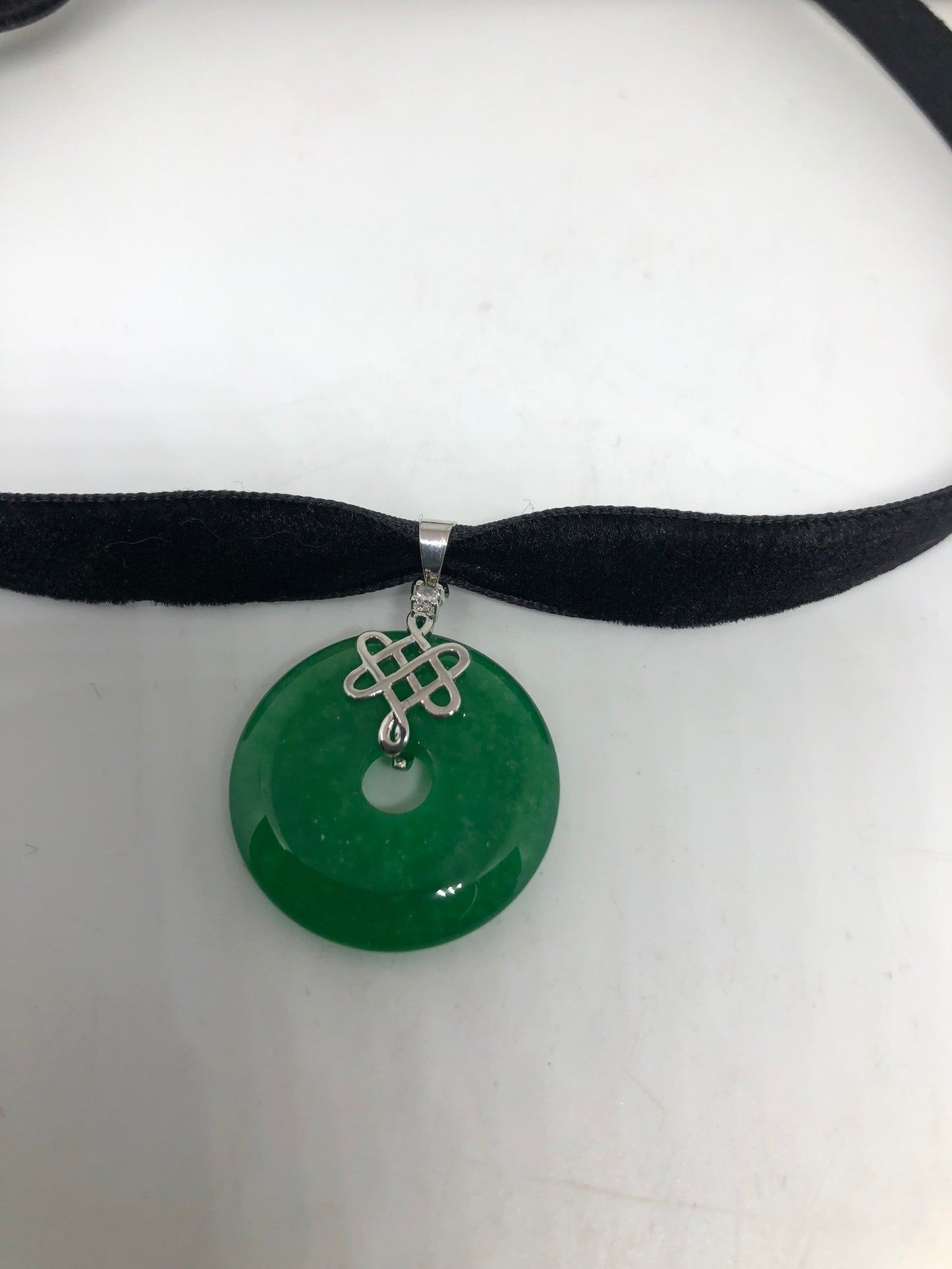 Vintage Green Jade Choker Silver Finish necklace pendant