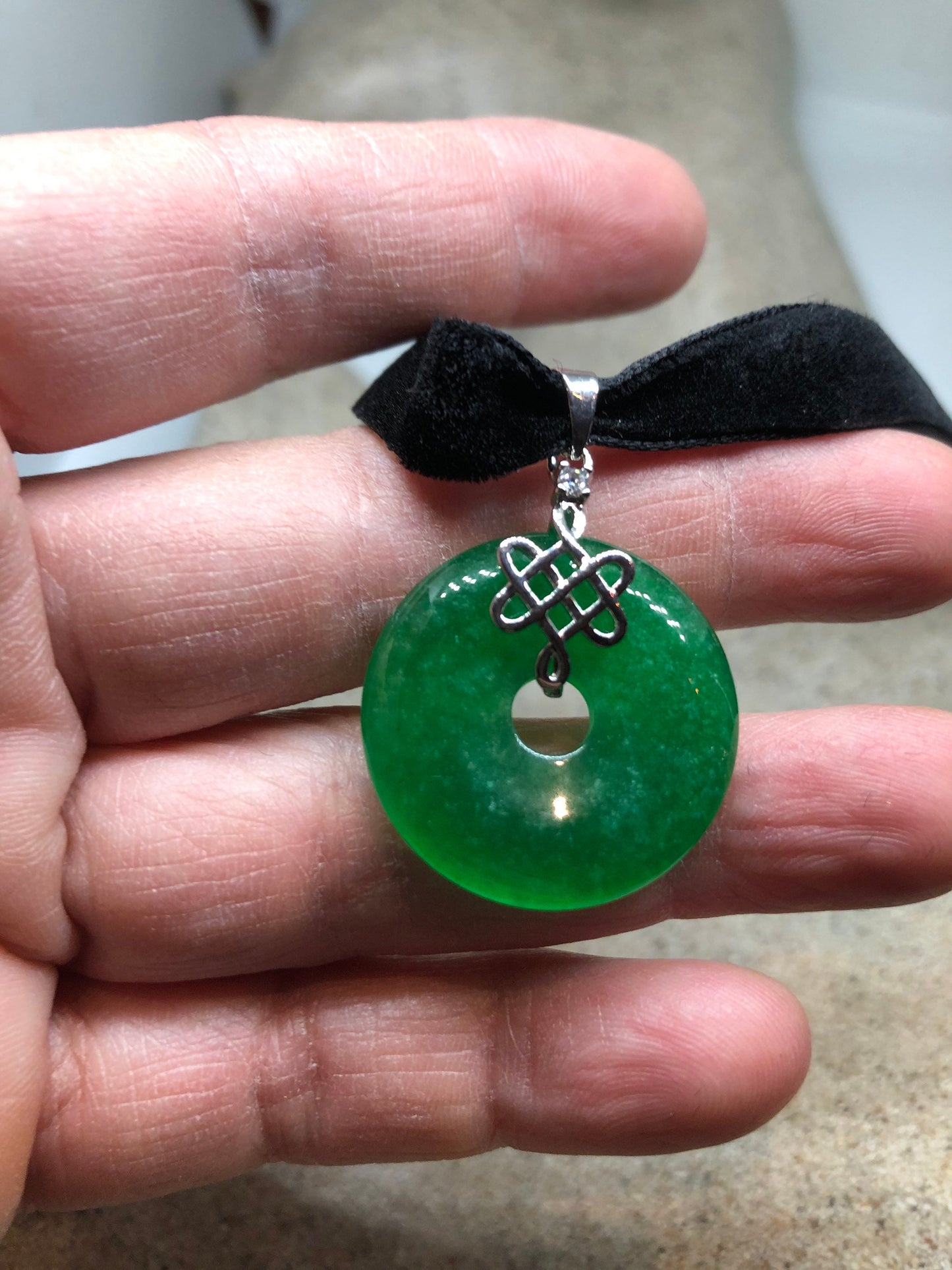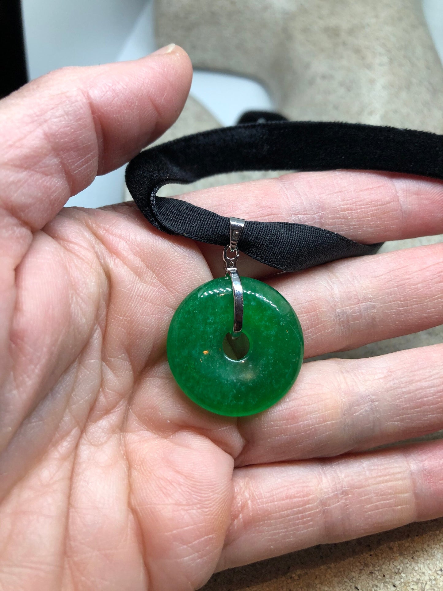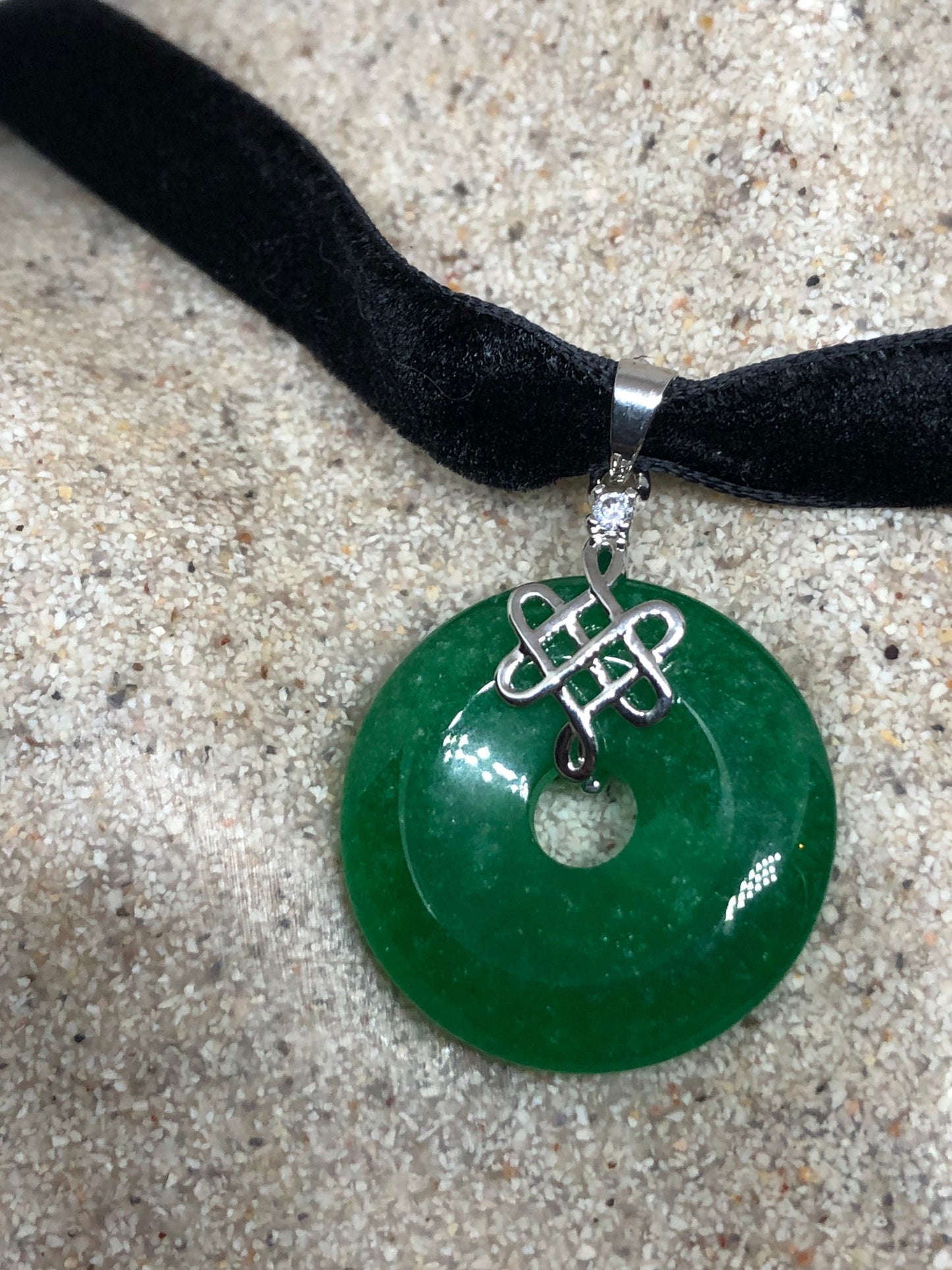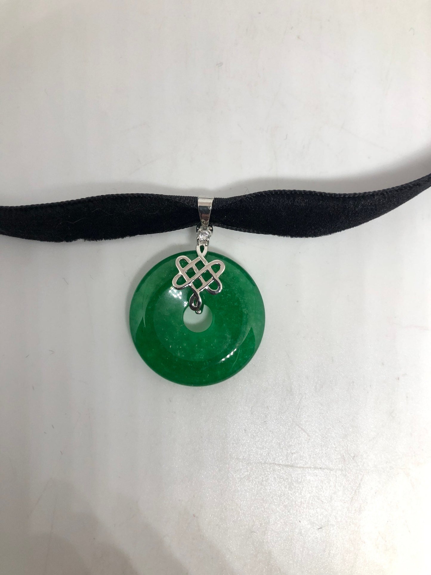 Vintage Green Jade Choker Silver Finish necklace pendant