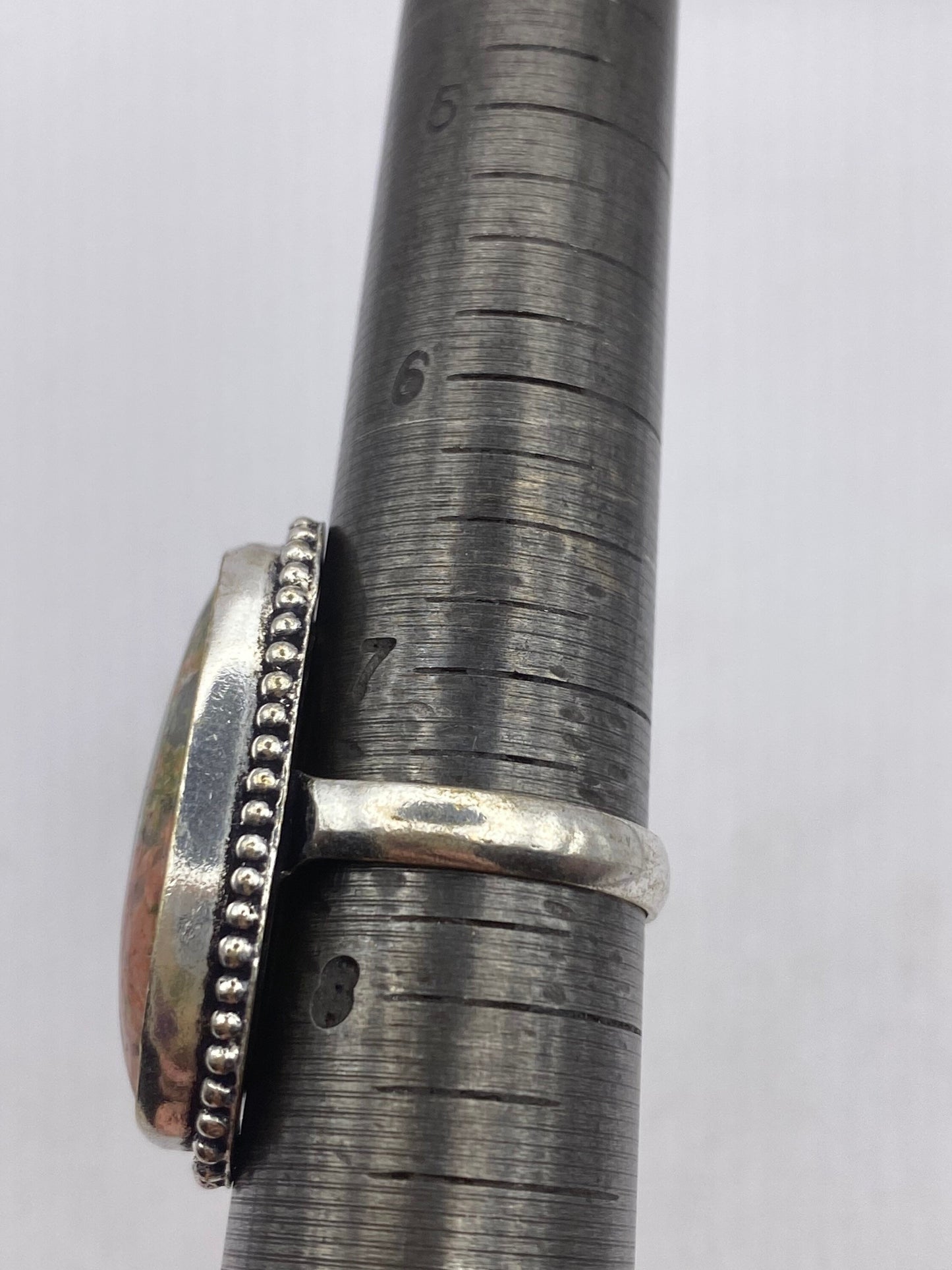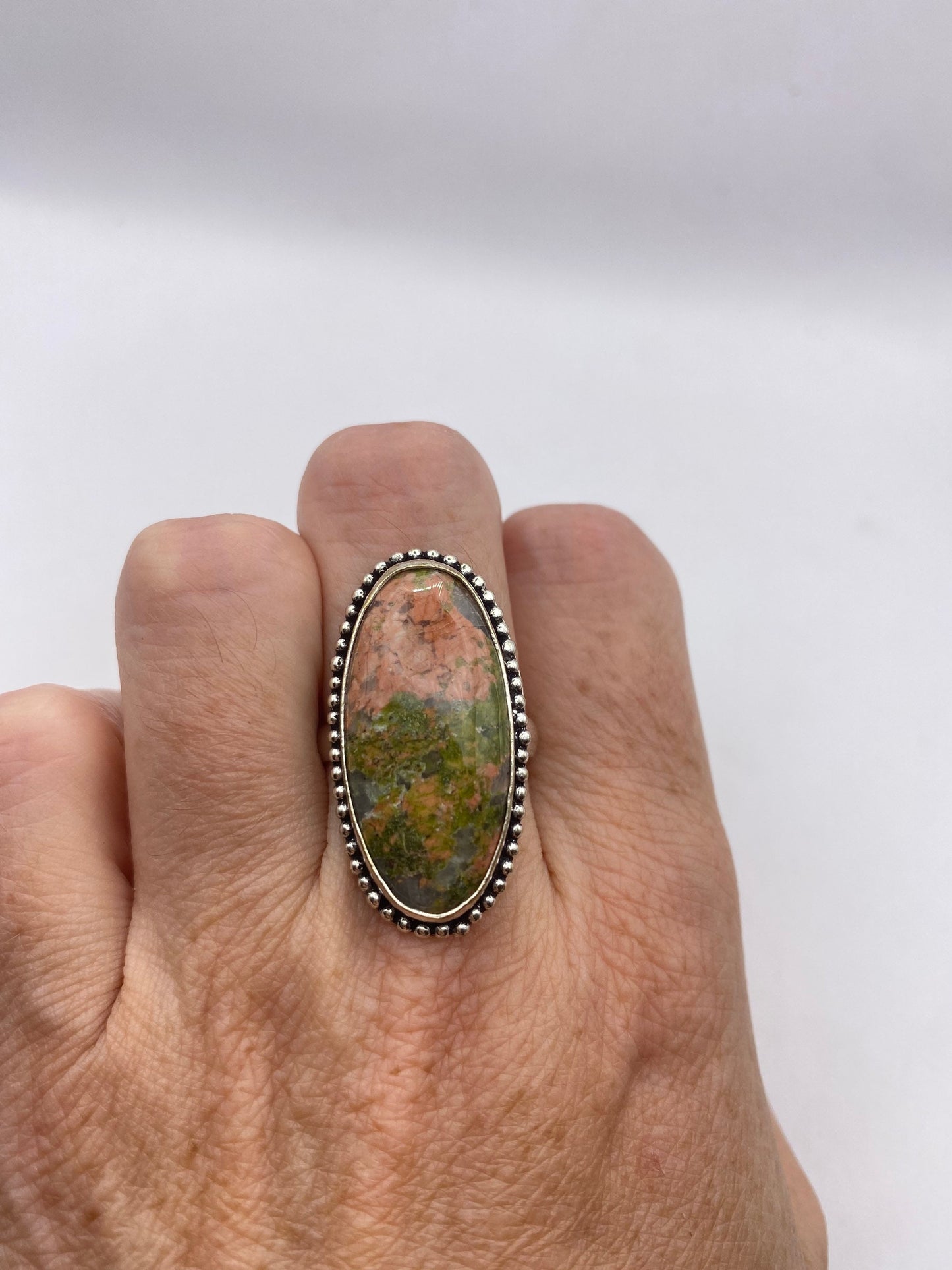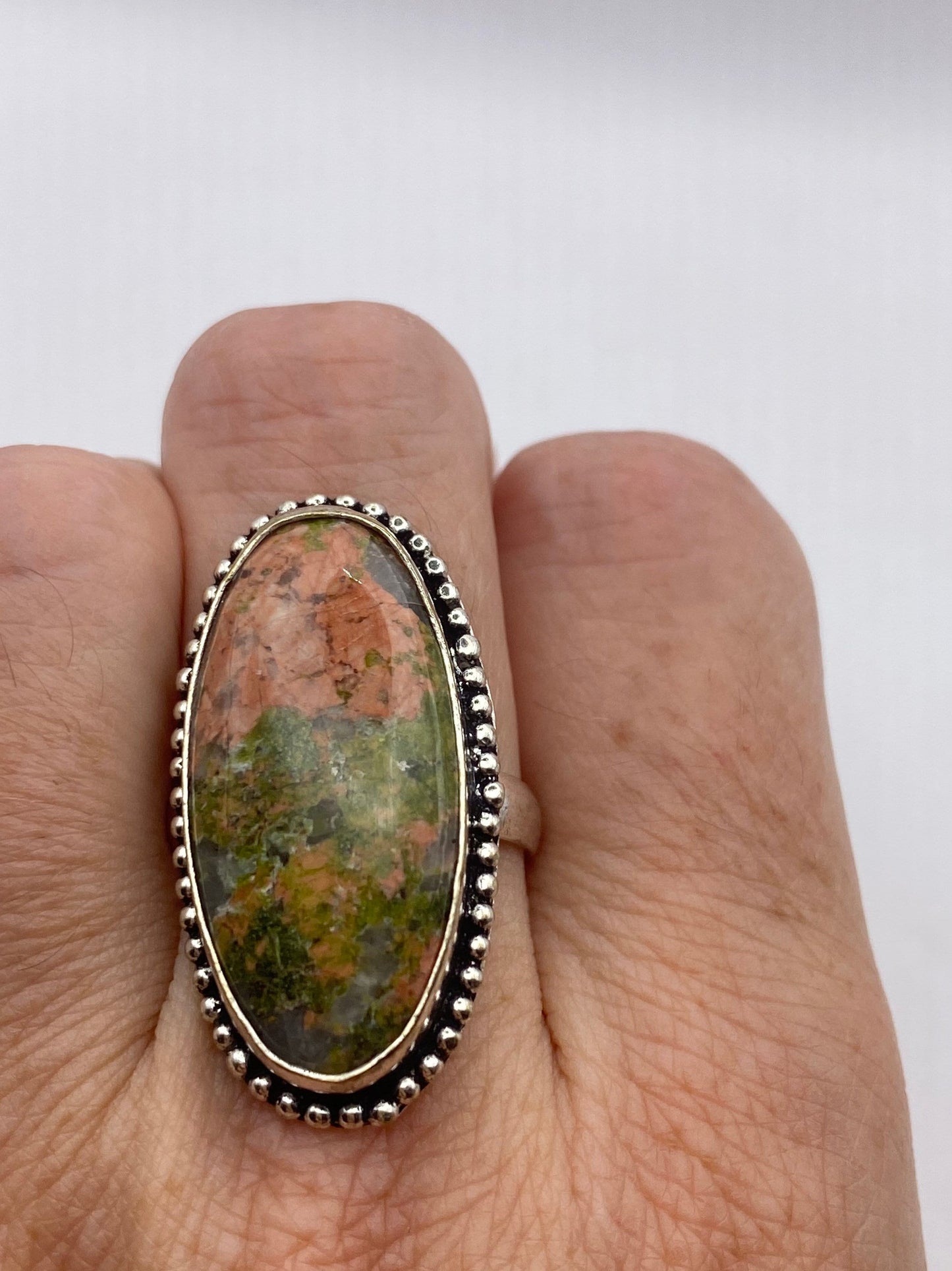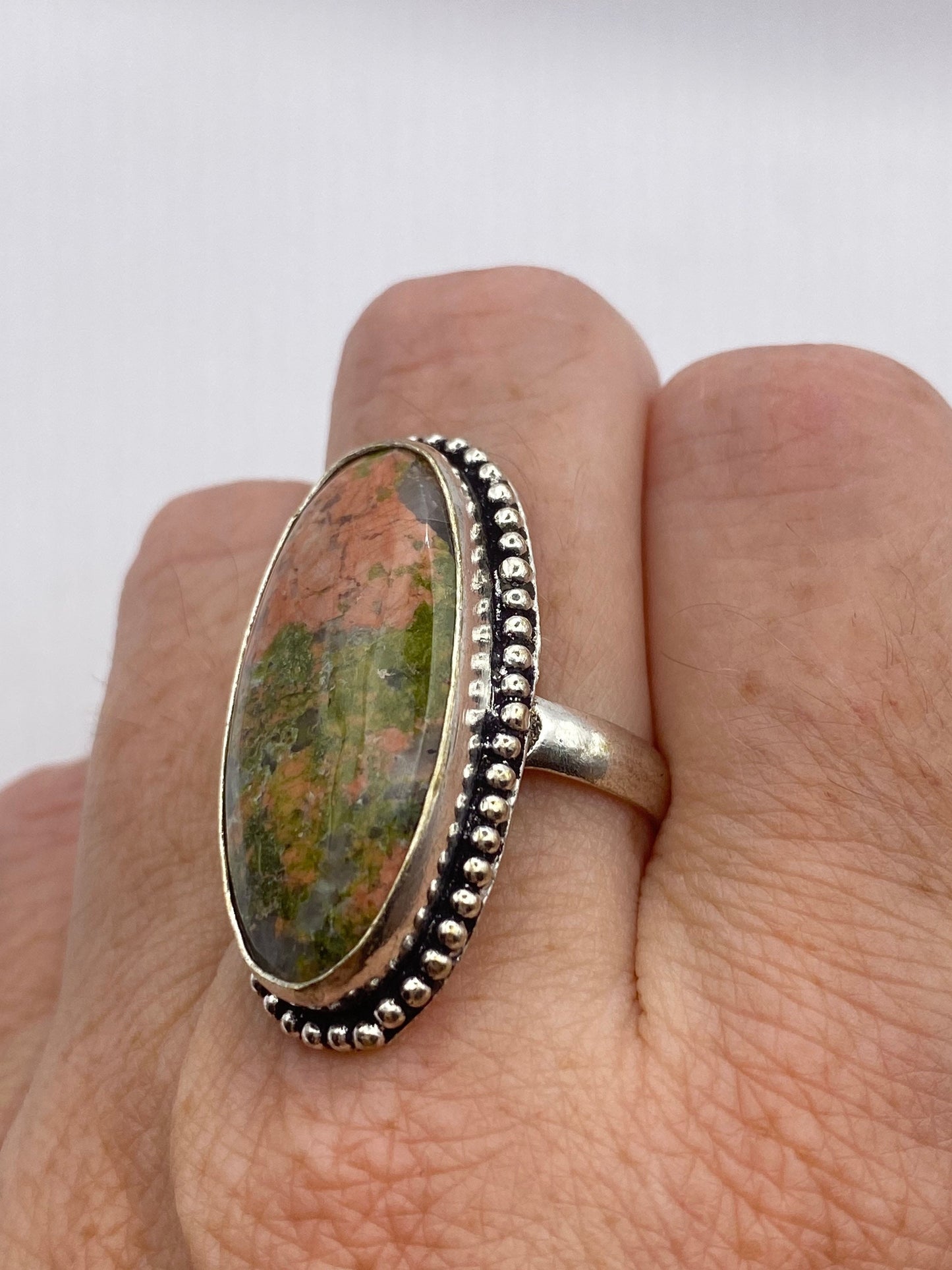 Vintage Green Unikcyte Silver Ring Size 7.5