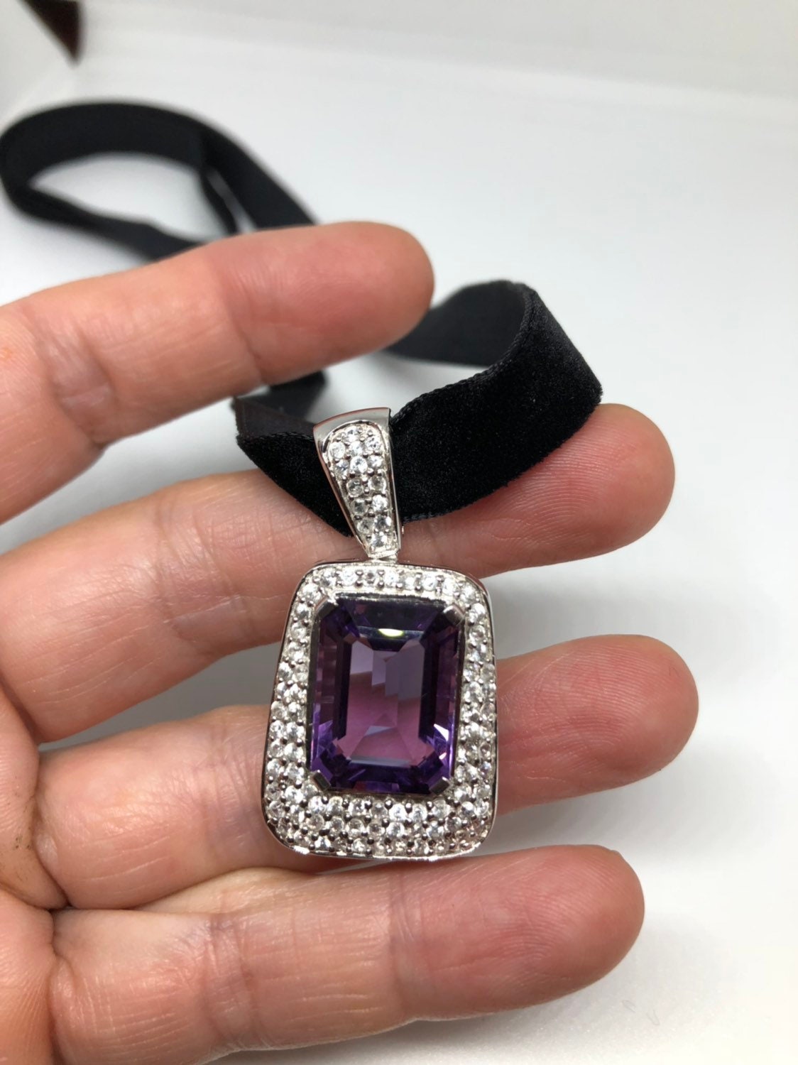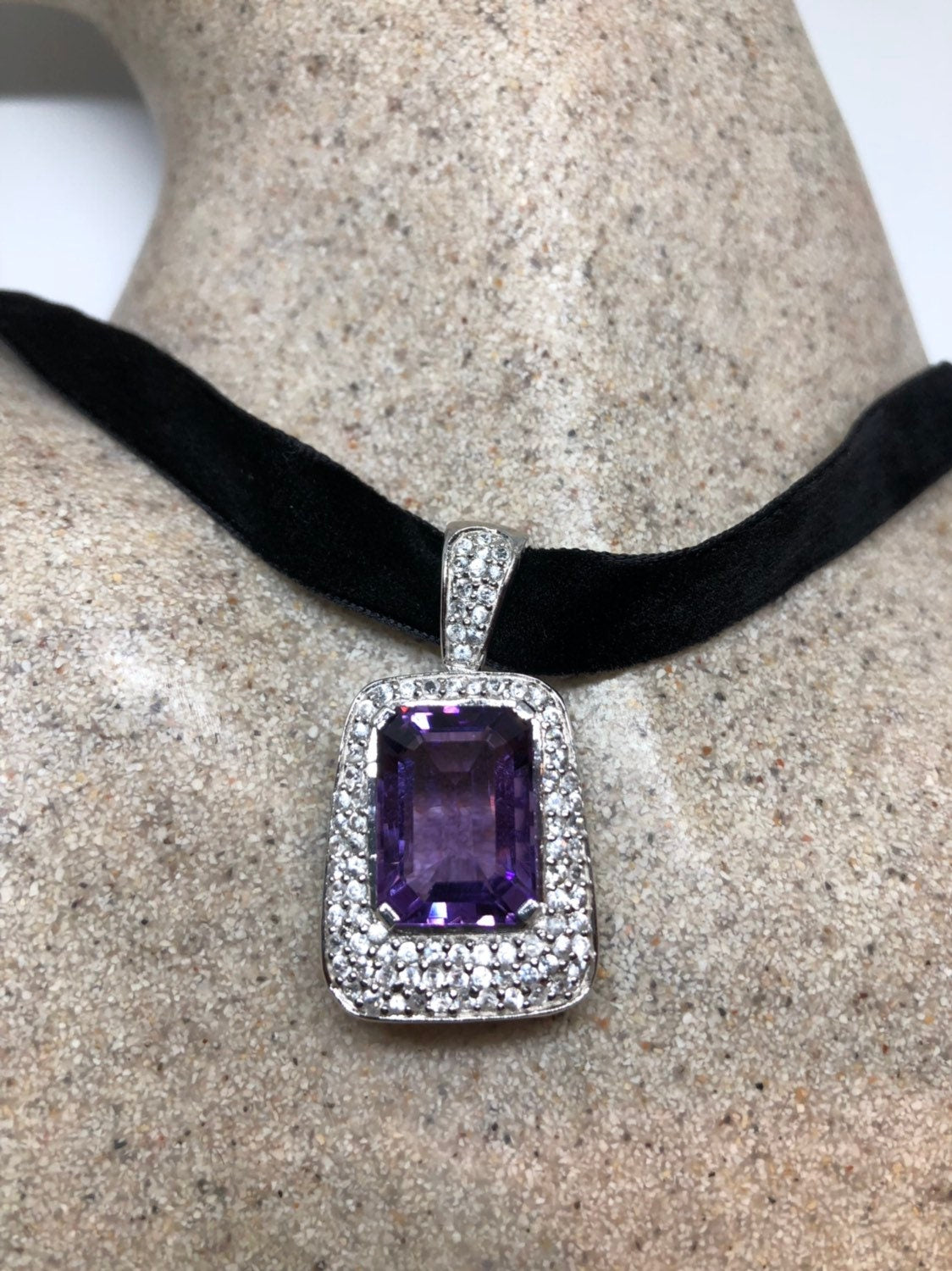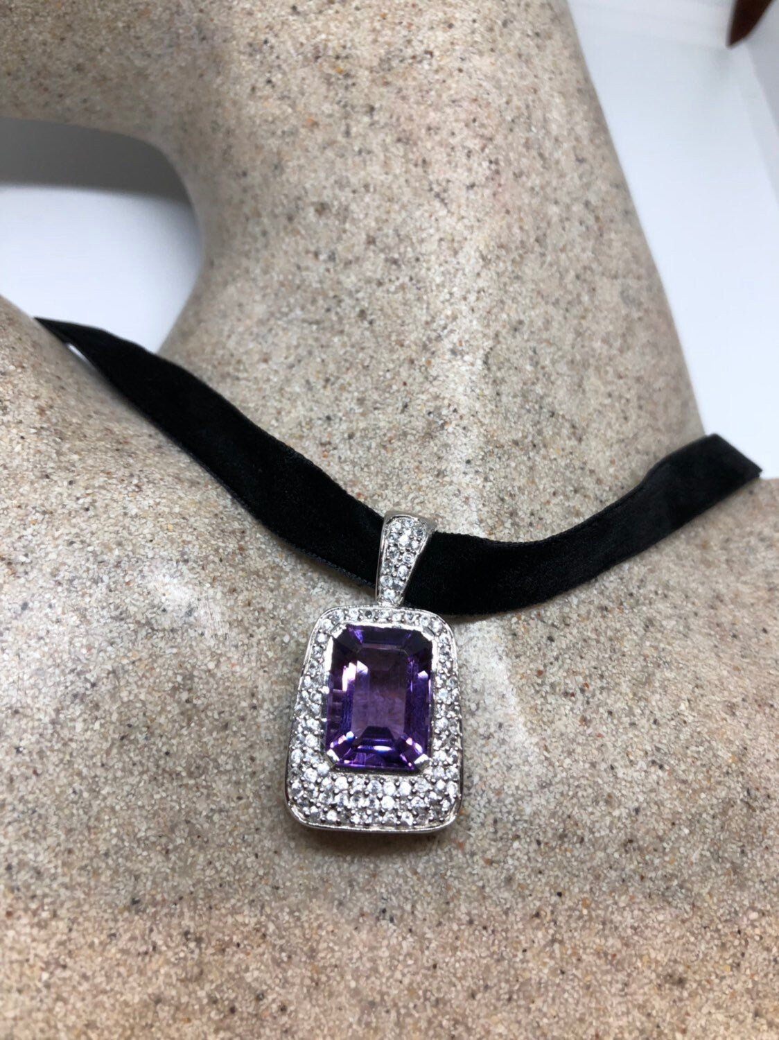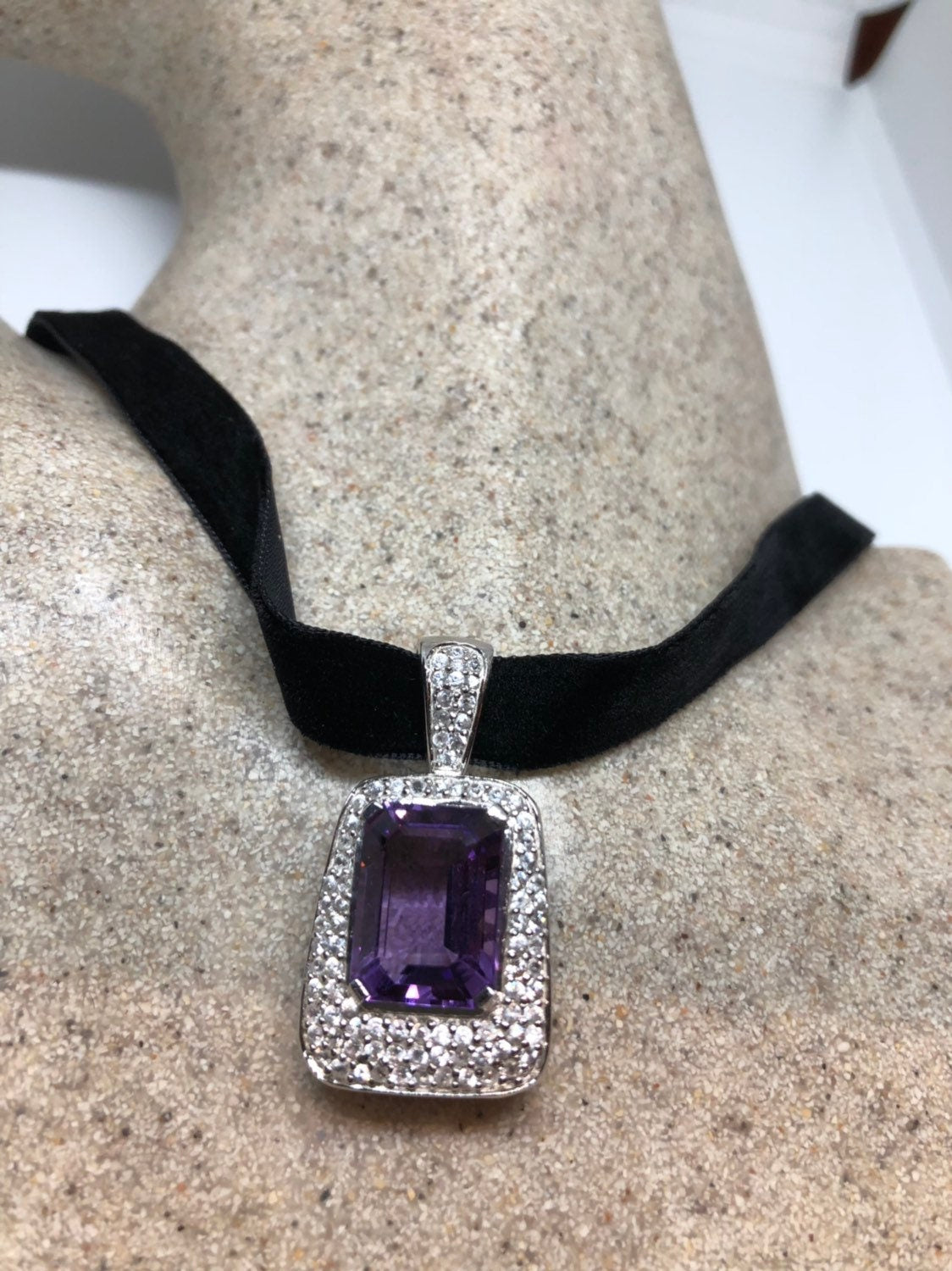 Vintage Handmade 925 Sterling Silver Purple Amethyst Pendant