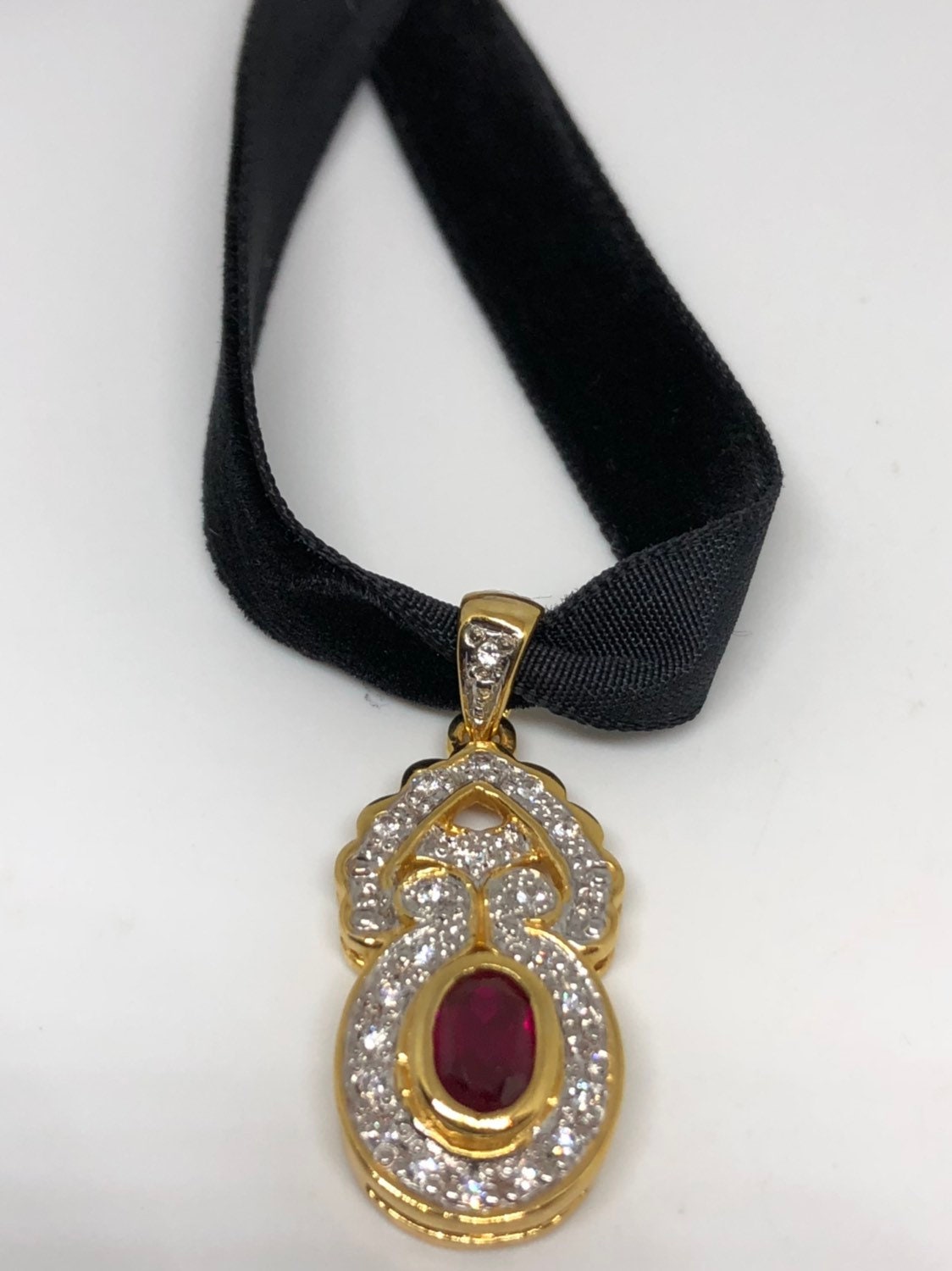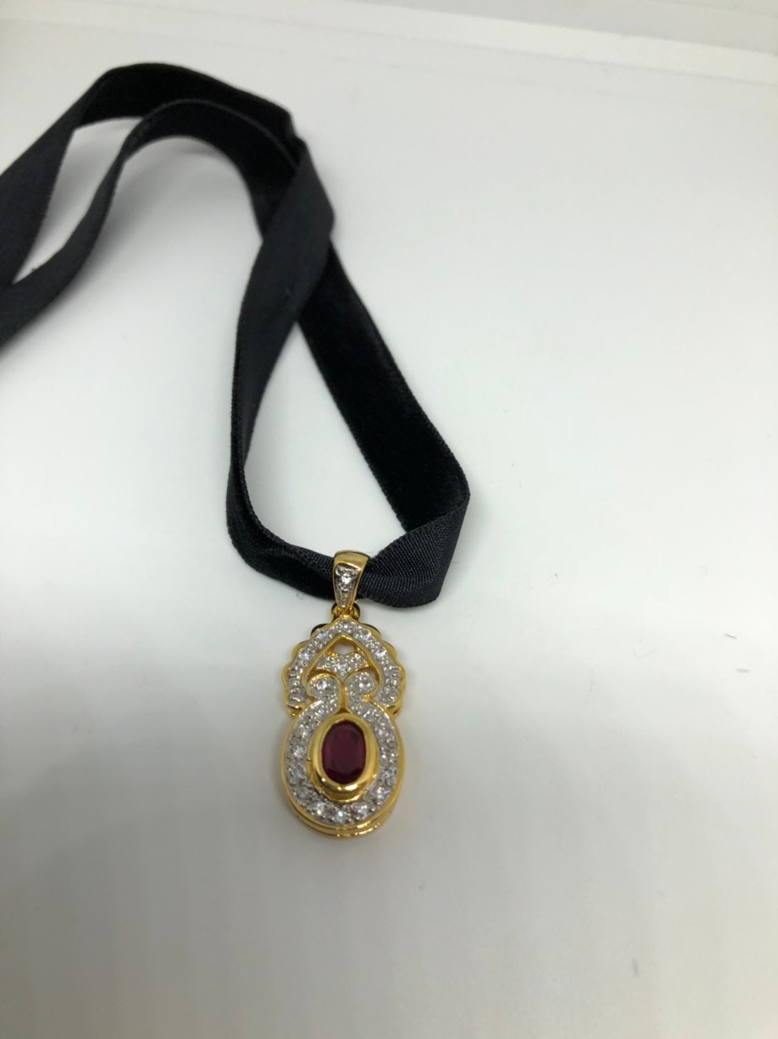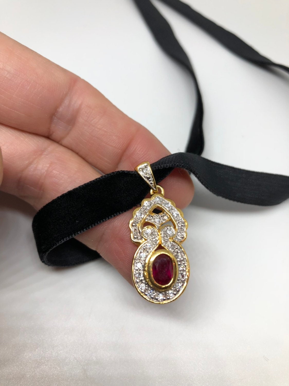 Vintage Handmade 925 Sterling Silver Gold Ruby Pendant