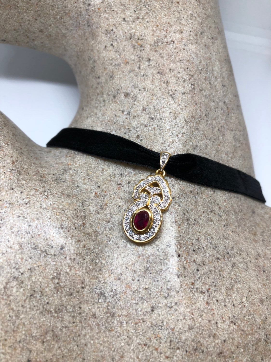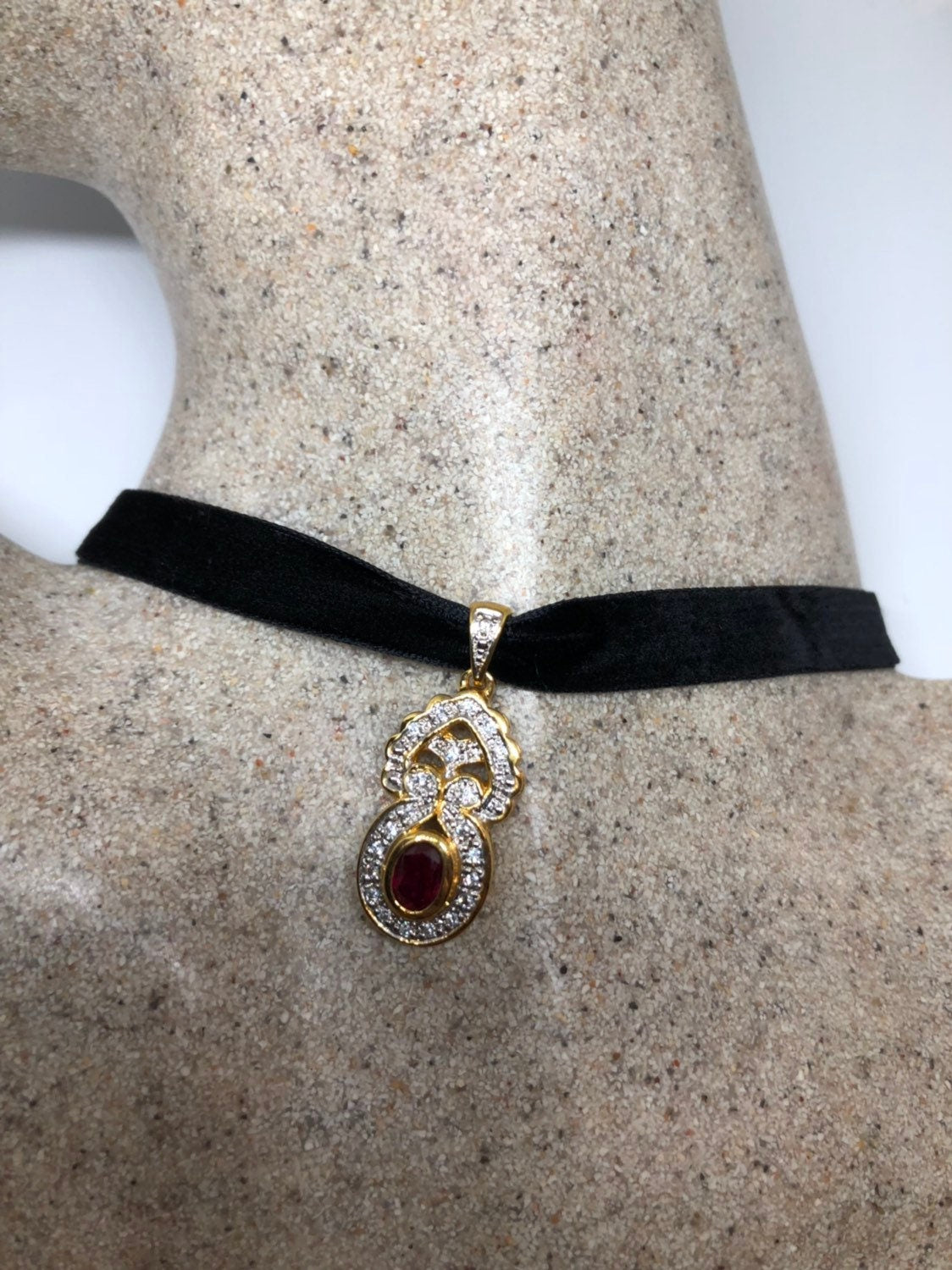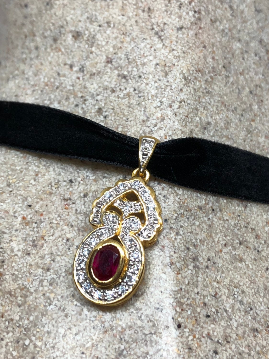 Vintage Handmade 925 Sterling Silver Gold Ruby Pendant