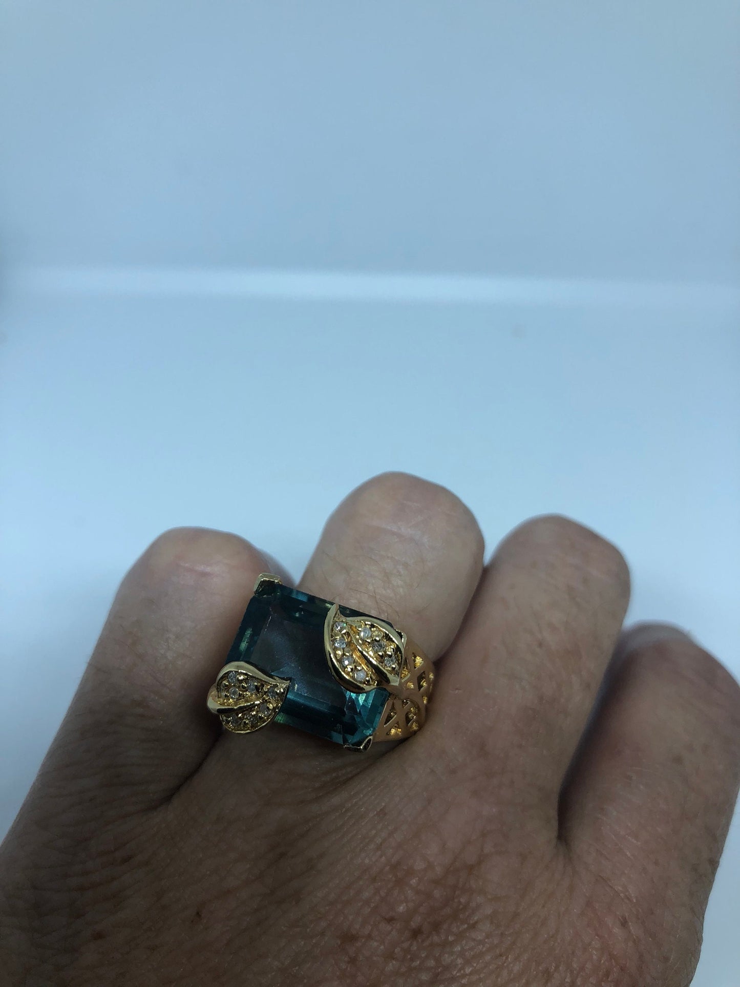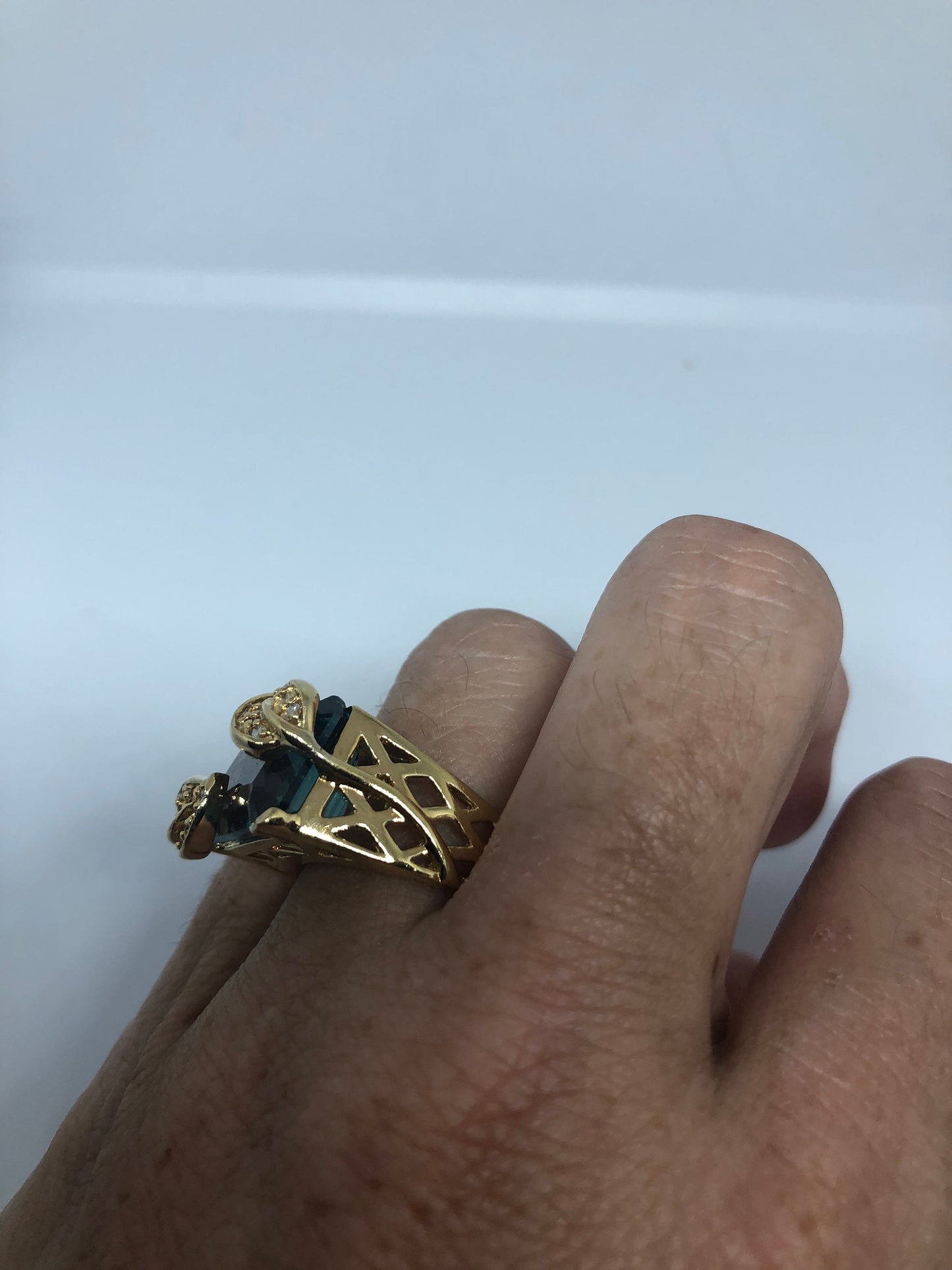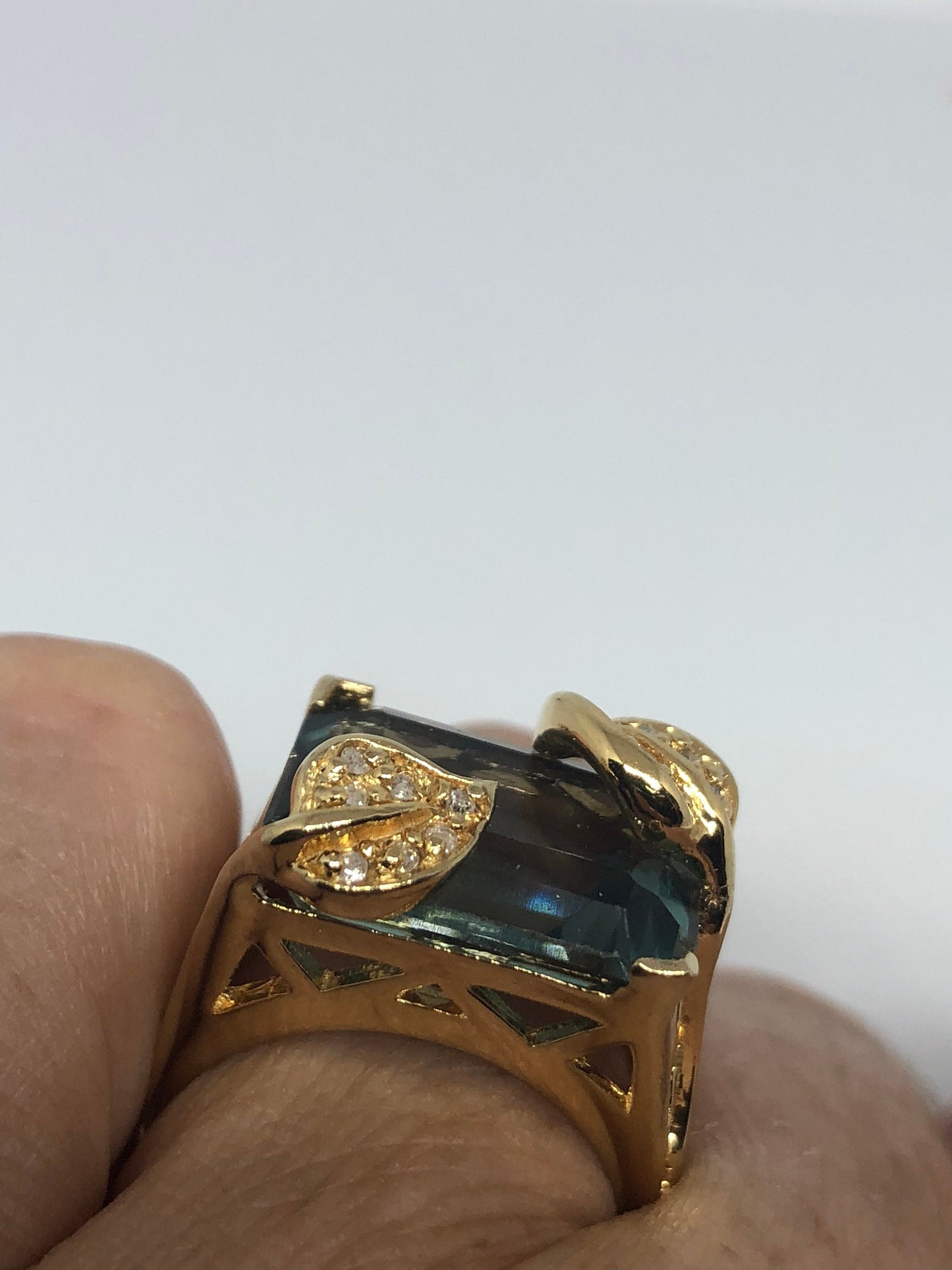 Vintage Handmade Deep Blue flourite Setting 925 Sterling Silver Gothic Ring