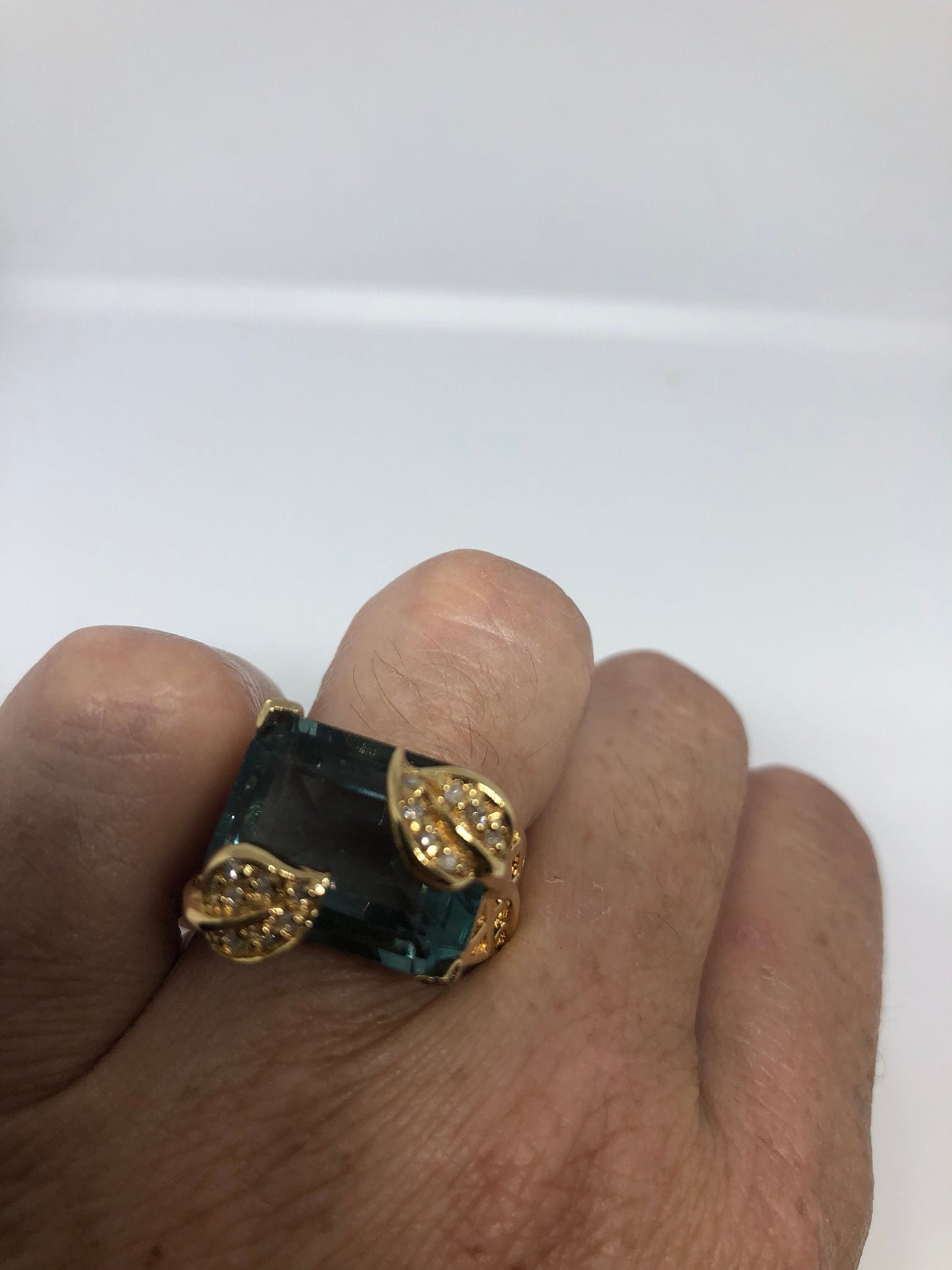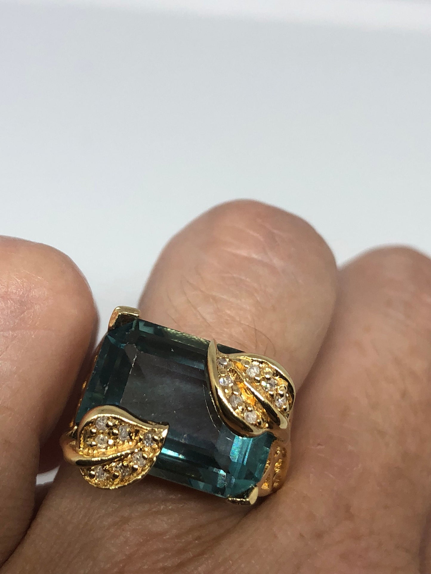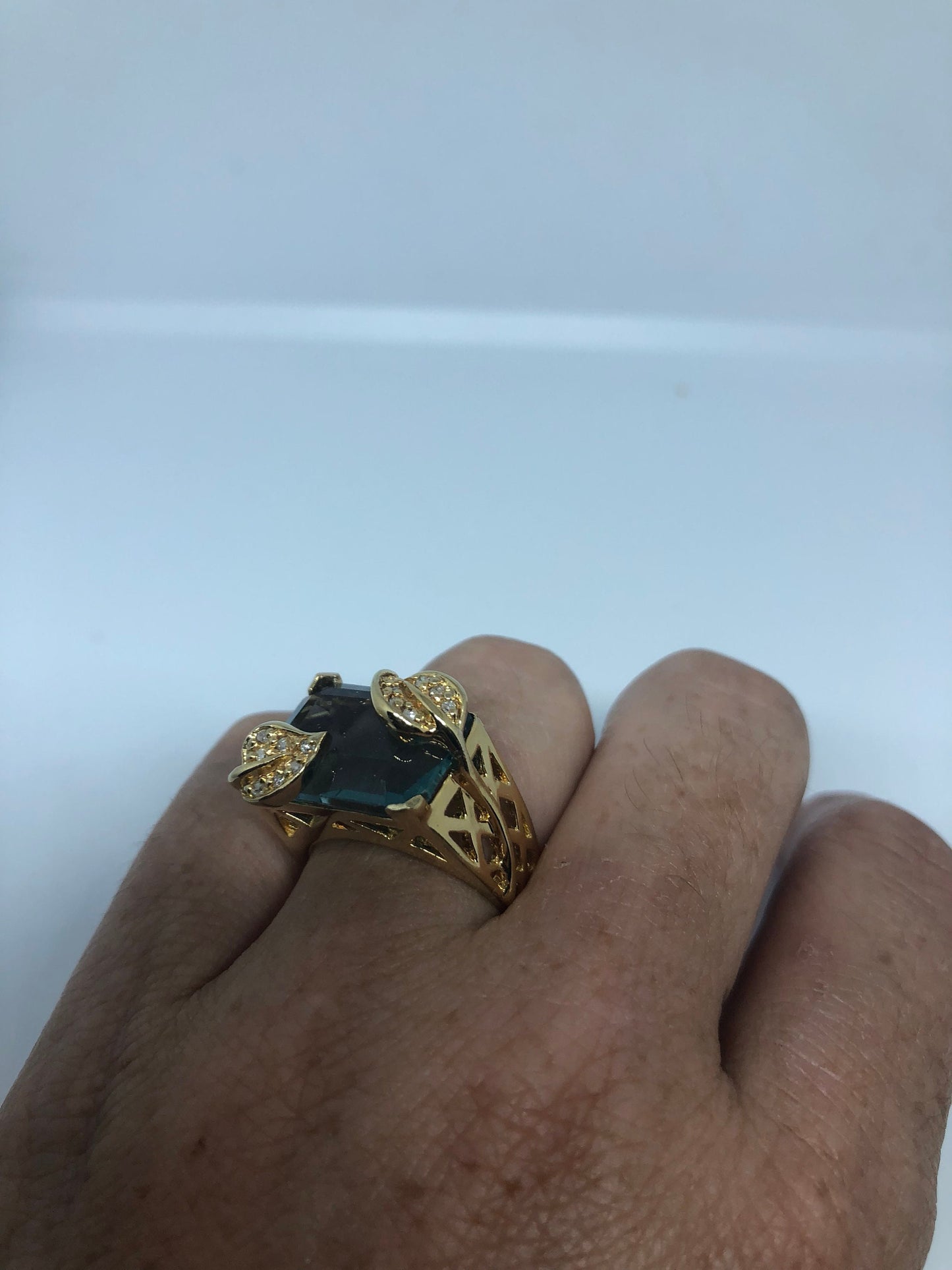 Vintage Handmade Deep Blue flourite Setting 925 Sterling Silver Gothic Ring