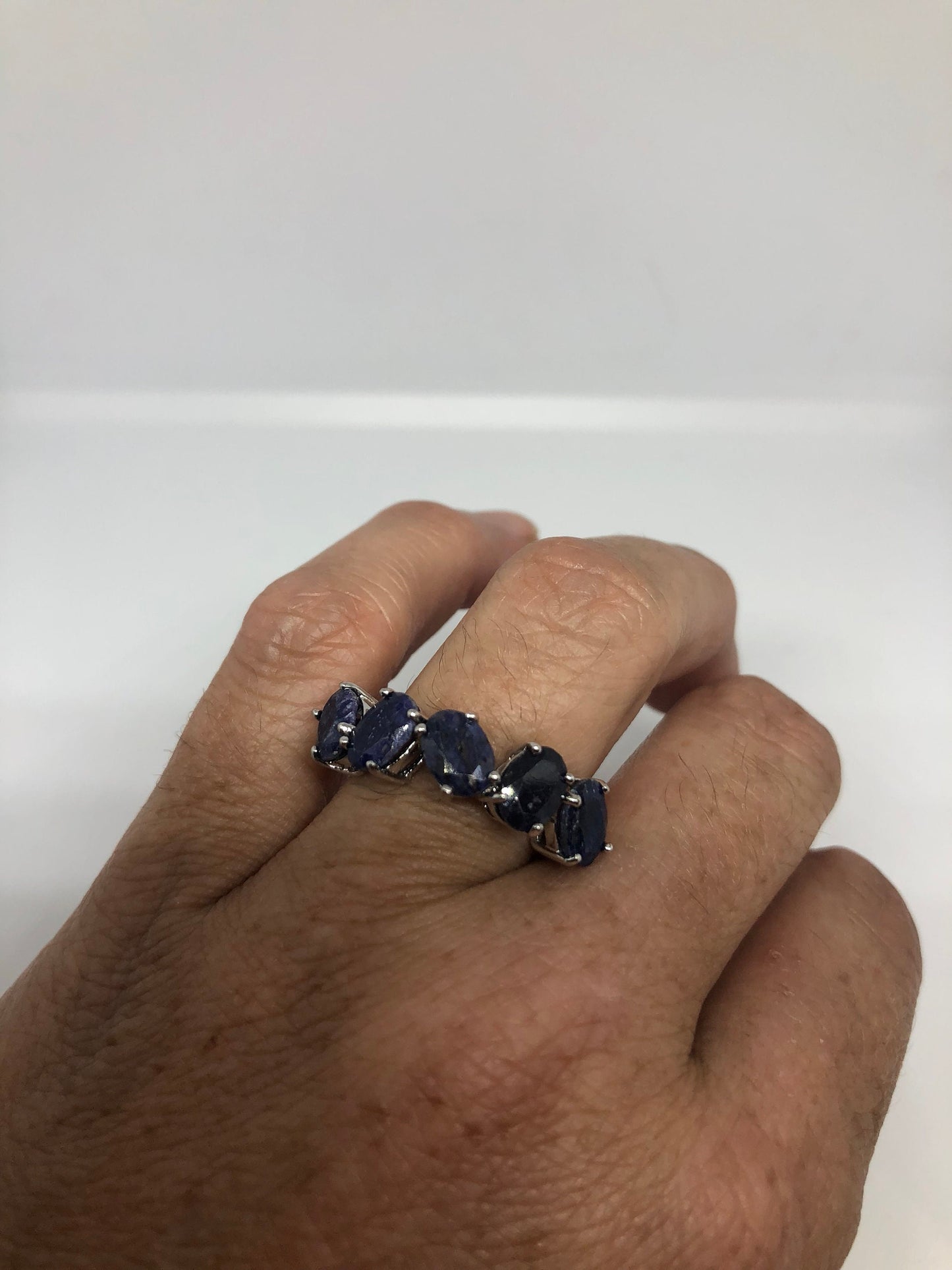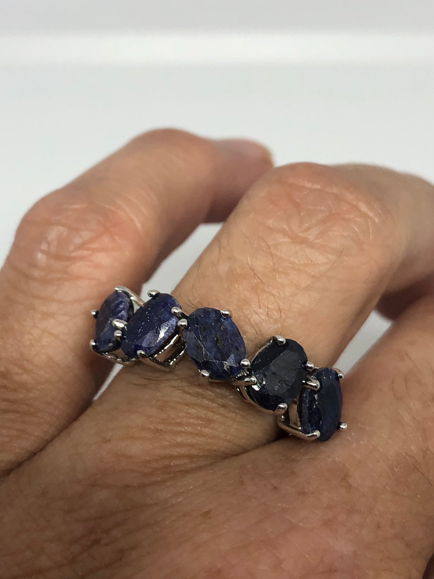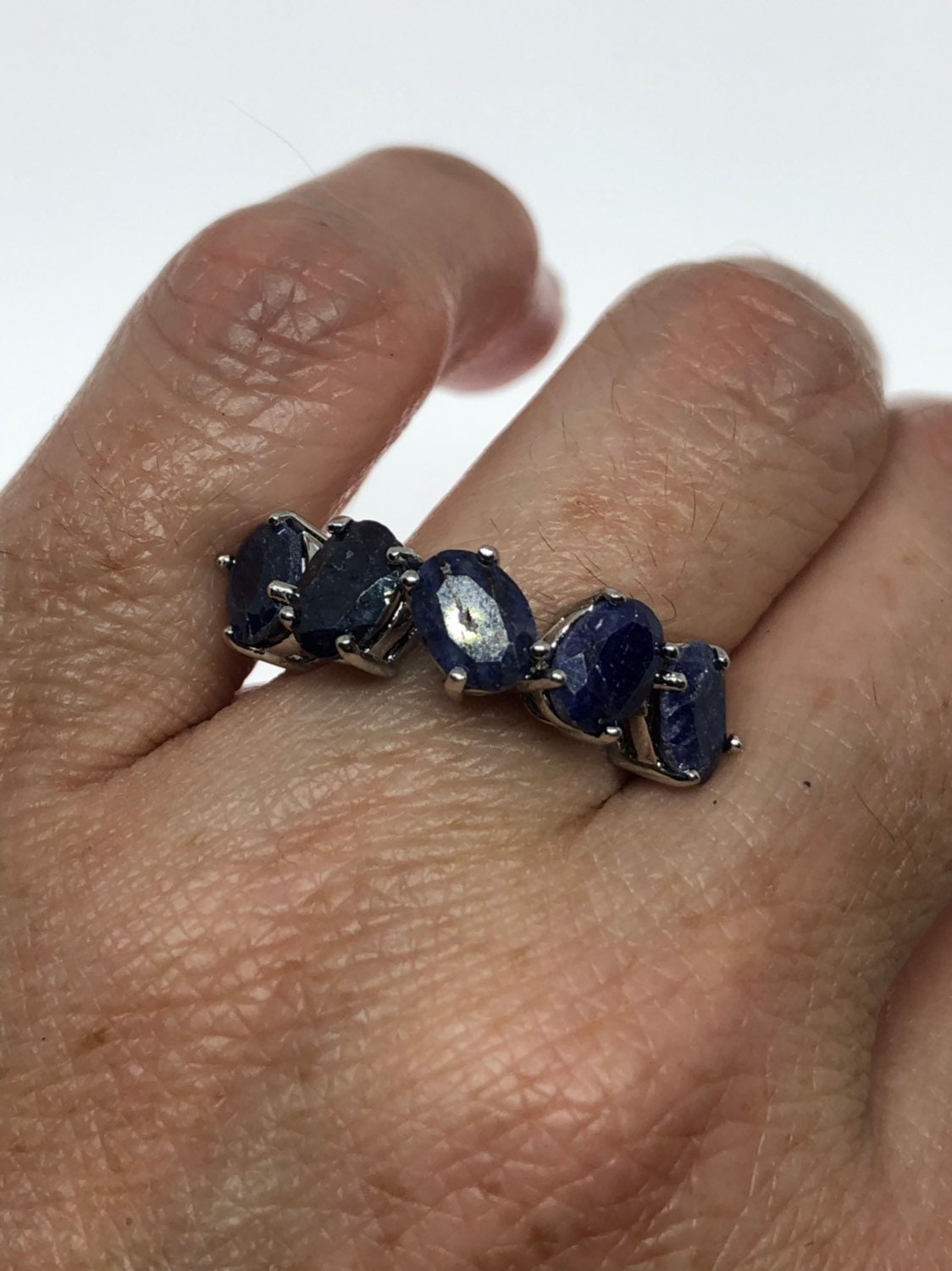 Vintage Handmade Deep Blue Sapphire Setting 925 Sterling Silver Gothic Ring