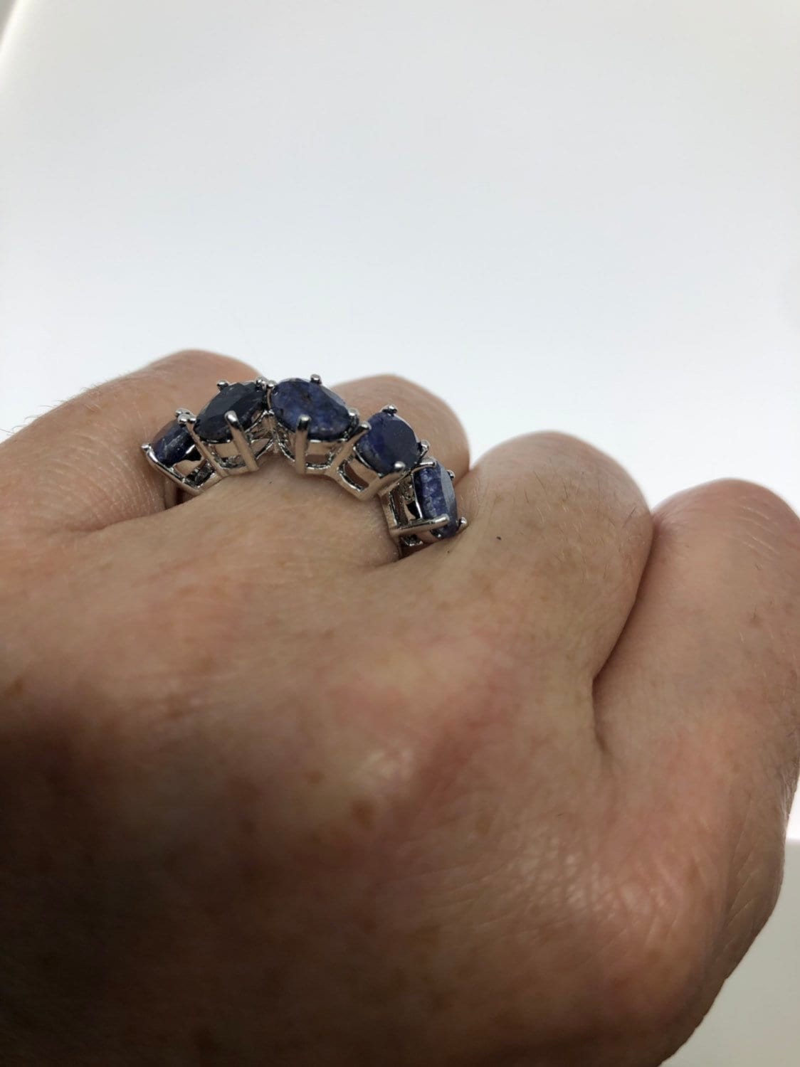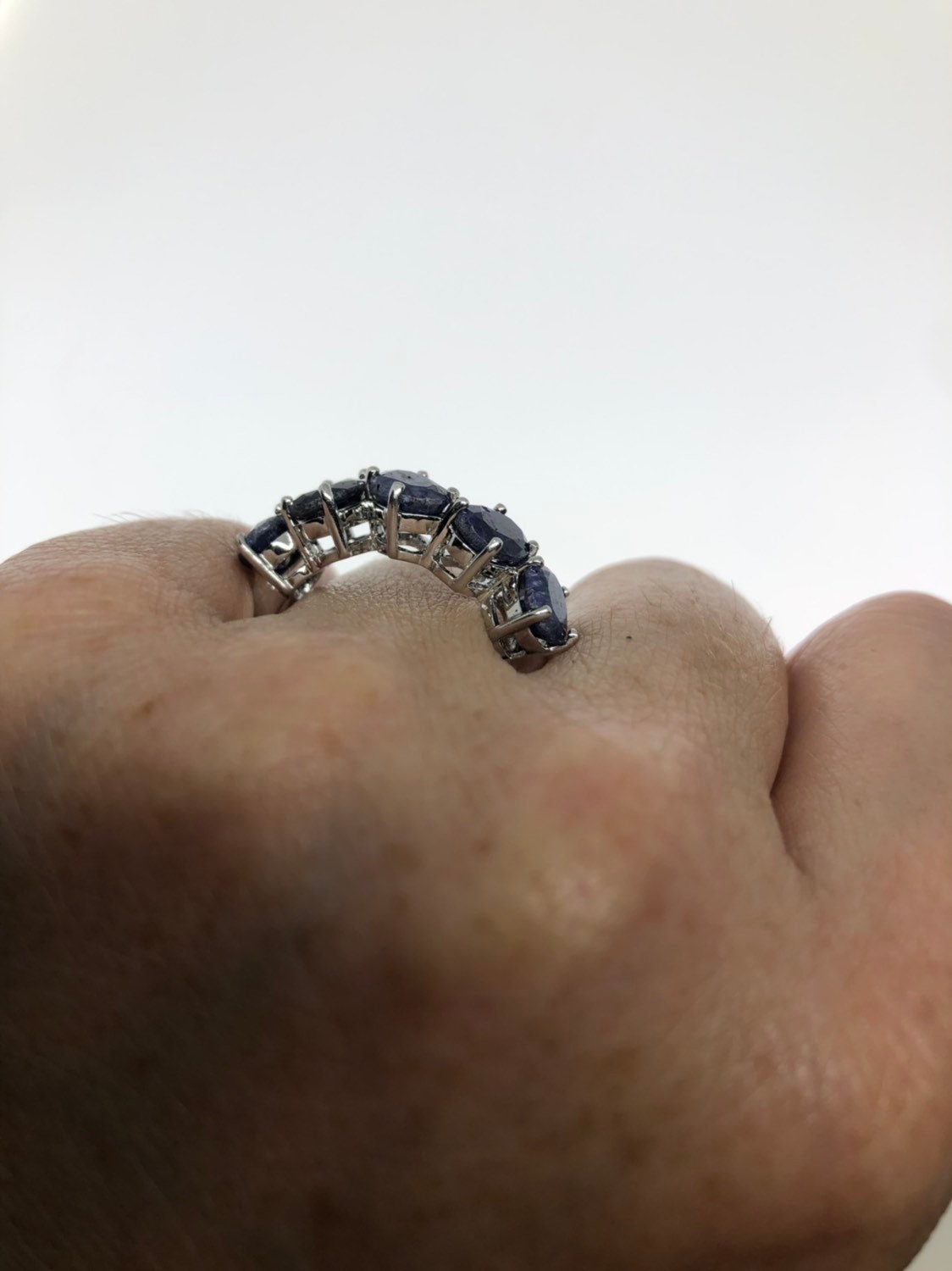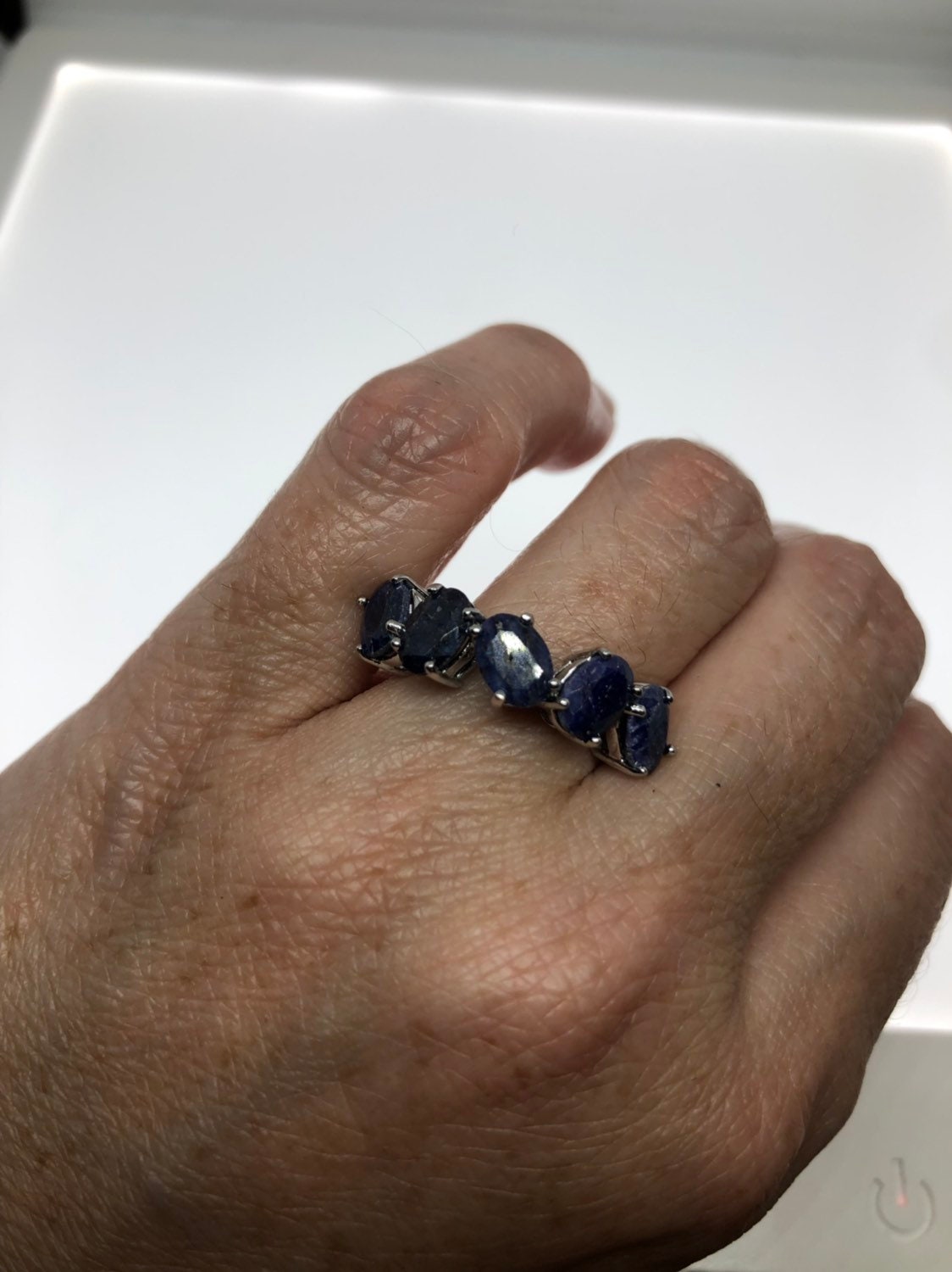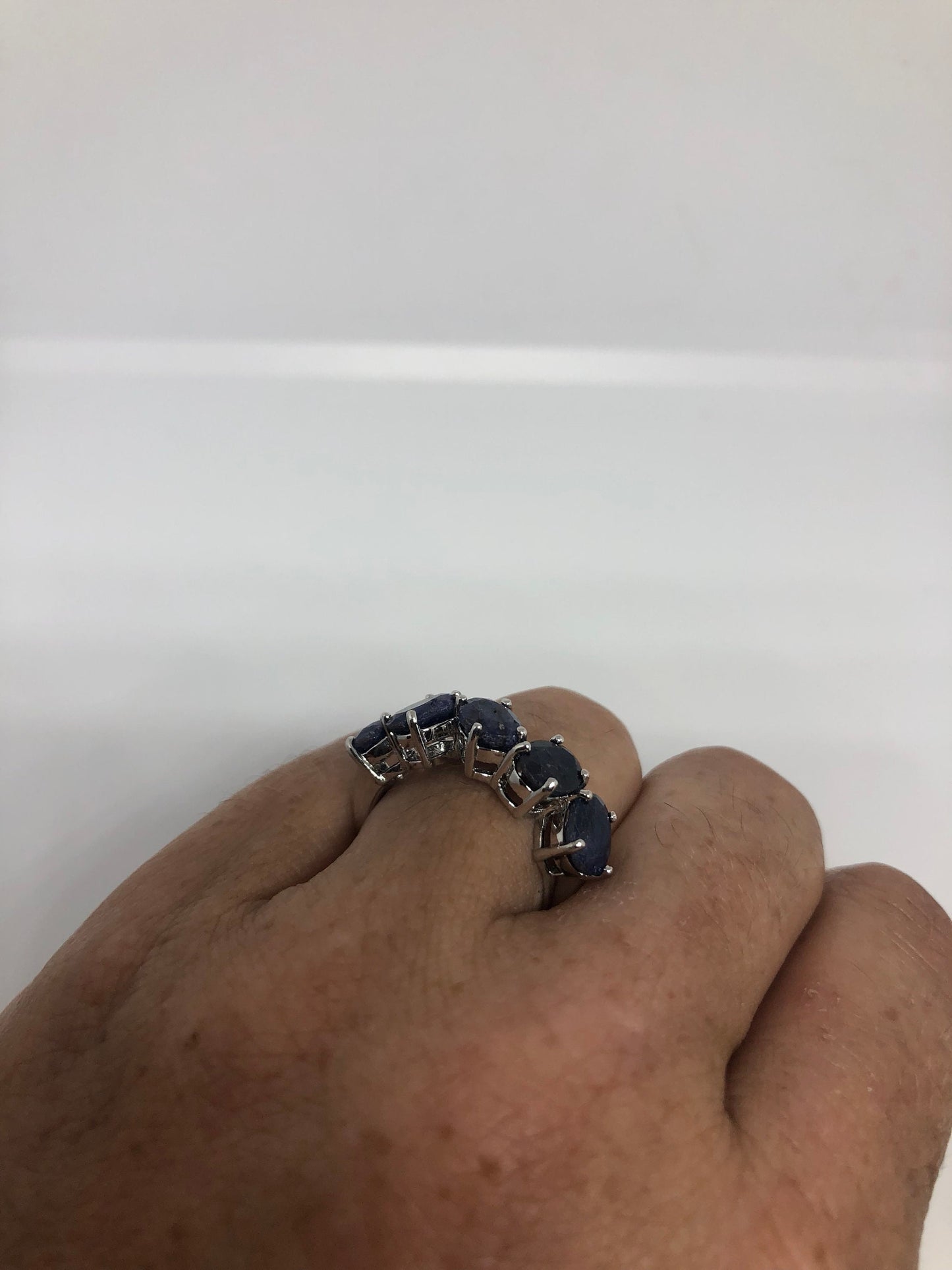Vintage Handmade Deep Blue Sapphire Setting 925 Sterling Silver Gothic Ring