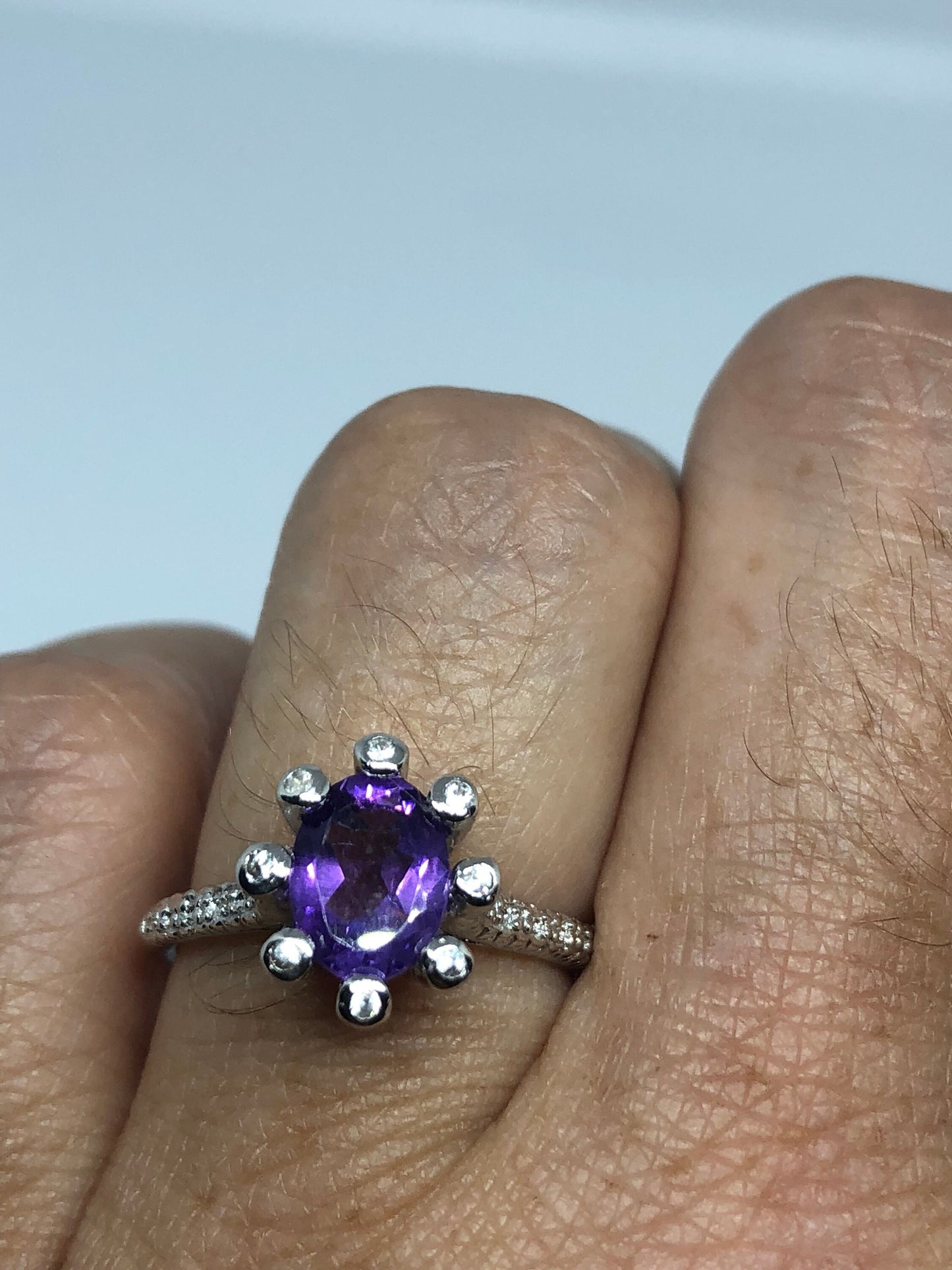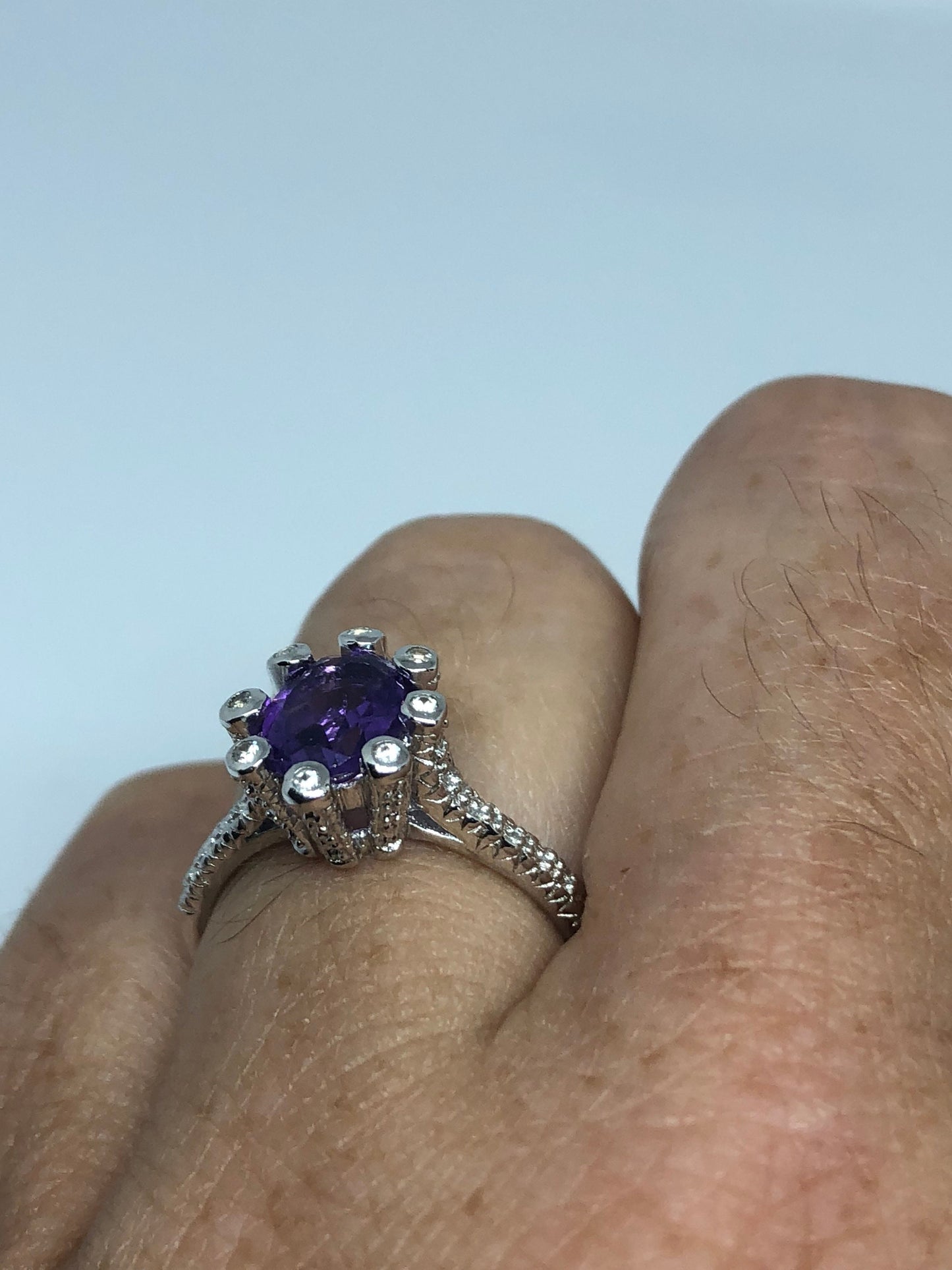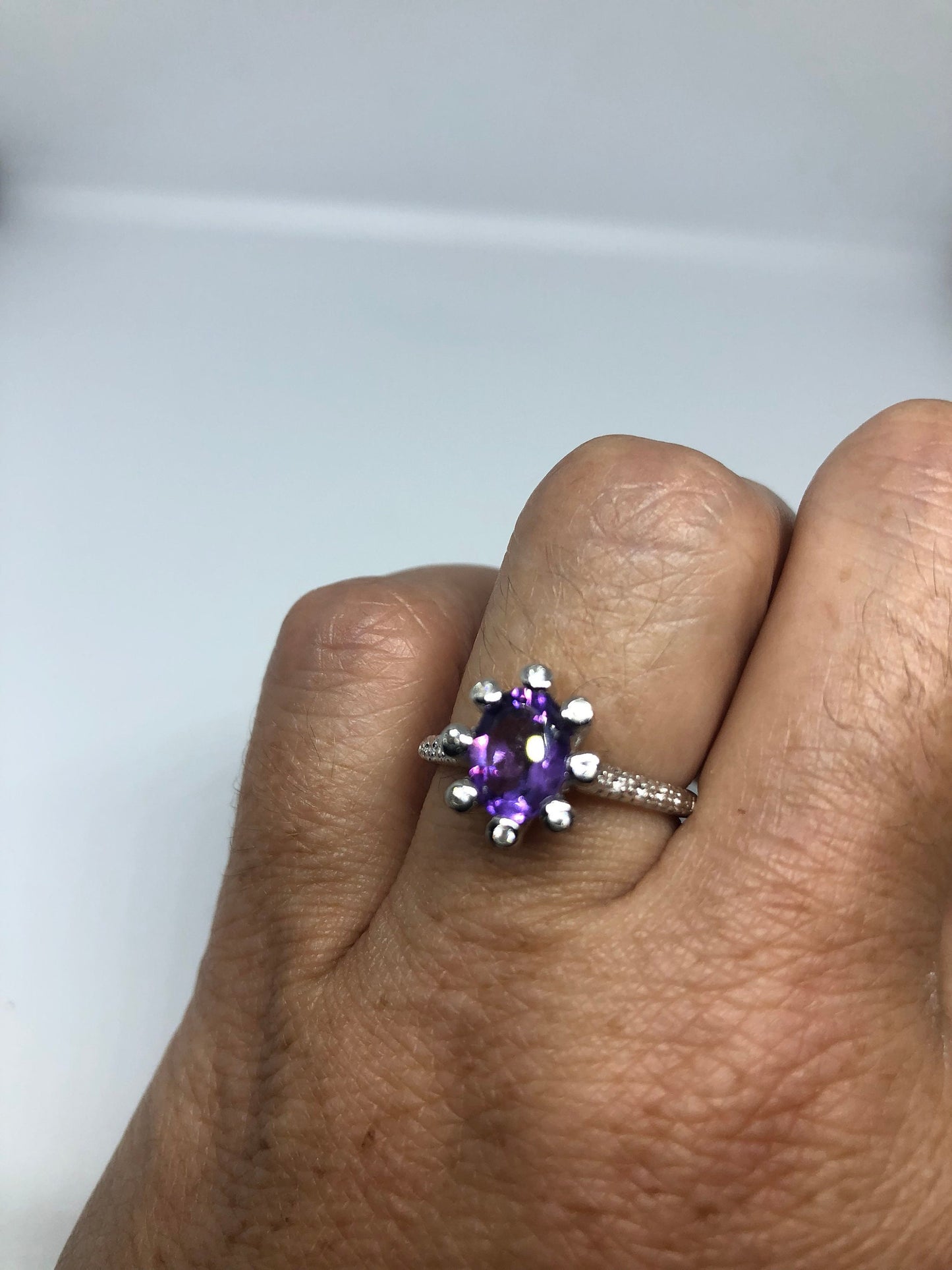 Vintage Handmade Deep Purple Genuine Amethyst Setting 925 Sterling Silver Gothic Ring