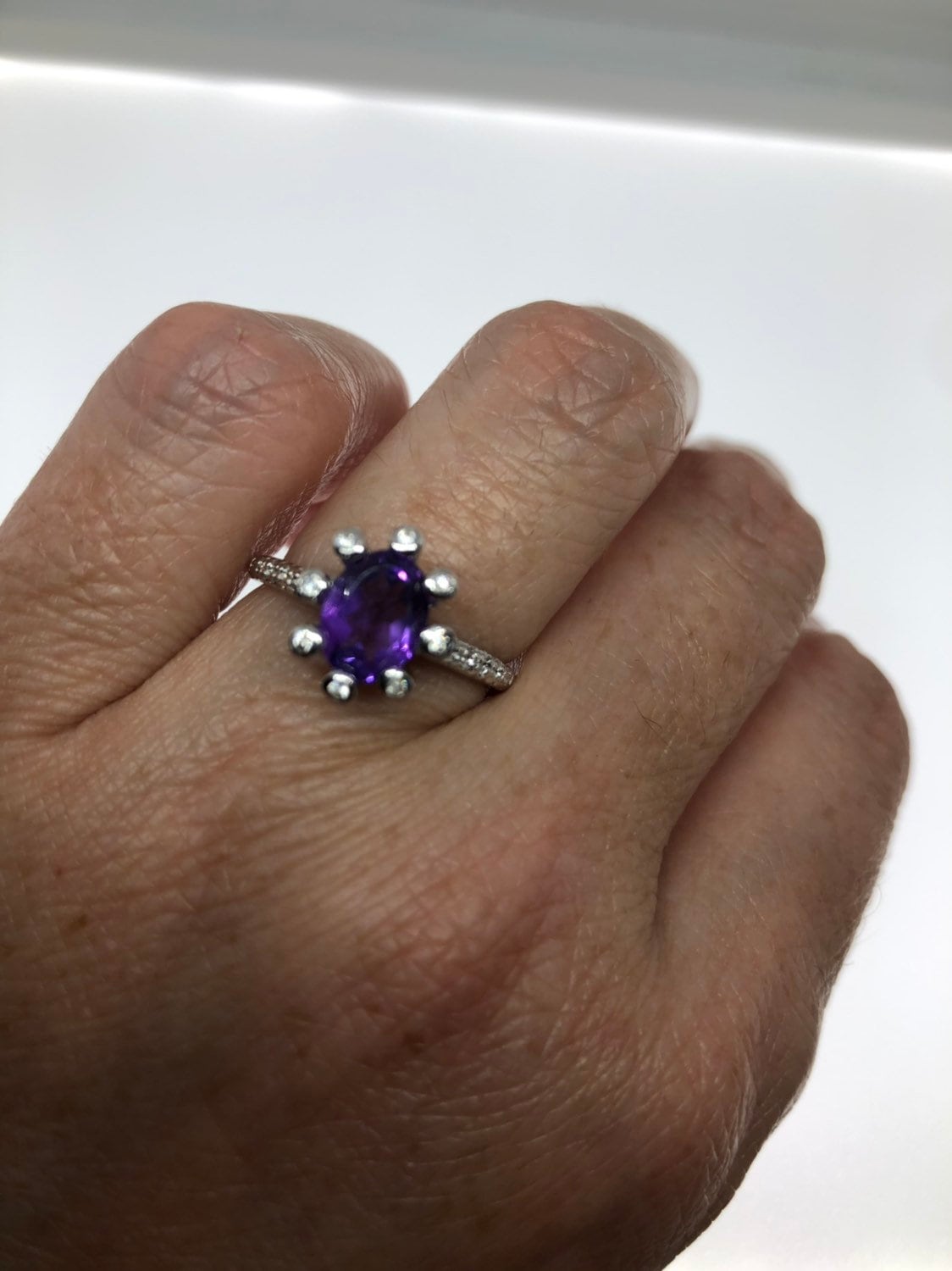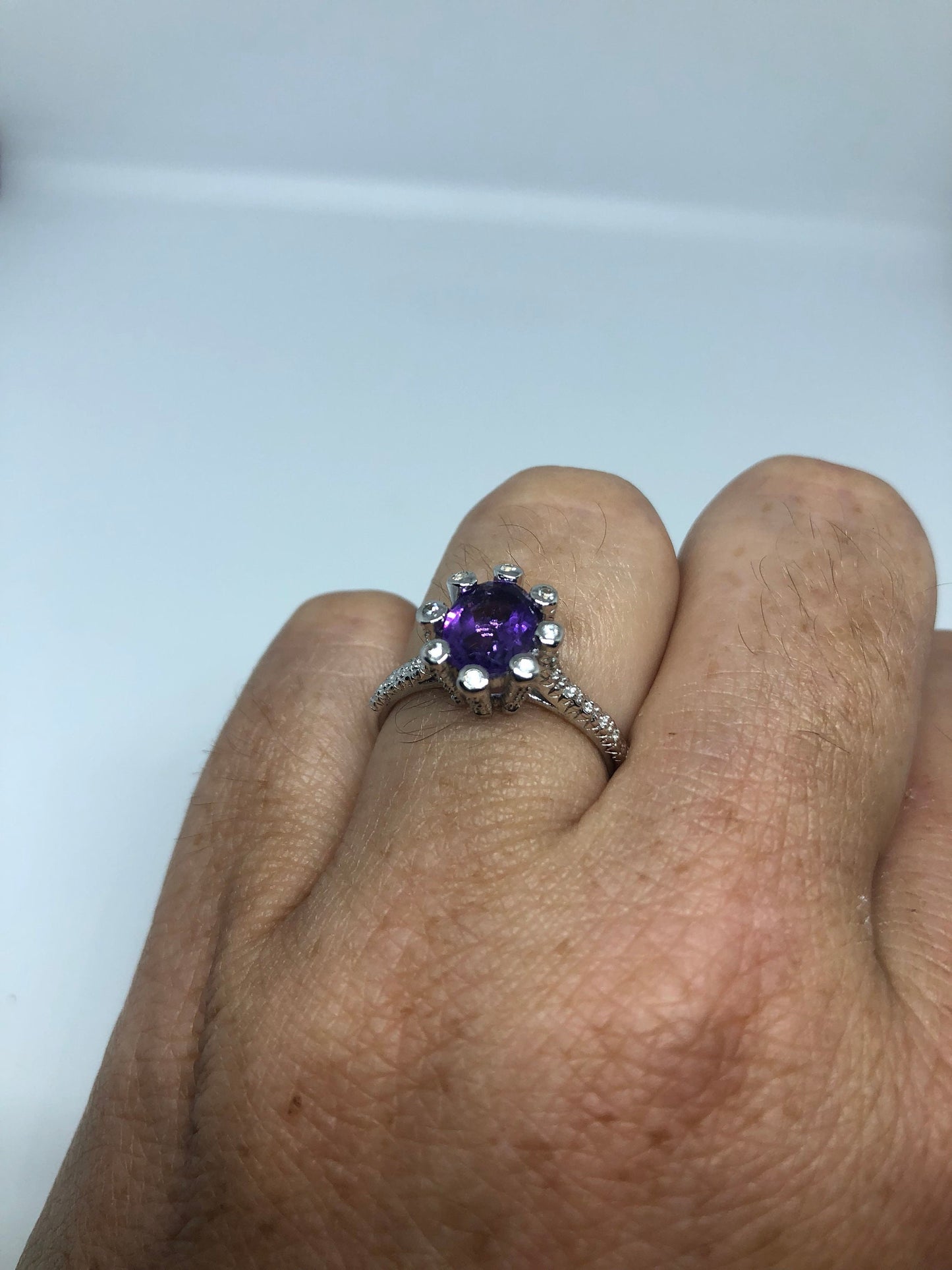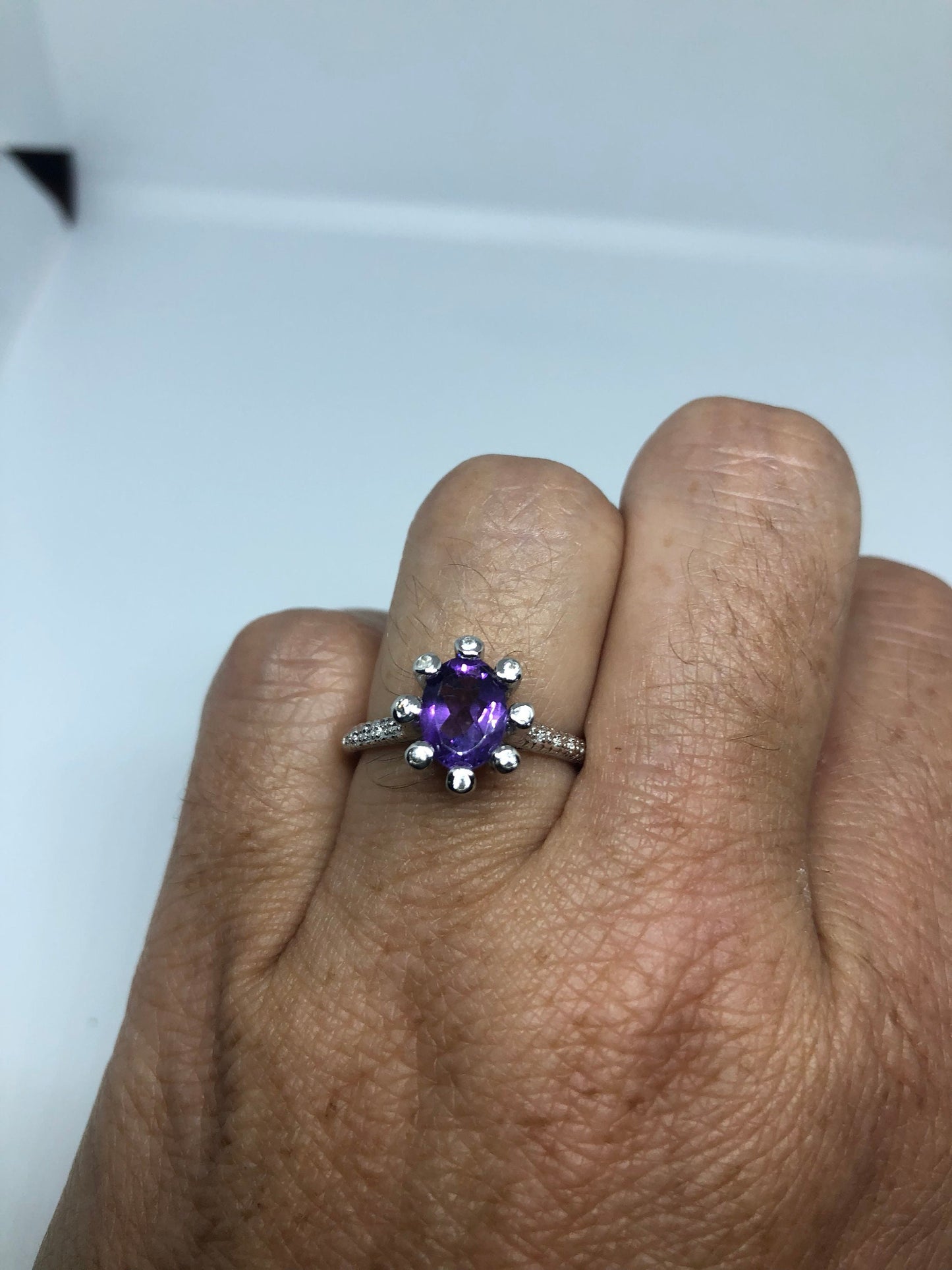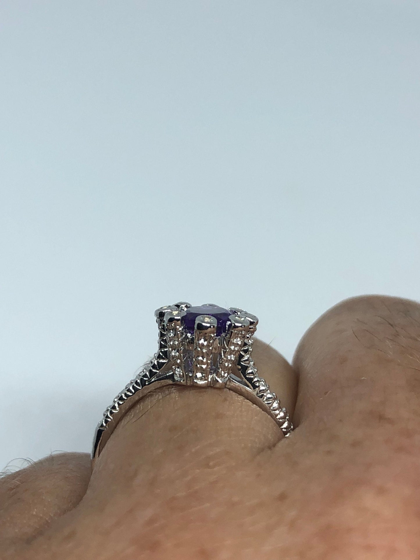 Vintage Handmade Deep Purple Genuine Amethyst Setting 925 Sterling Silver Gothic Ring