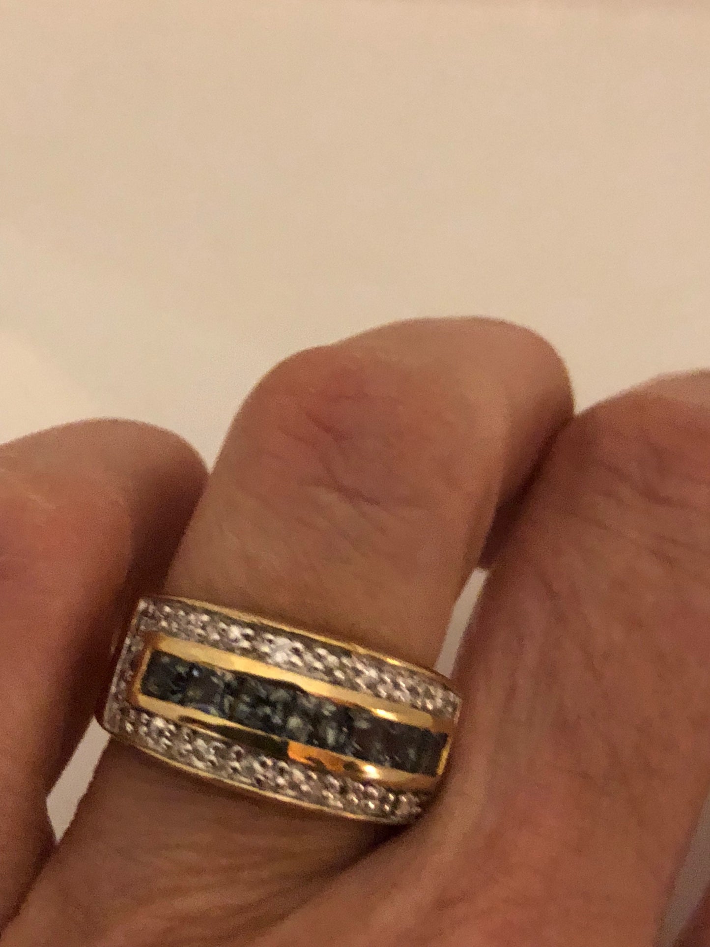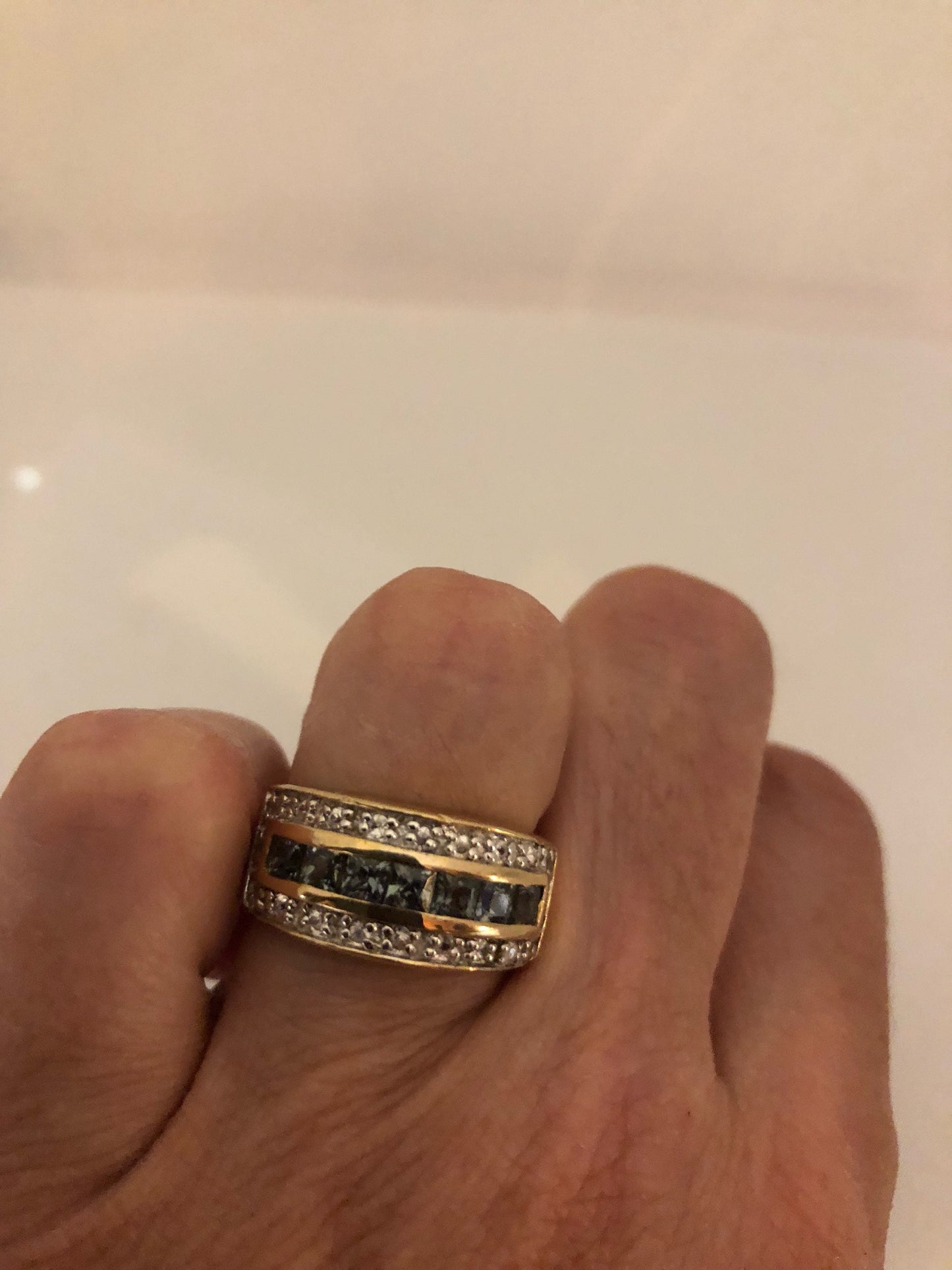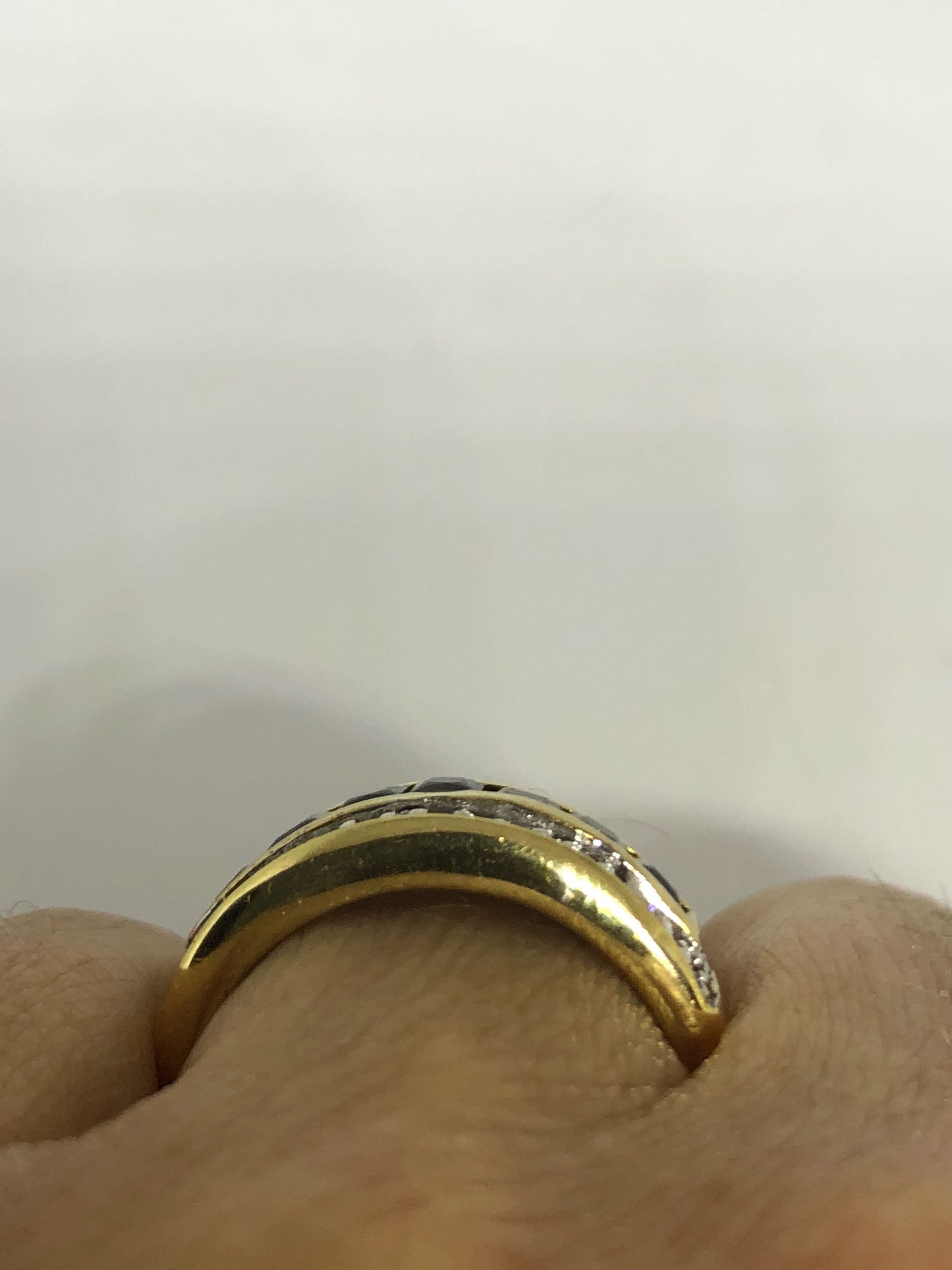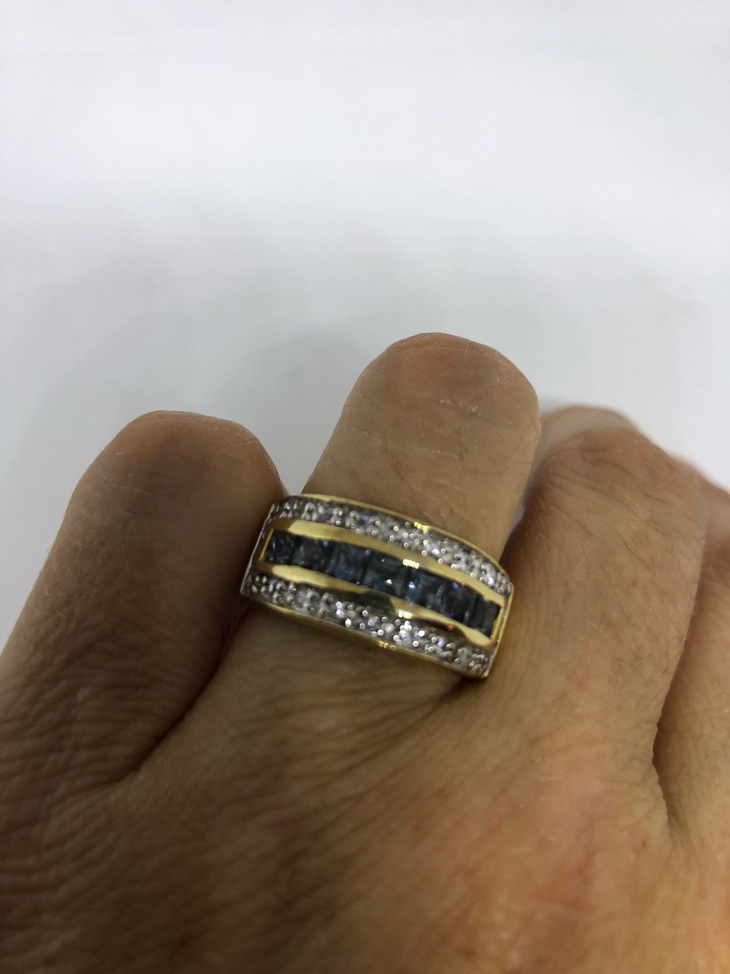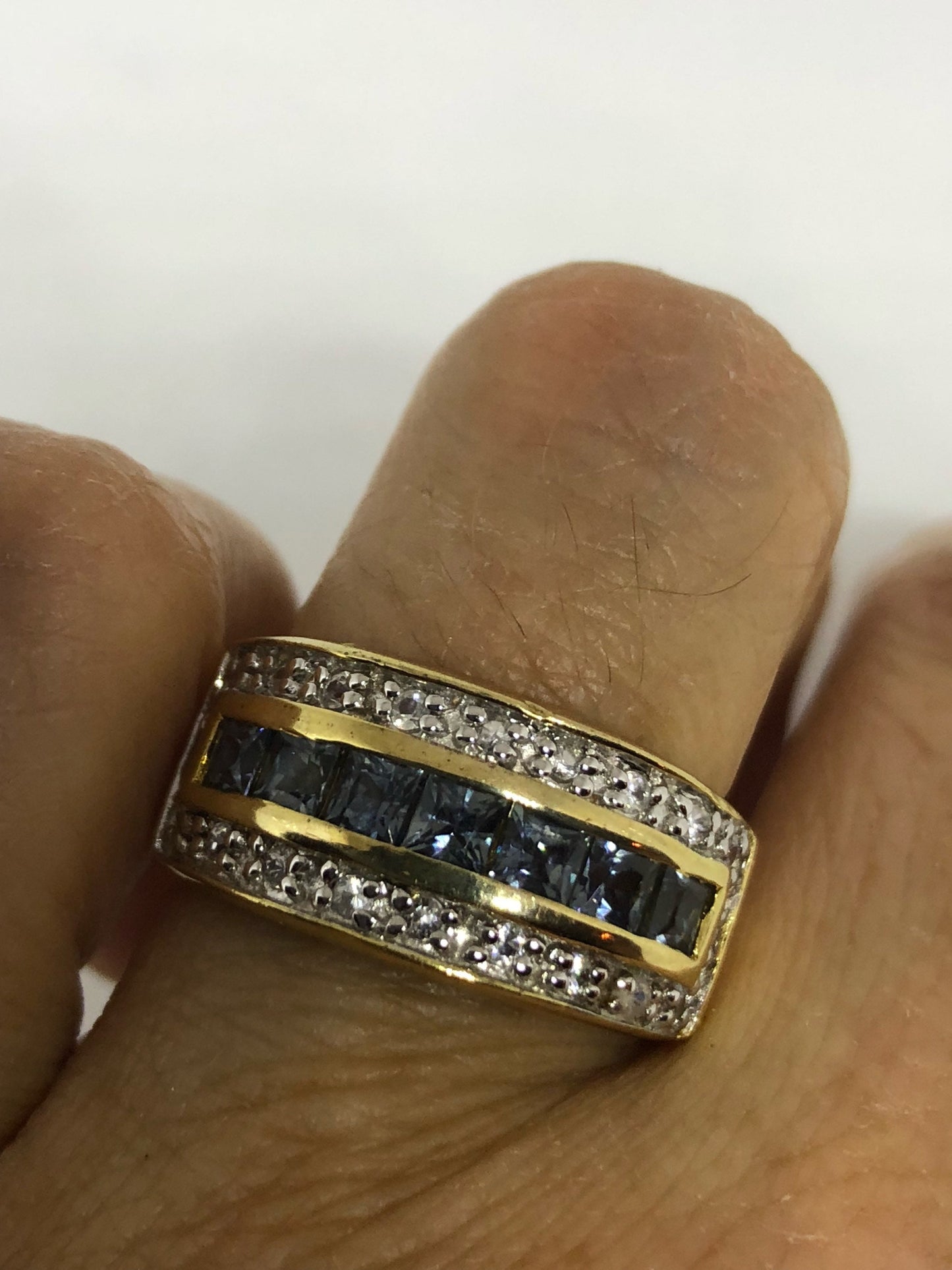 Vintage Handmade Genuine Dark Blue Flourite and White Sapphire 925 Sterling Silver Deco Ring