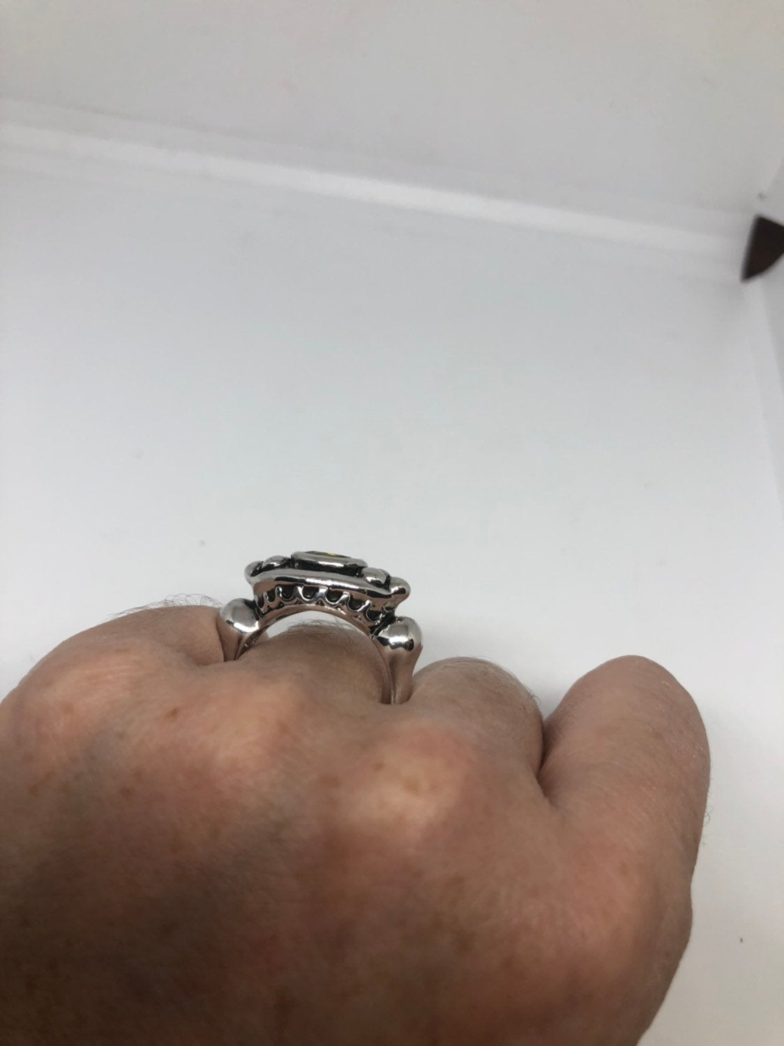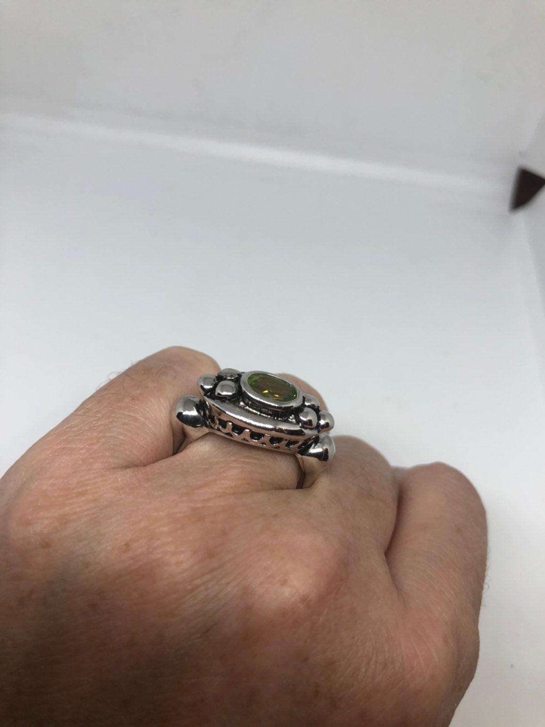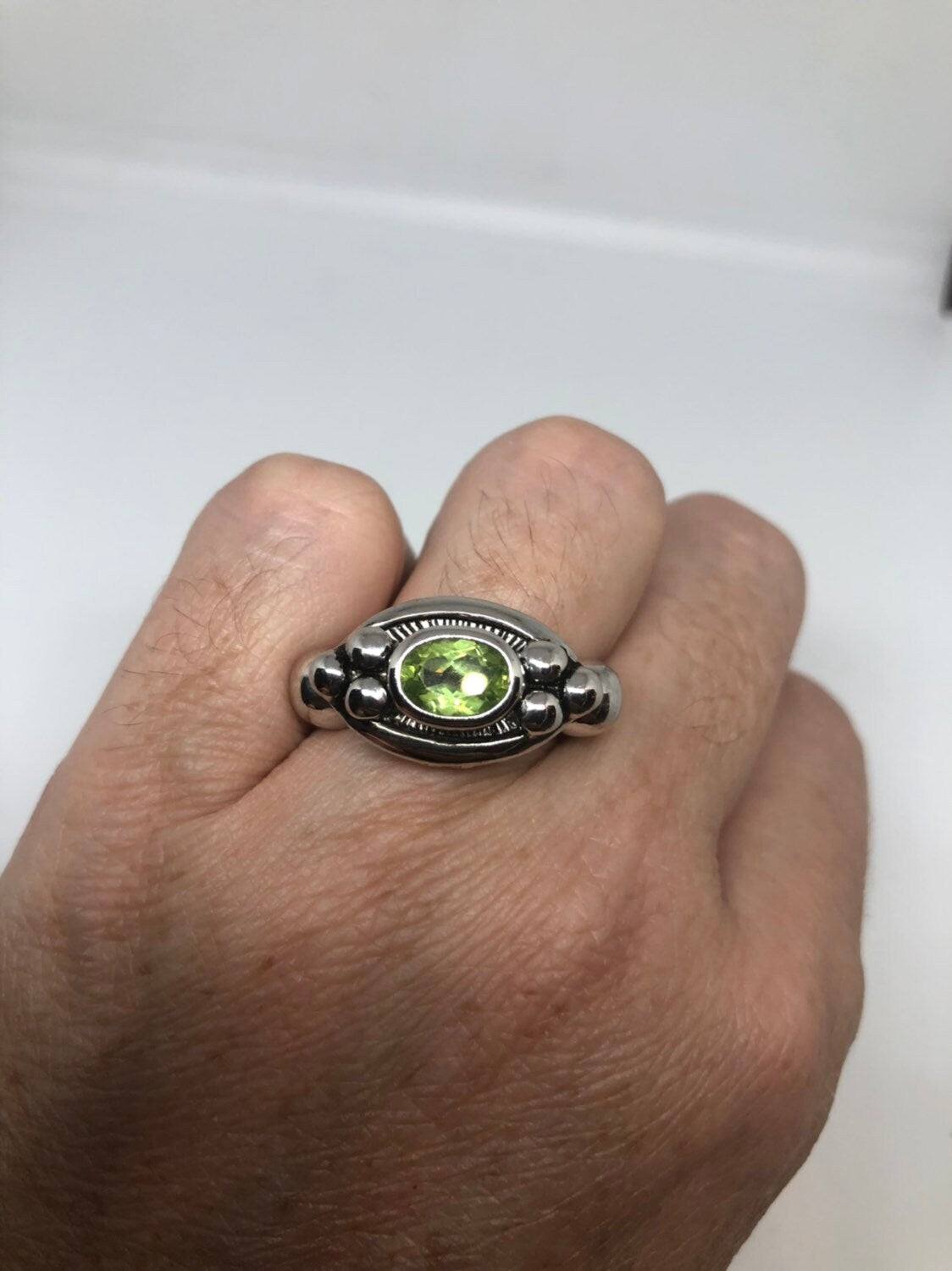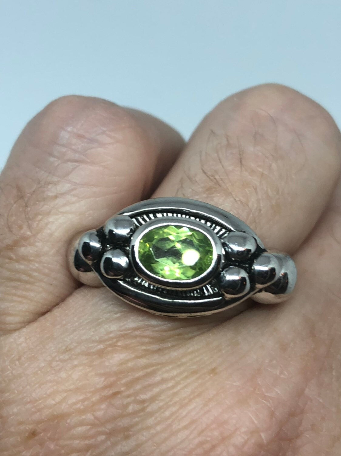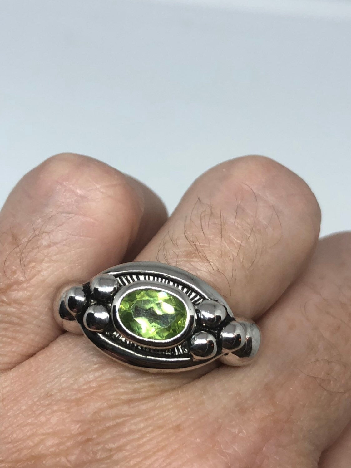 Vintage Handmade Genuine Green Peridot Filigree Setting 925 Sterling Silver Gothic Ring