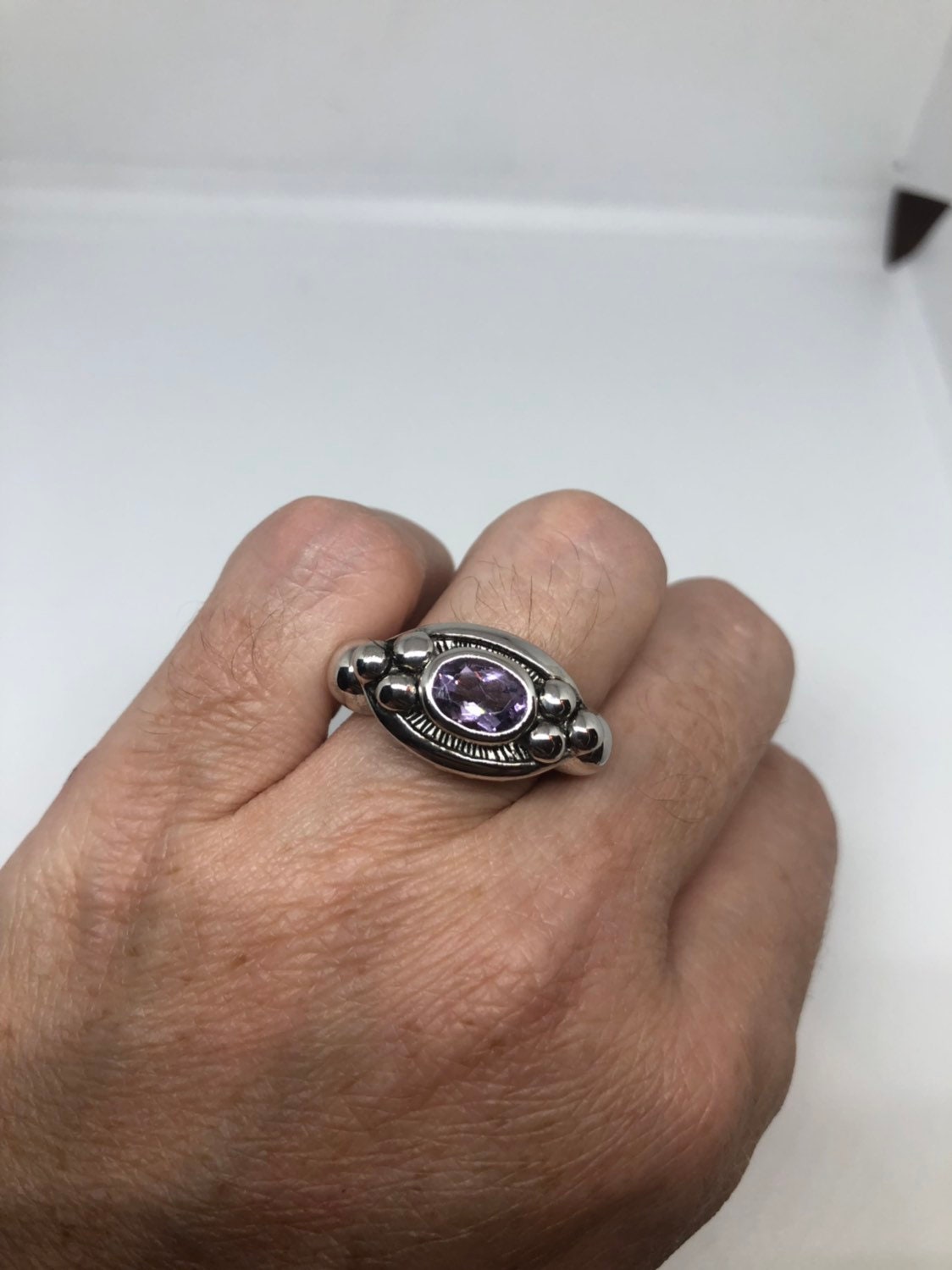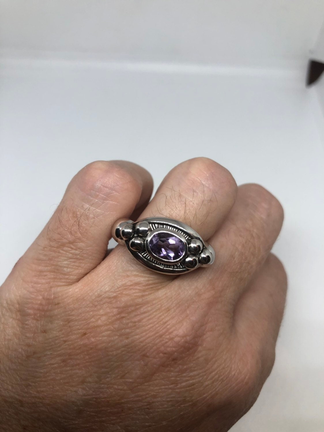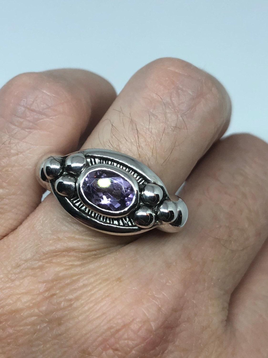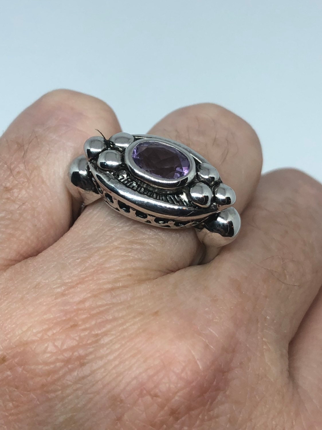 Vintage Handmade Genuine Purple Amethyst Filigree Setting 925 Sterling Silver Gothic can be resized