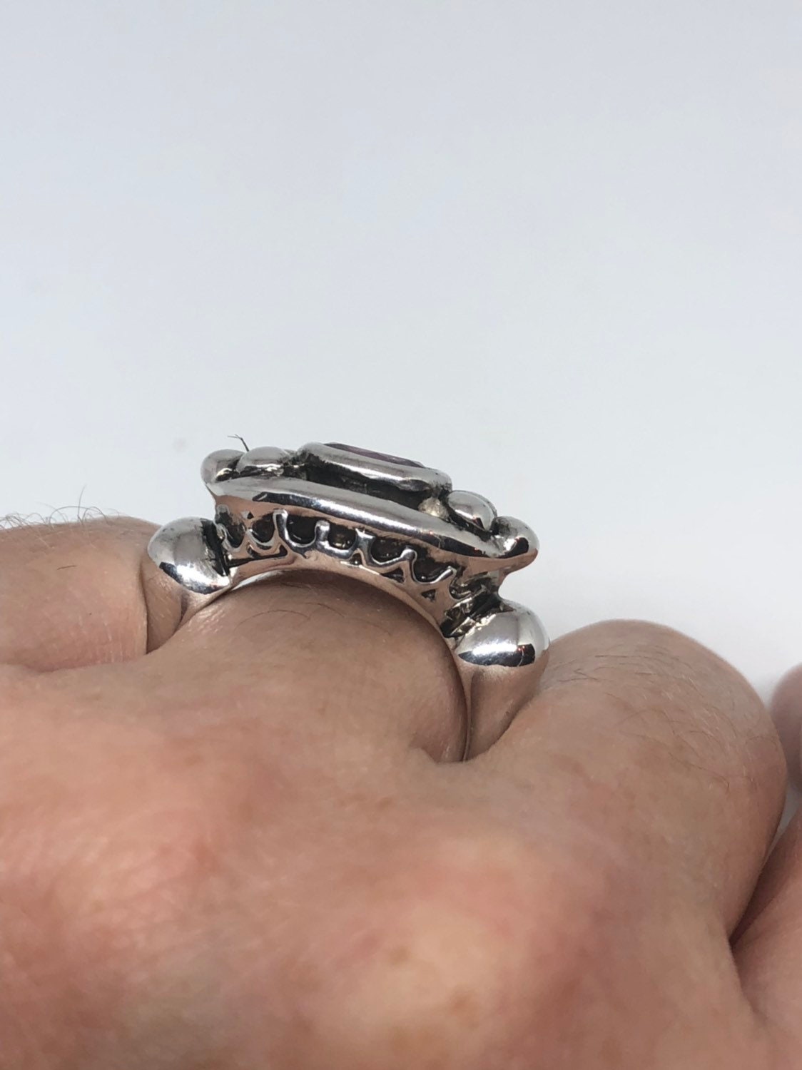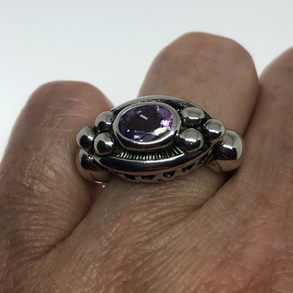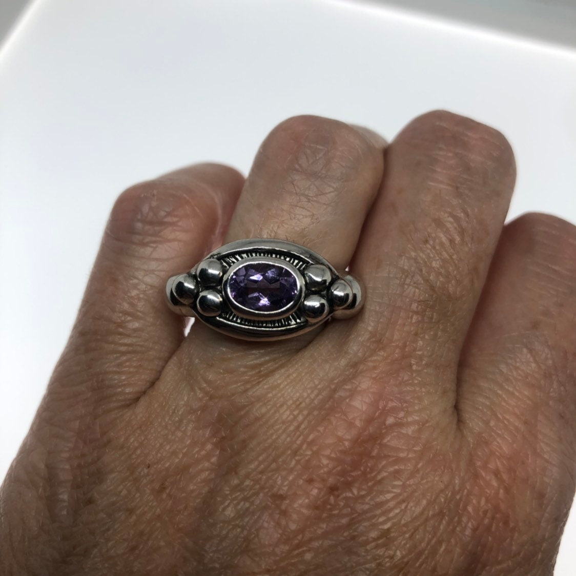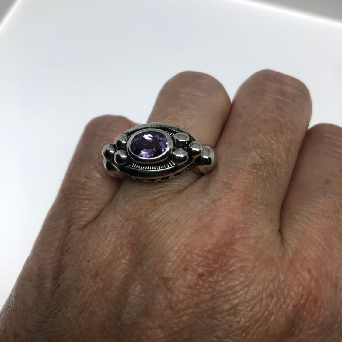 Vintage Handmade Genuine Purple Amethyst Filigree Setting 925 Sterling Silver Gothic can be resized