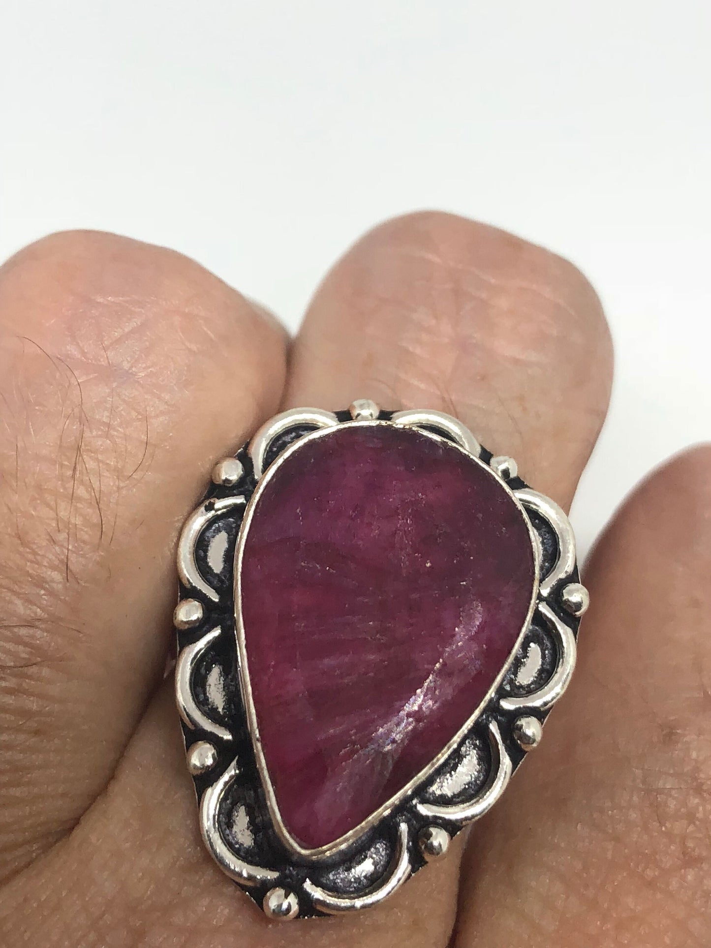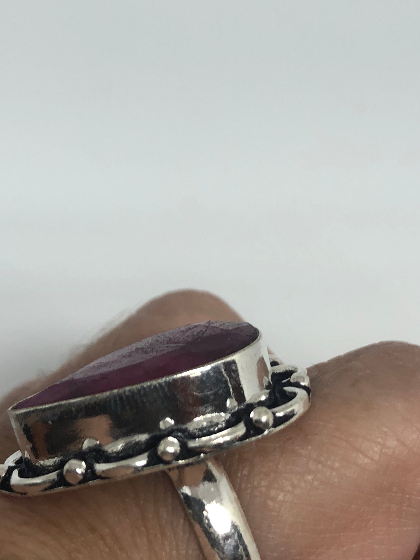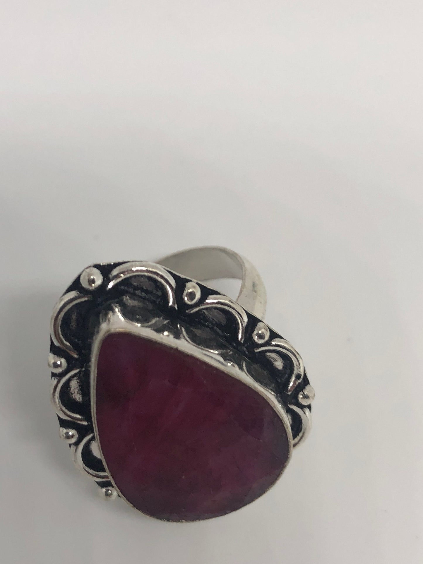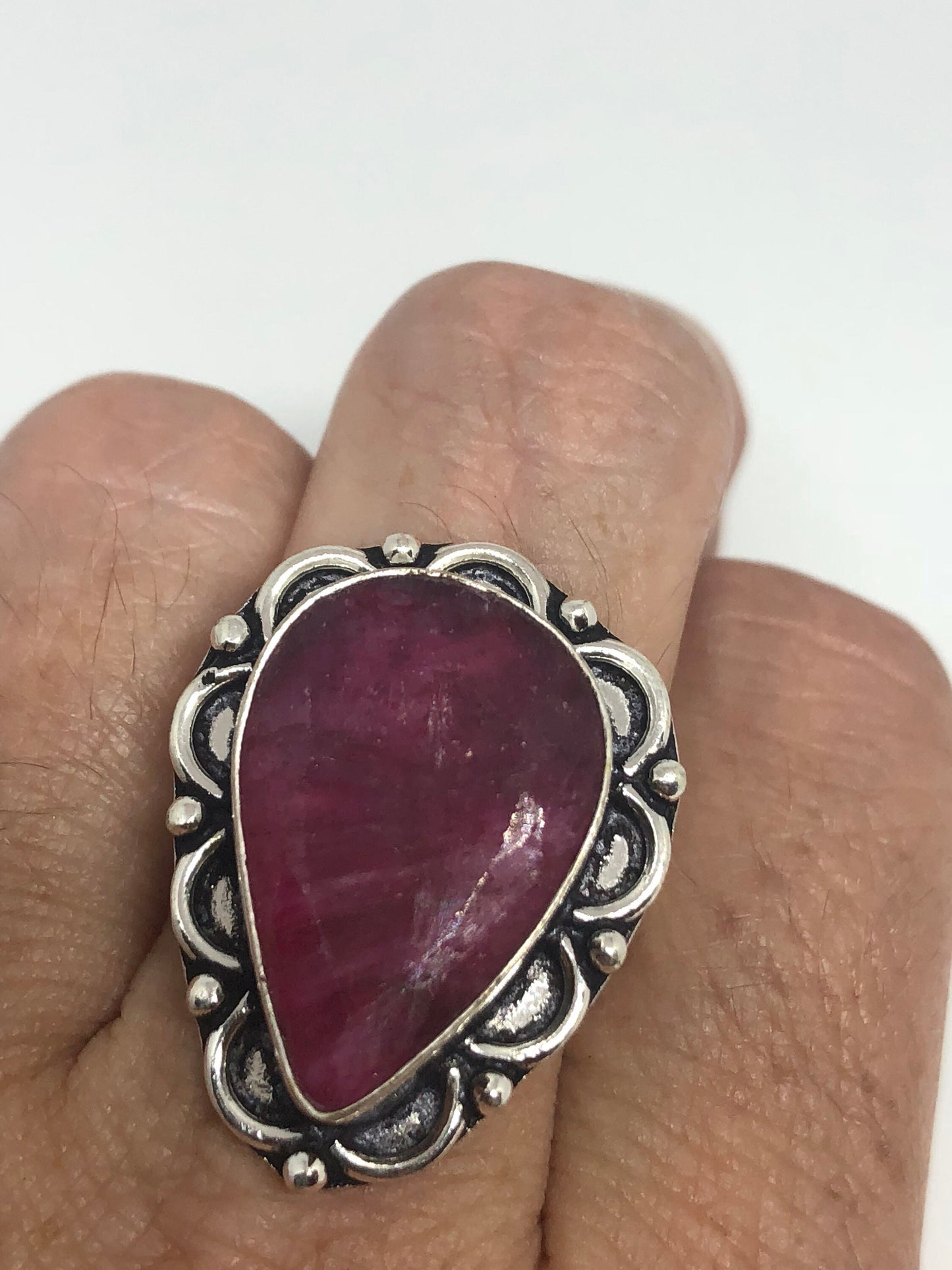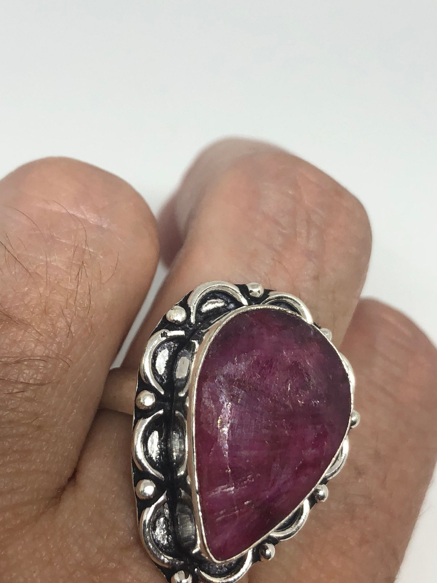 Vintage Handmade Raw Pink Ruby Silver Gothic Ring