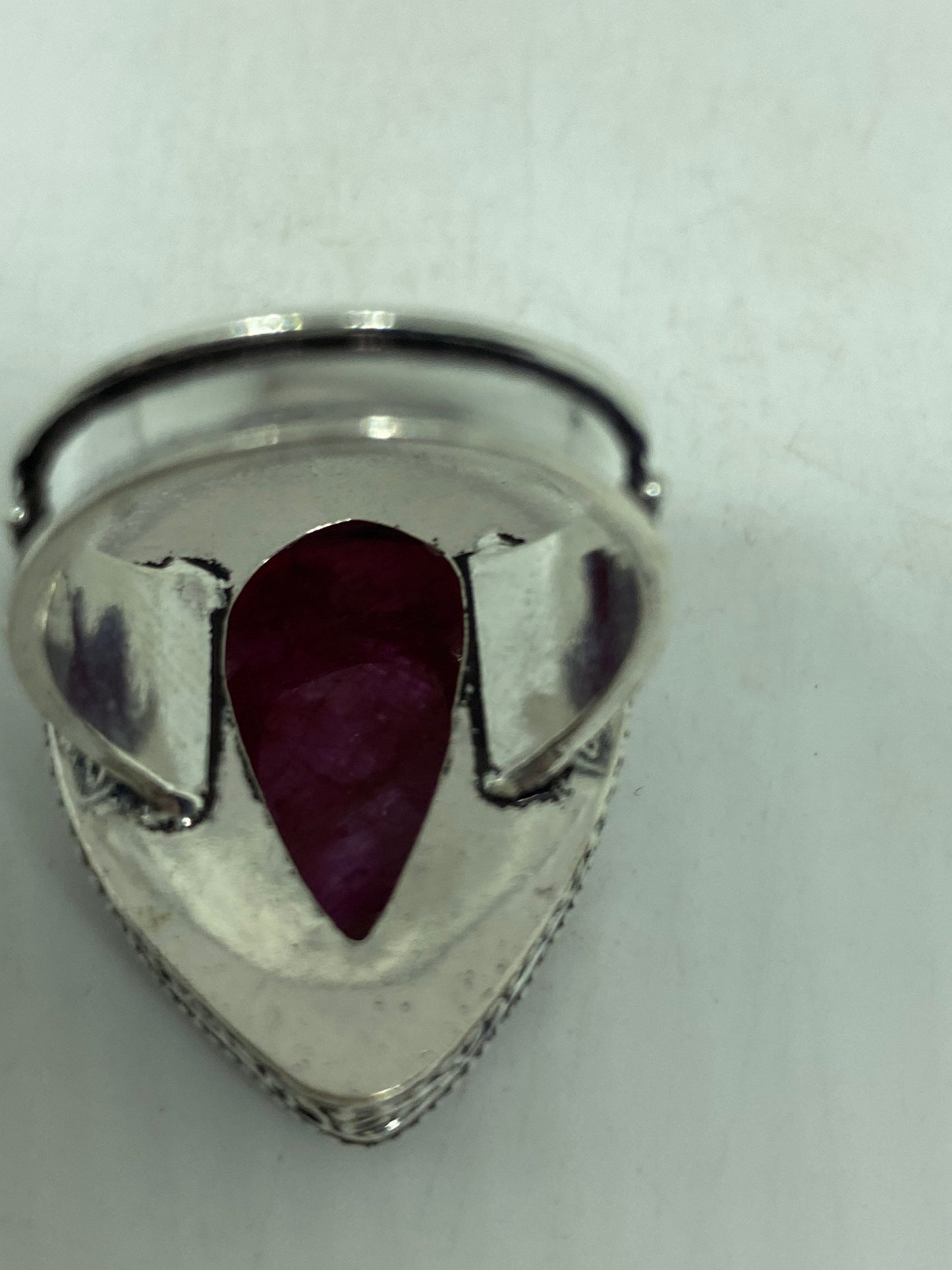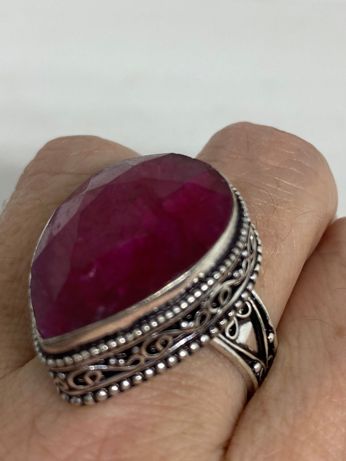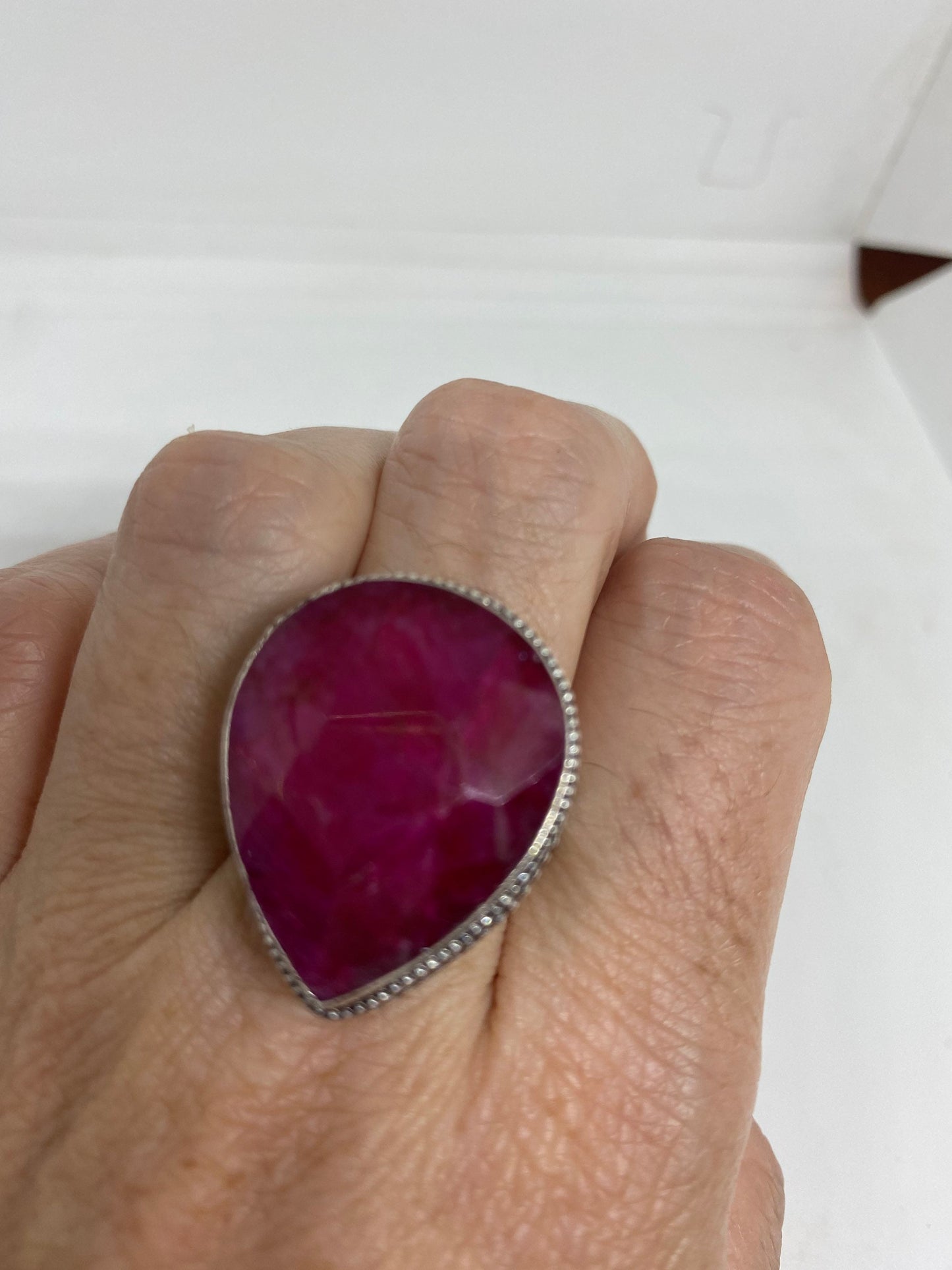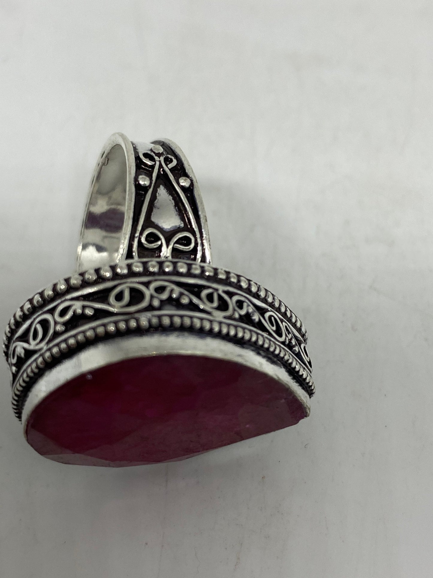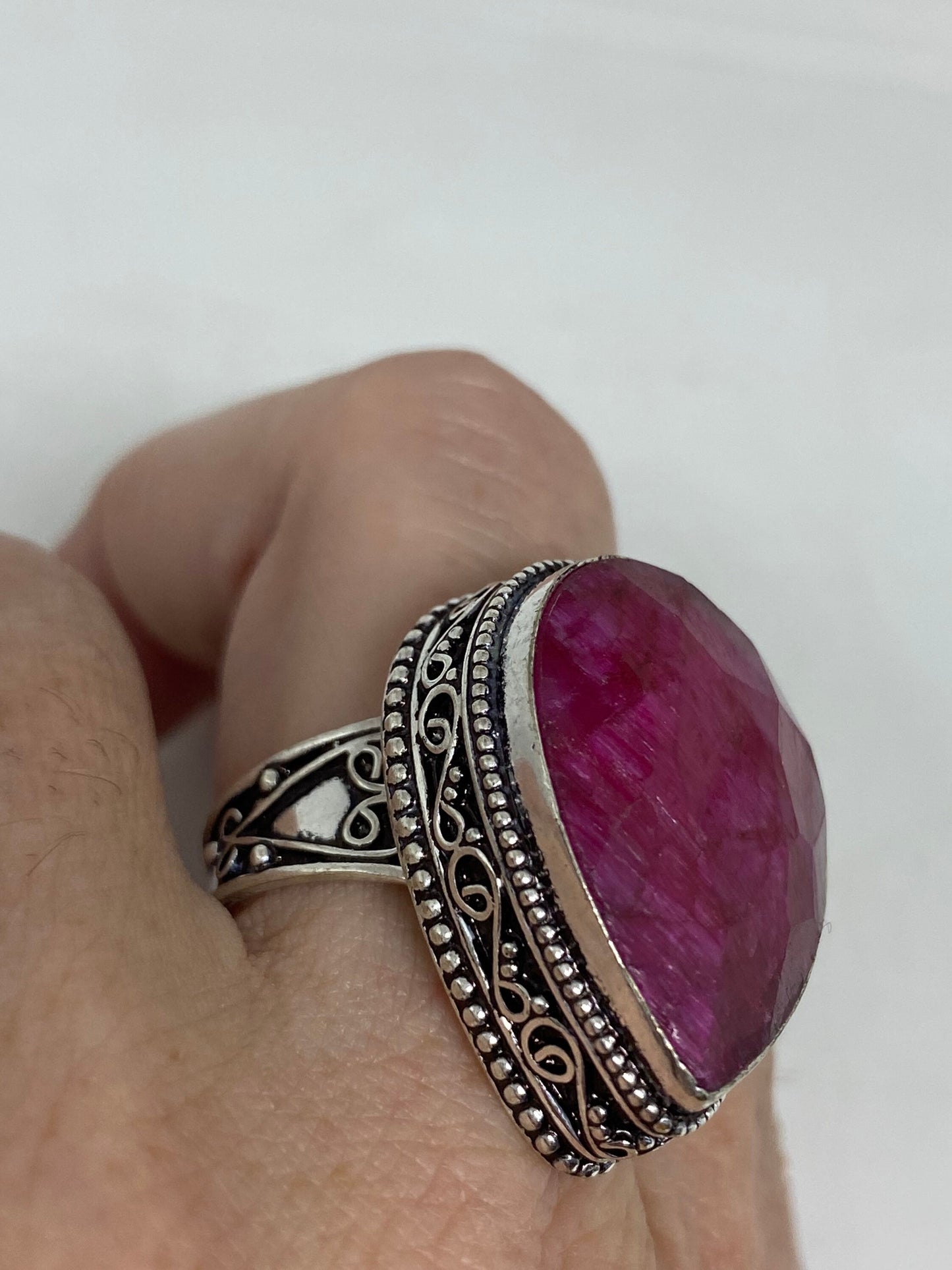 Vintage Handmade Raw Pink Ruby Silver Gothic Ring