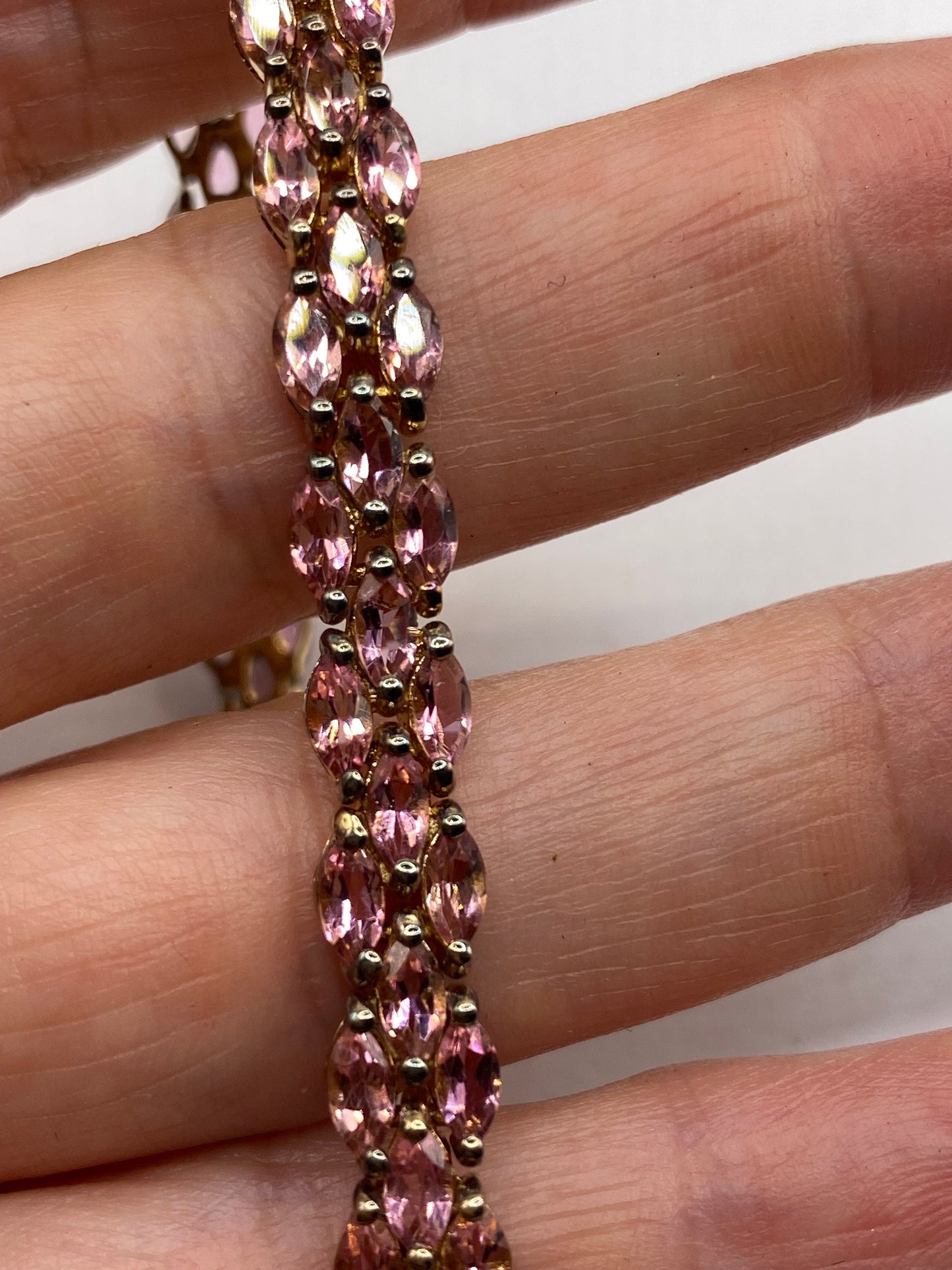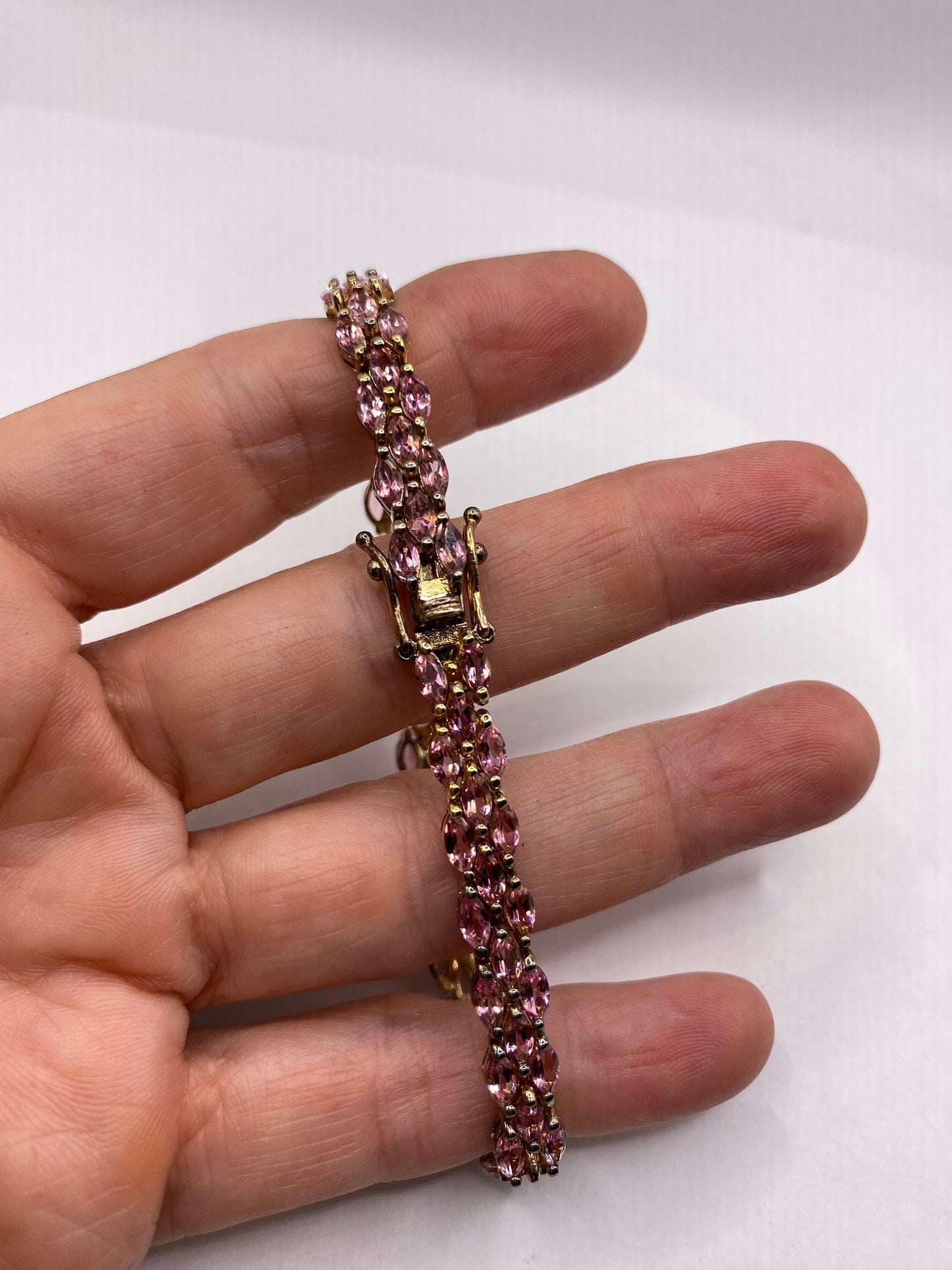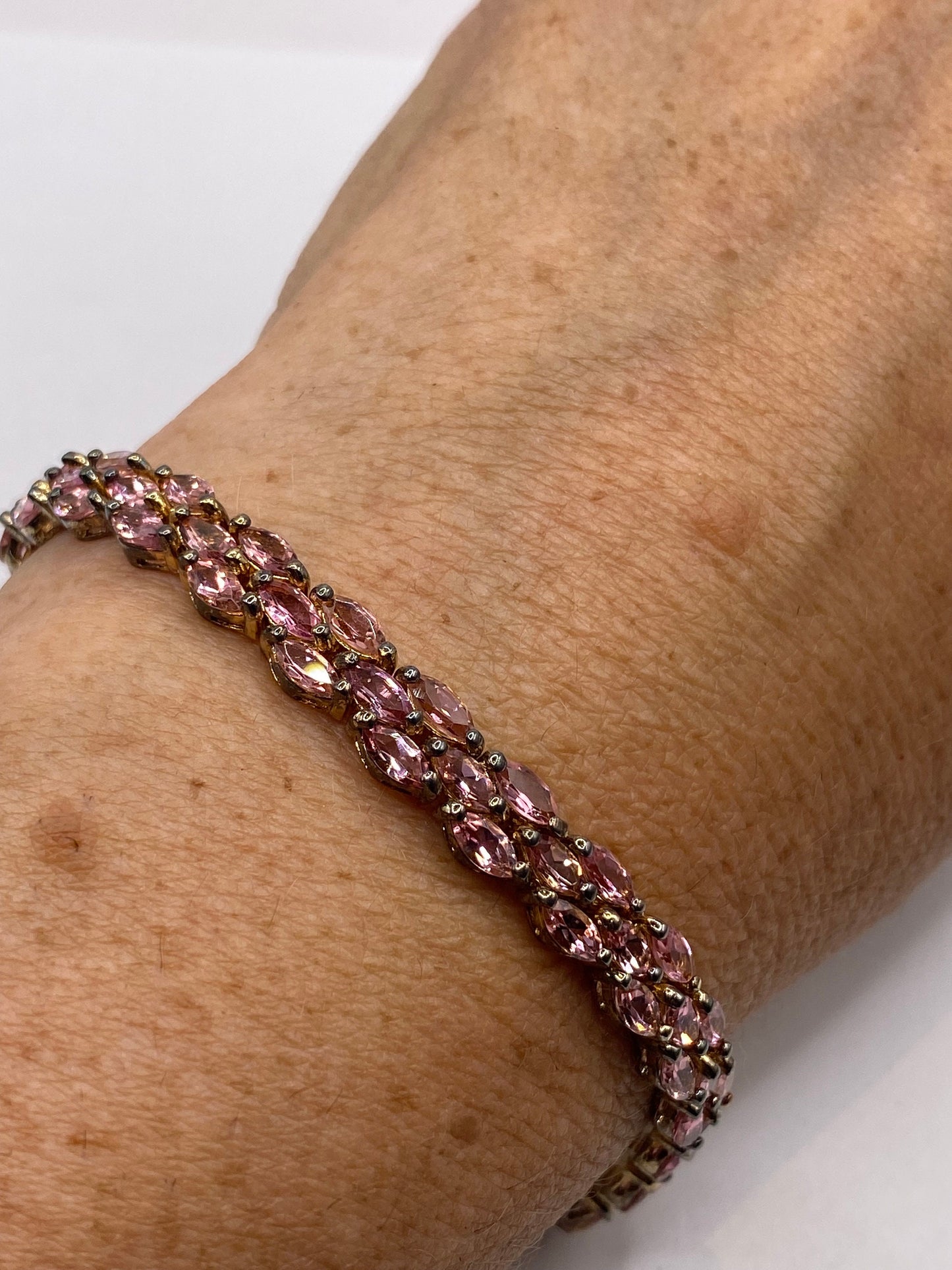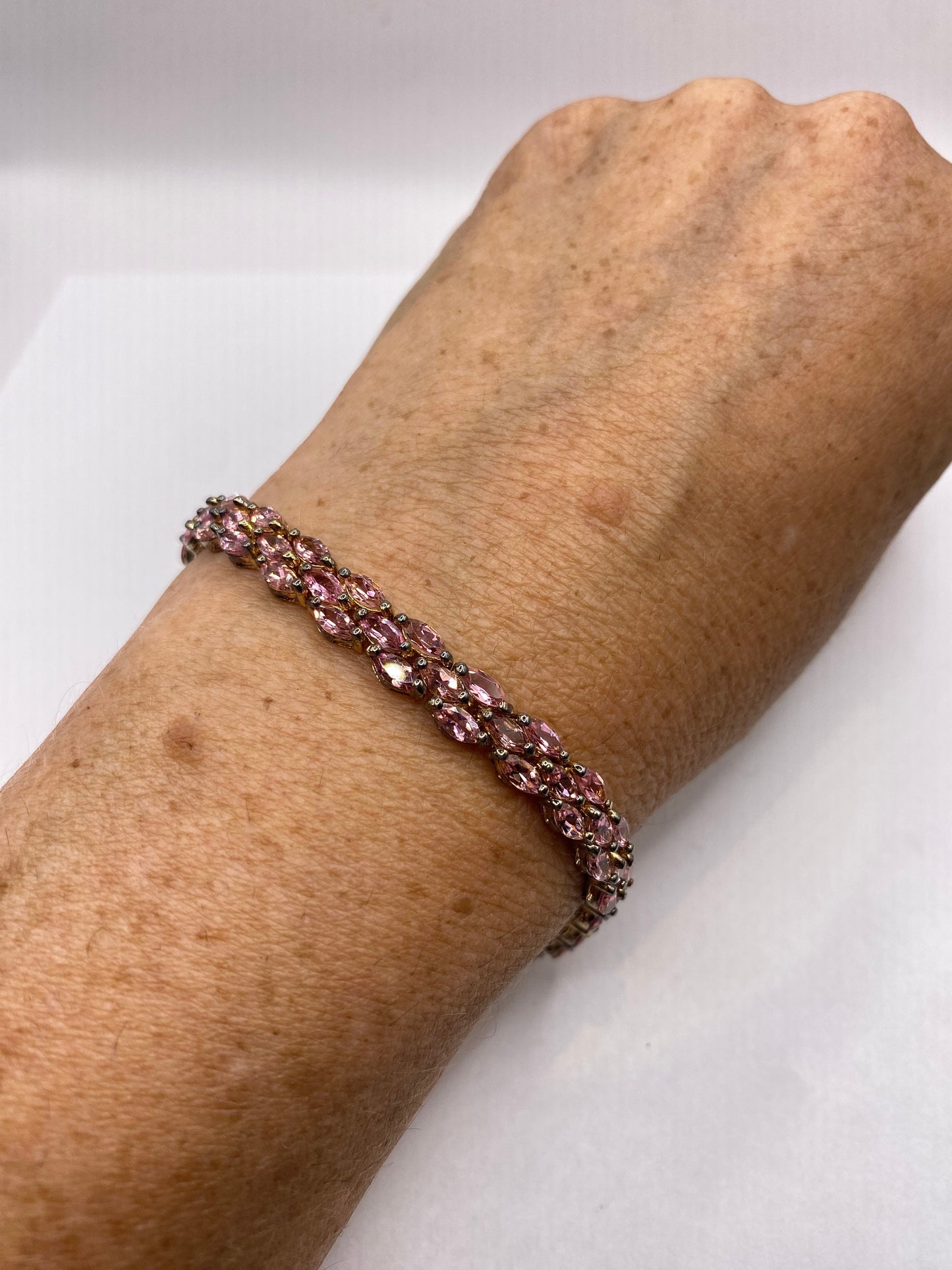 Vintage Handmade Red Tourmaline 925 Sterling Silver Tennis Bracelet