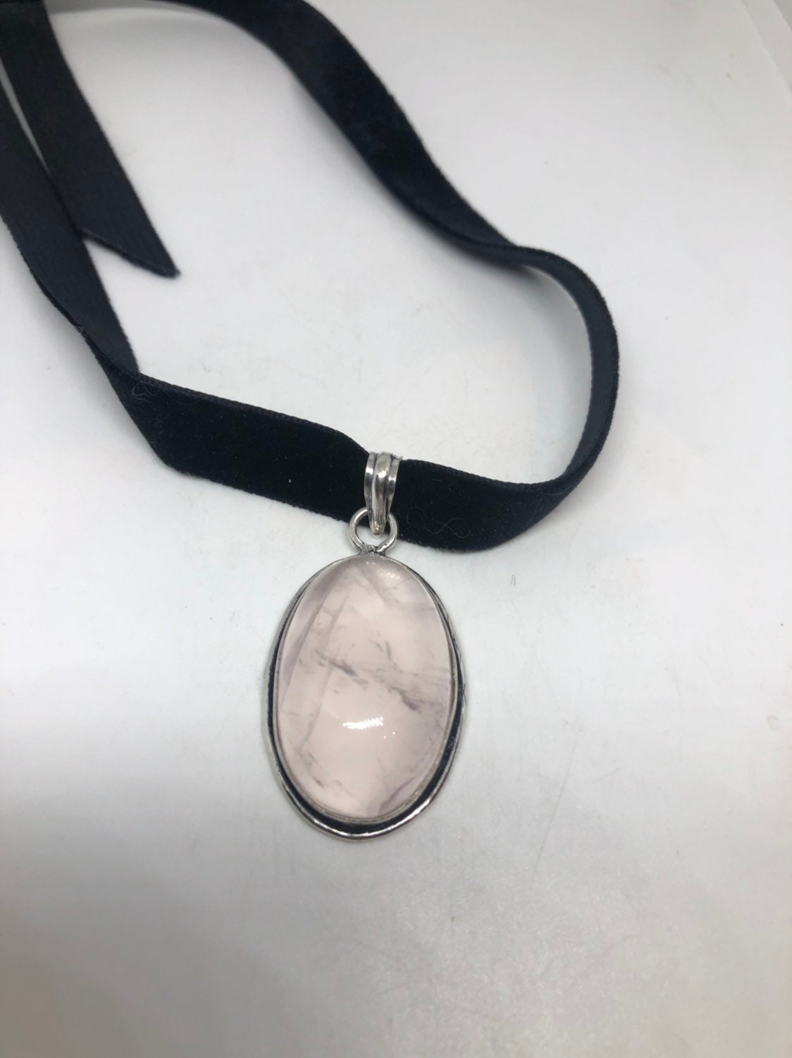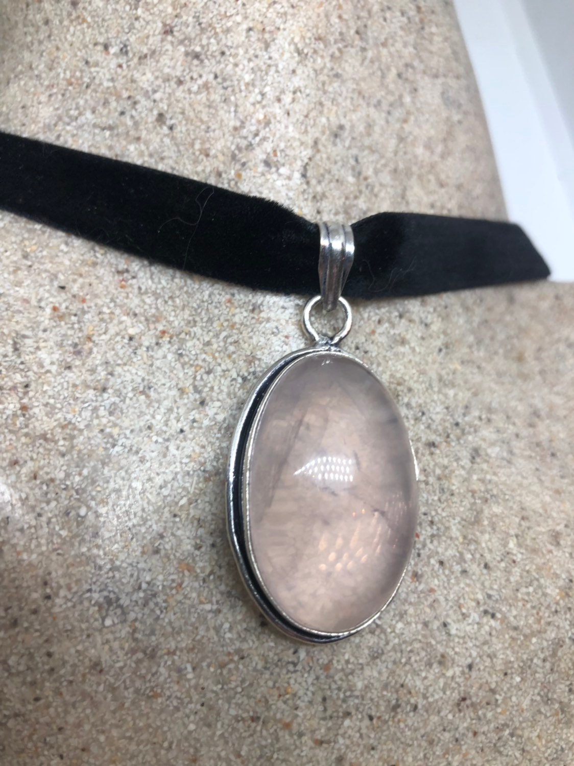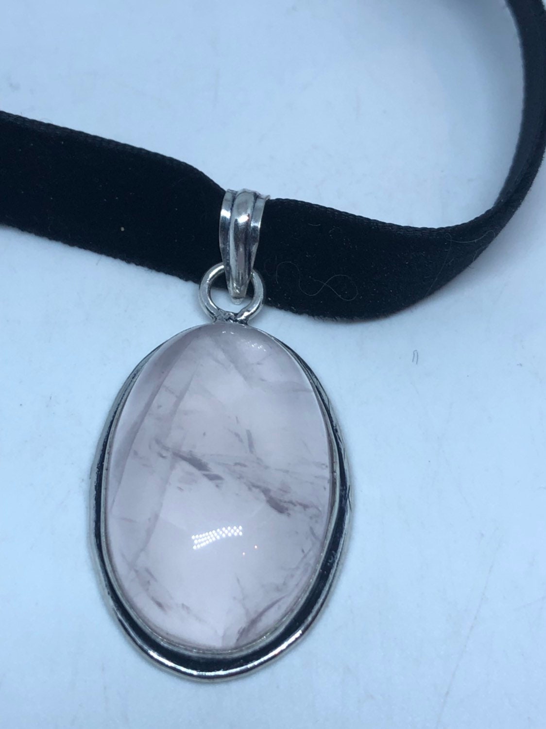 Vintage Handmade Silver Finish Rose Quartz Choker Pendant