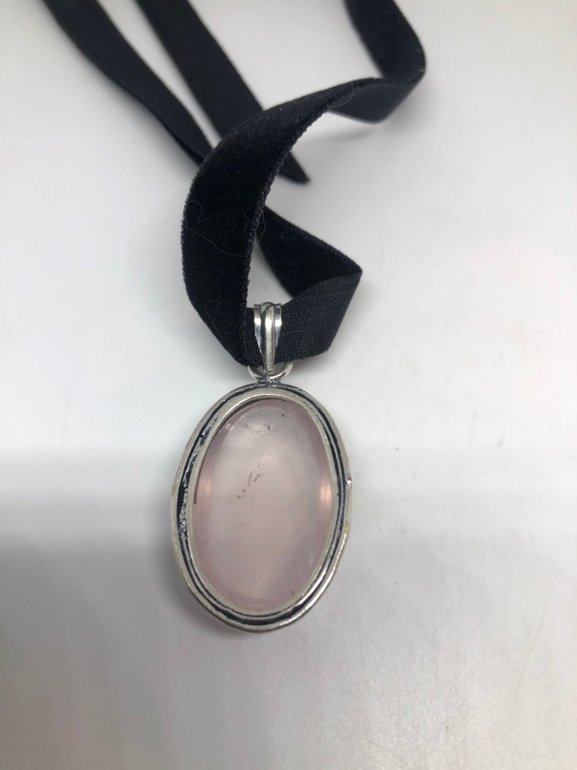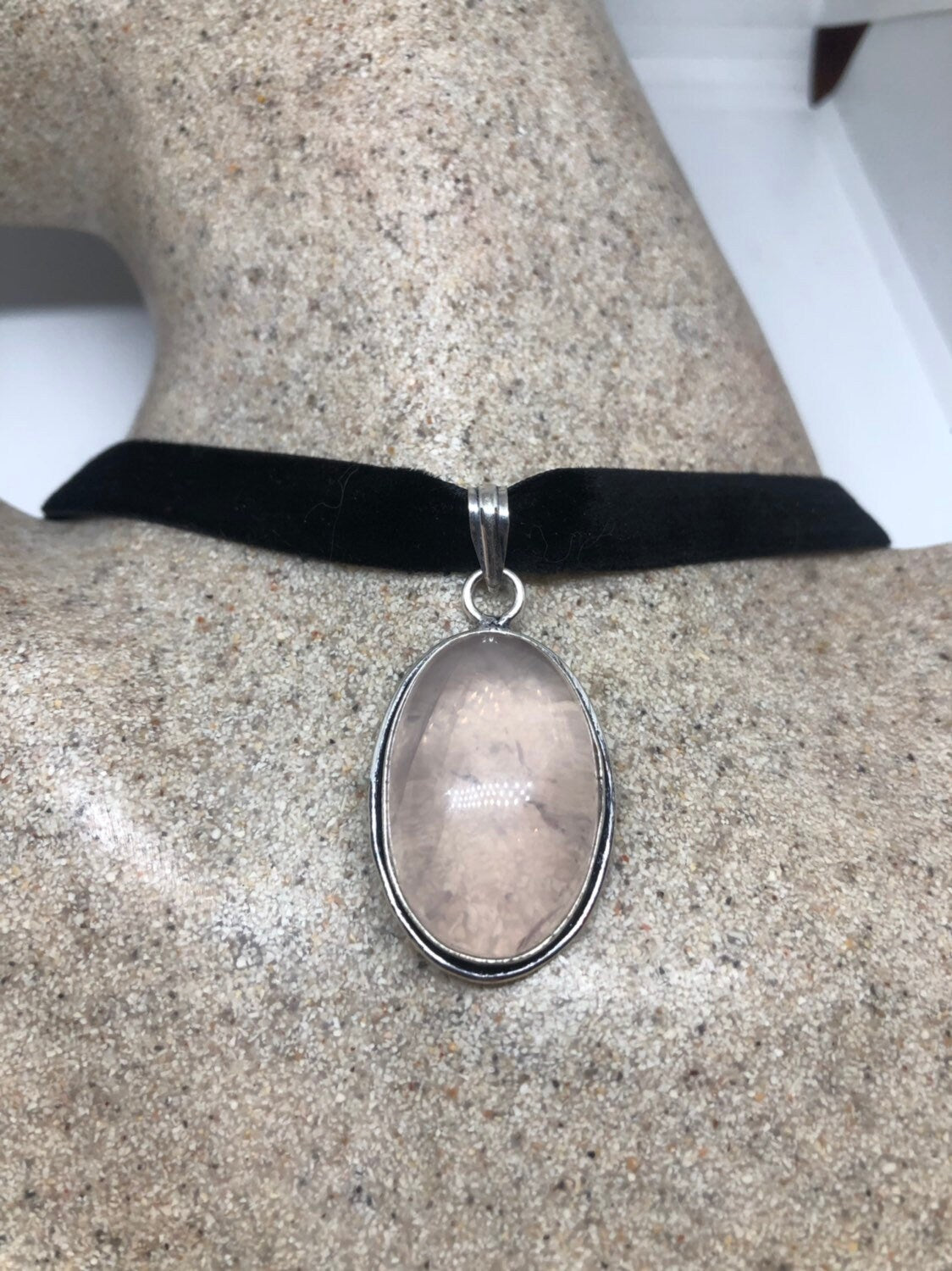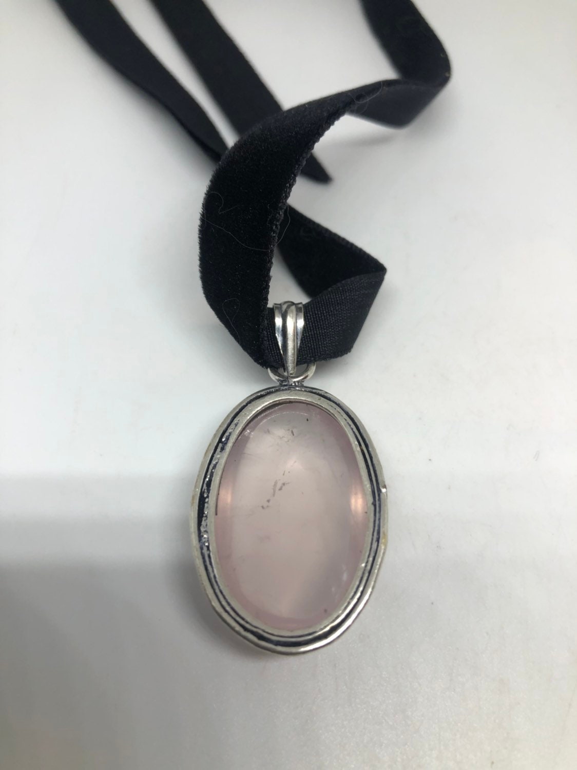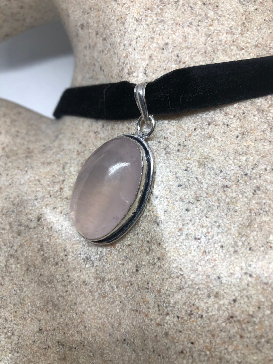 Vintage Handmade Silver Finish Rose Quartz Choker Pendant