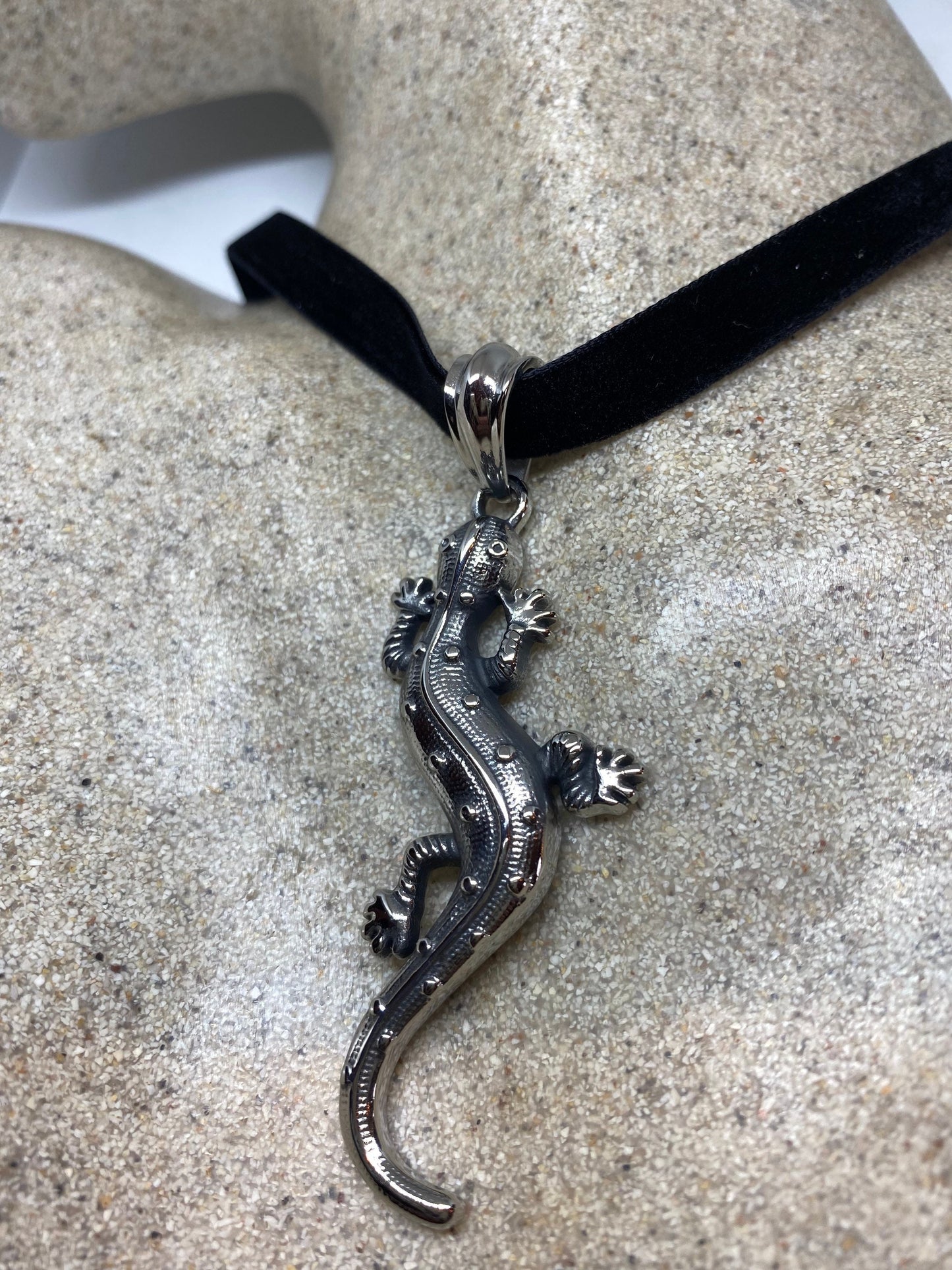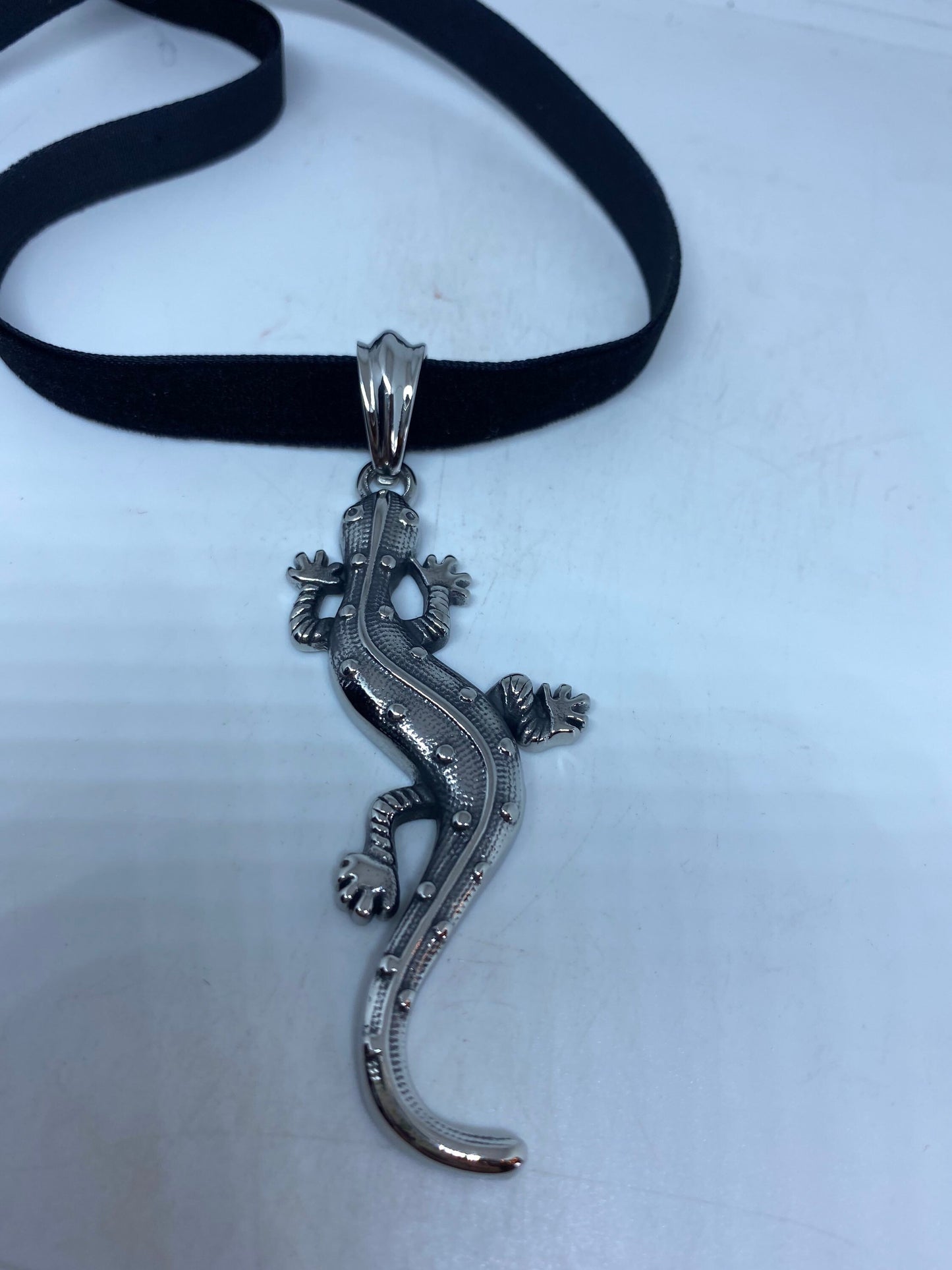 Vintage Handmade Stainless Steel Lizard Amulet Pendant