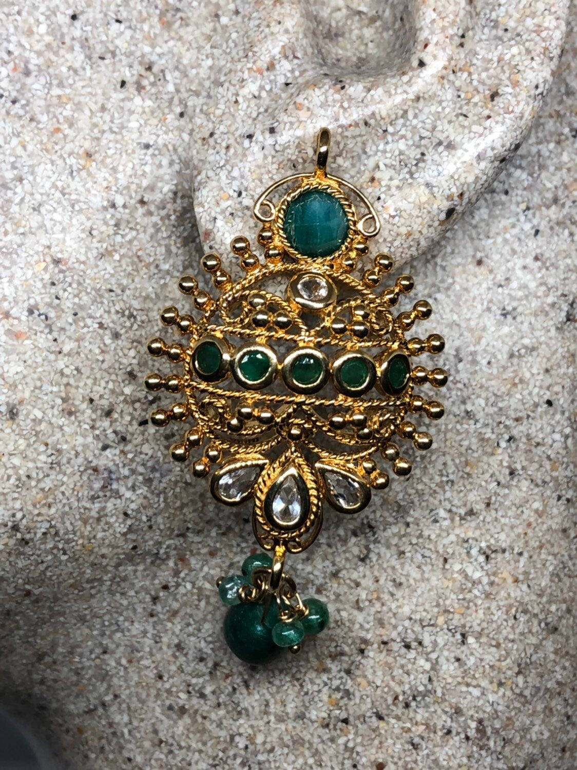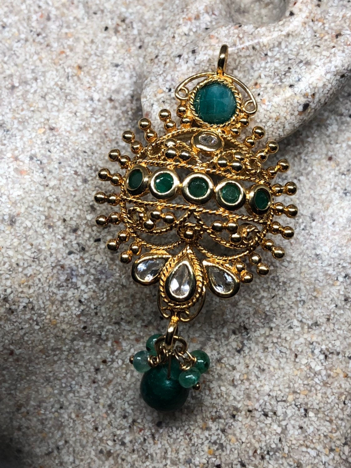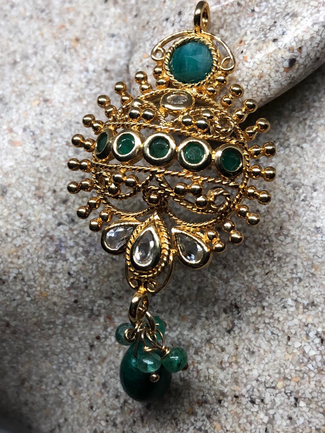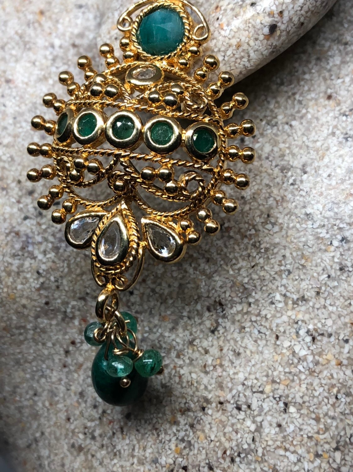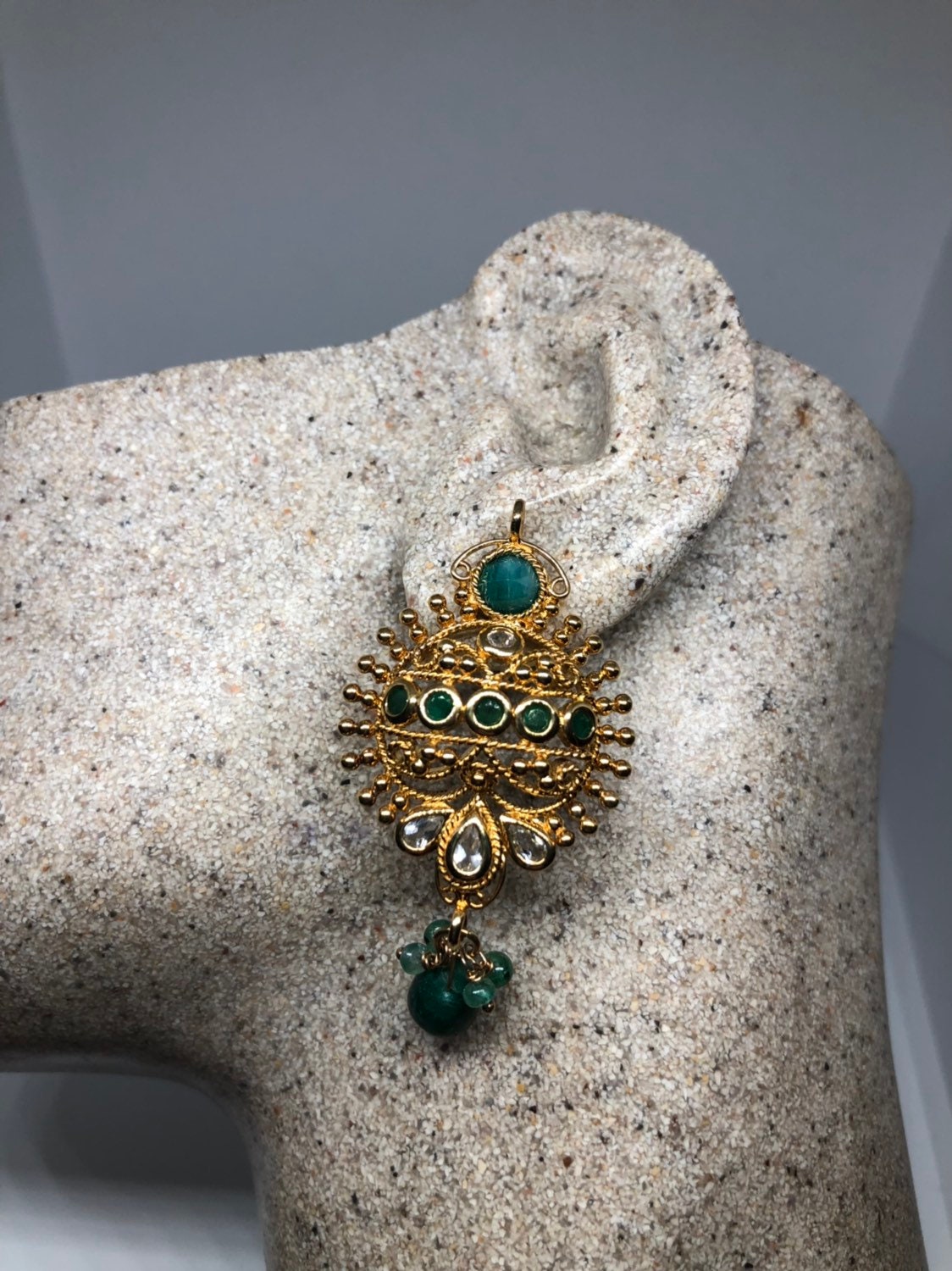 Vintage Handmade Sterling Silver Genuine Green Emerald White Sapphire Stud button Earrings