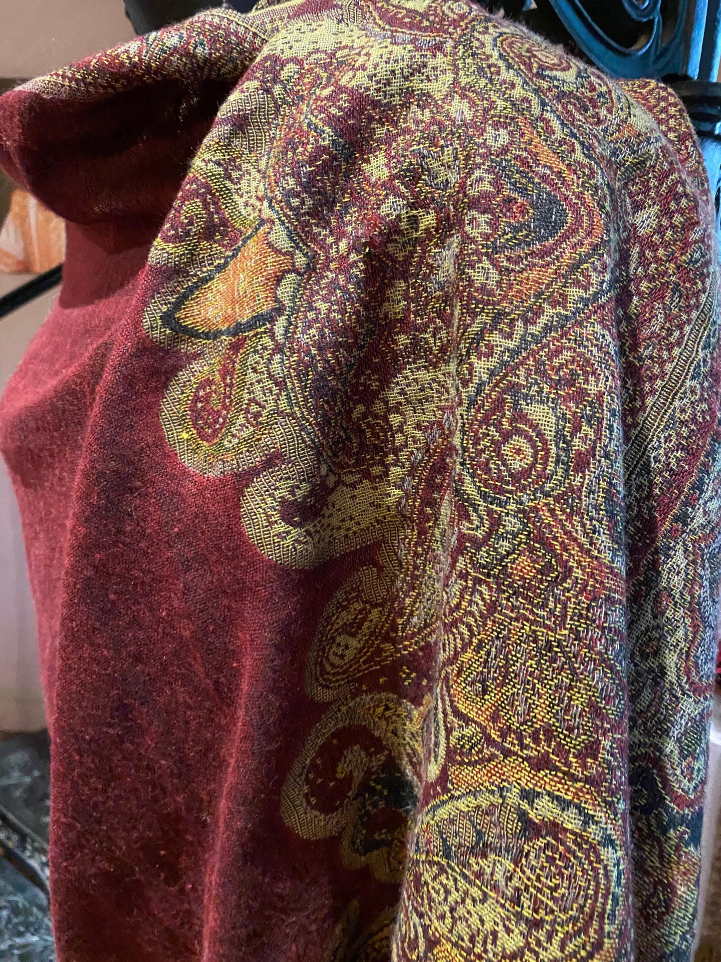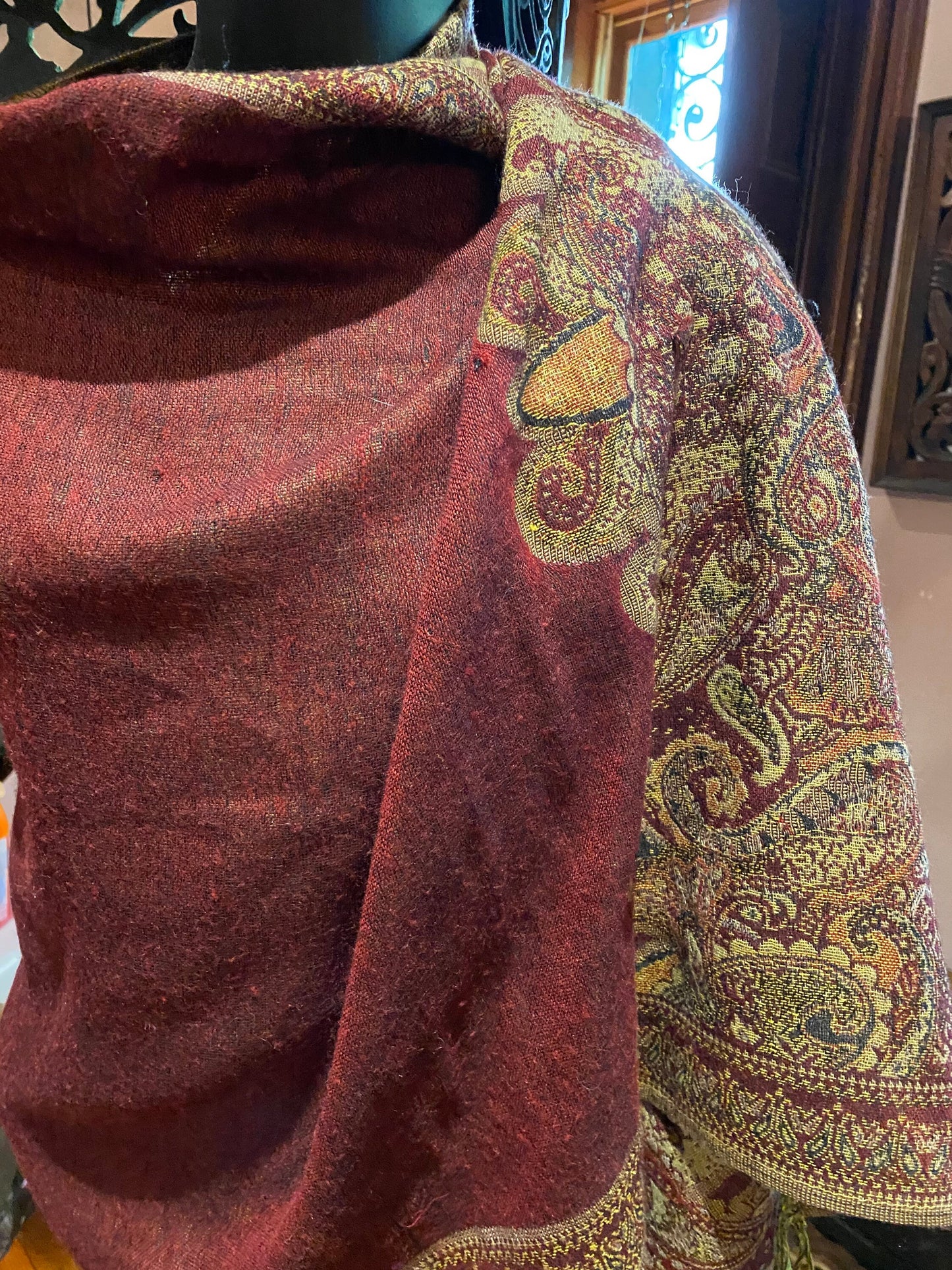 This vintage-styled shawl features our paisley brocade design, styled from ancient Jamawar Kashmiri motifs