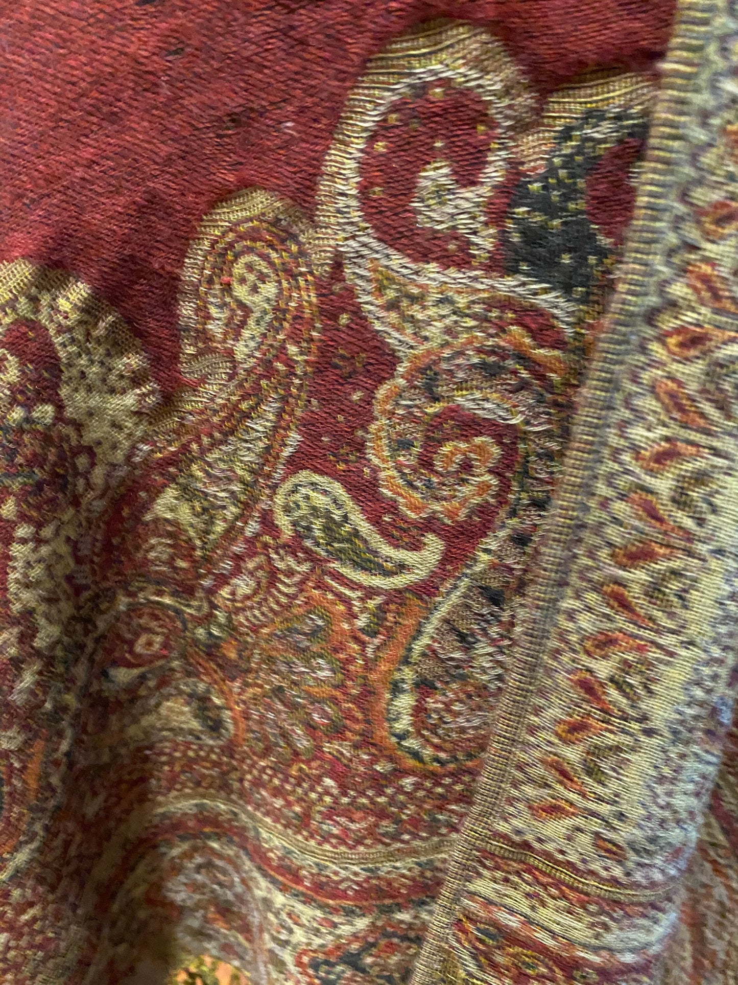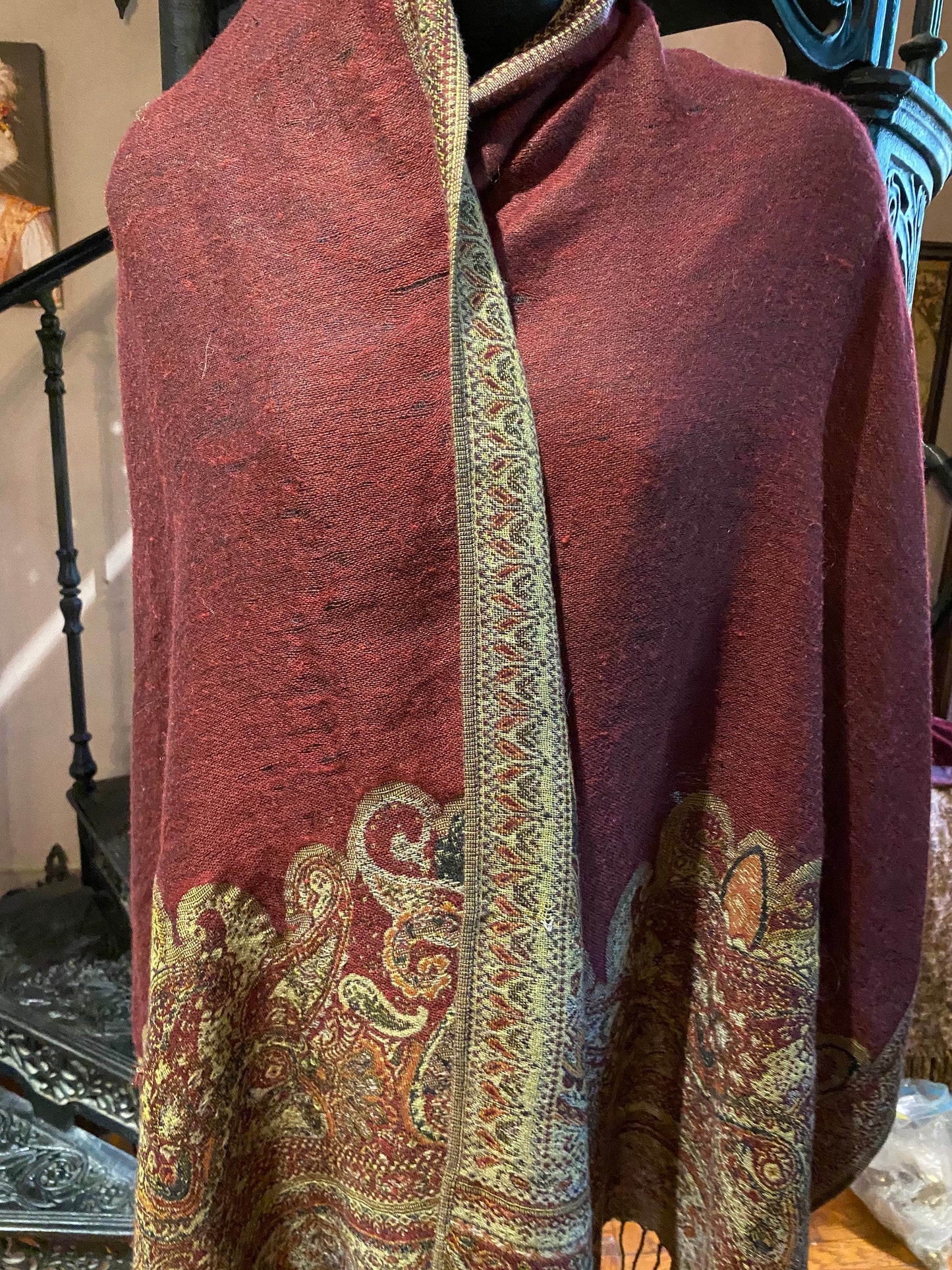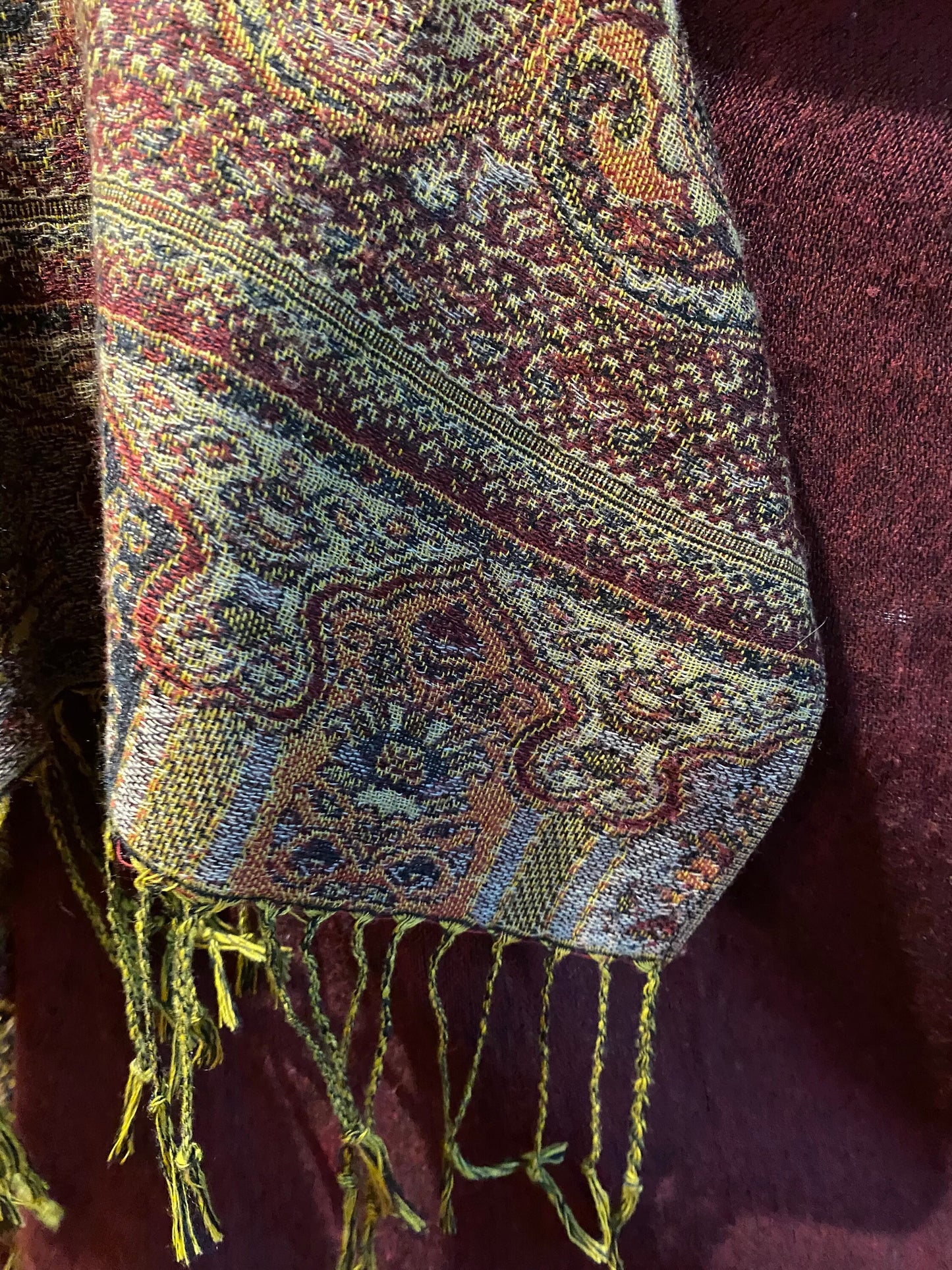 Vintage Jamawar Paisley Brocade Pashmina Scarf Wrap Shawl