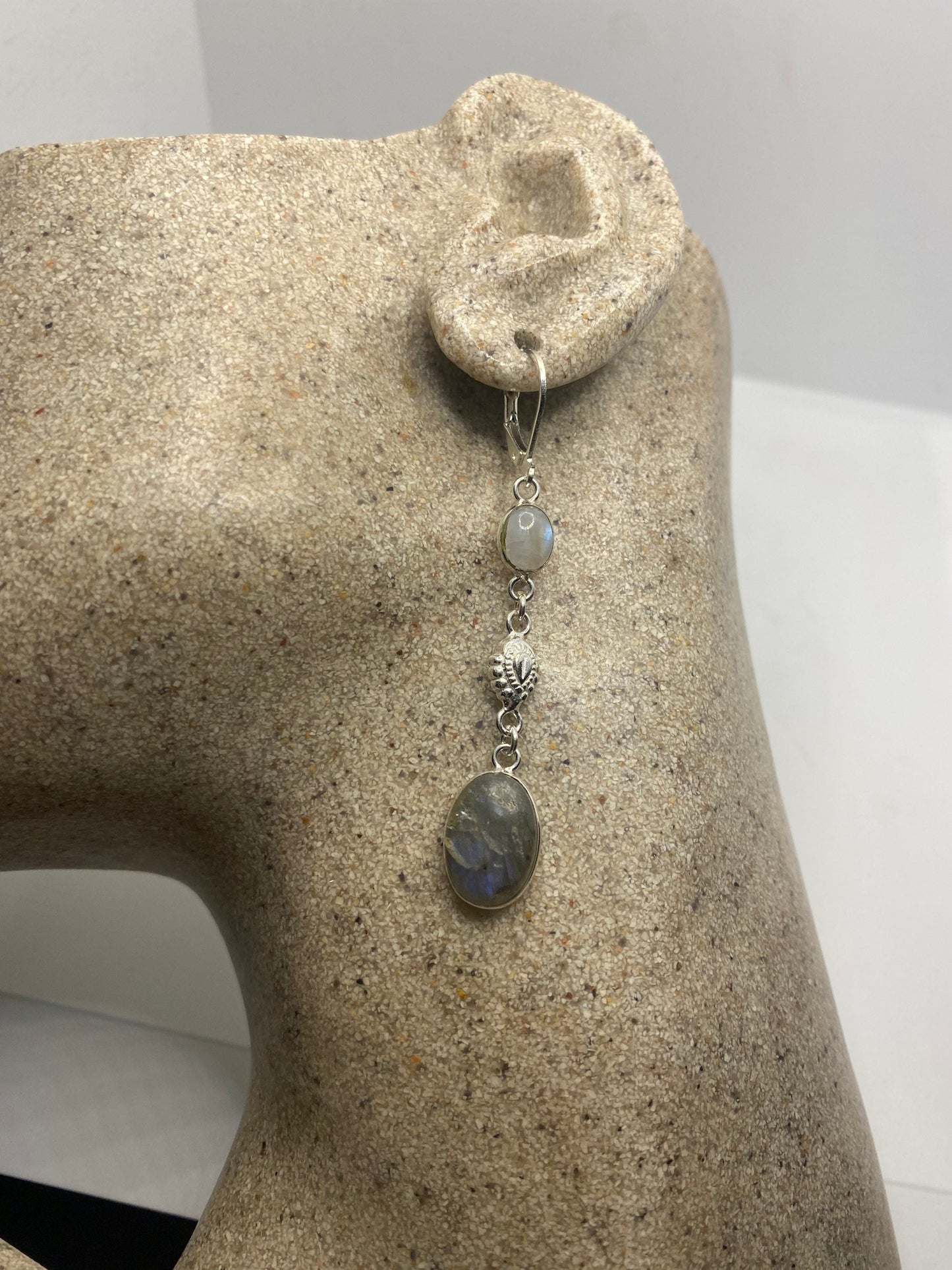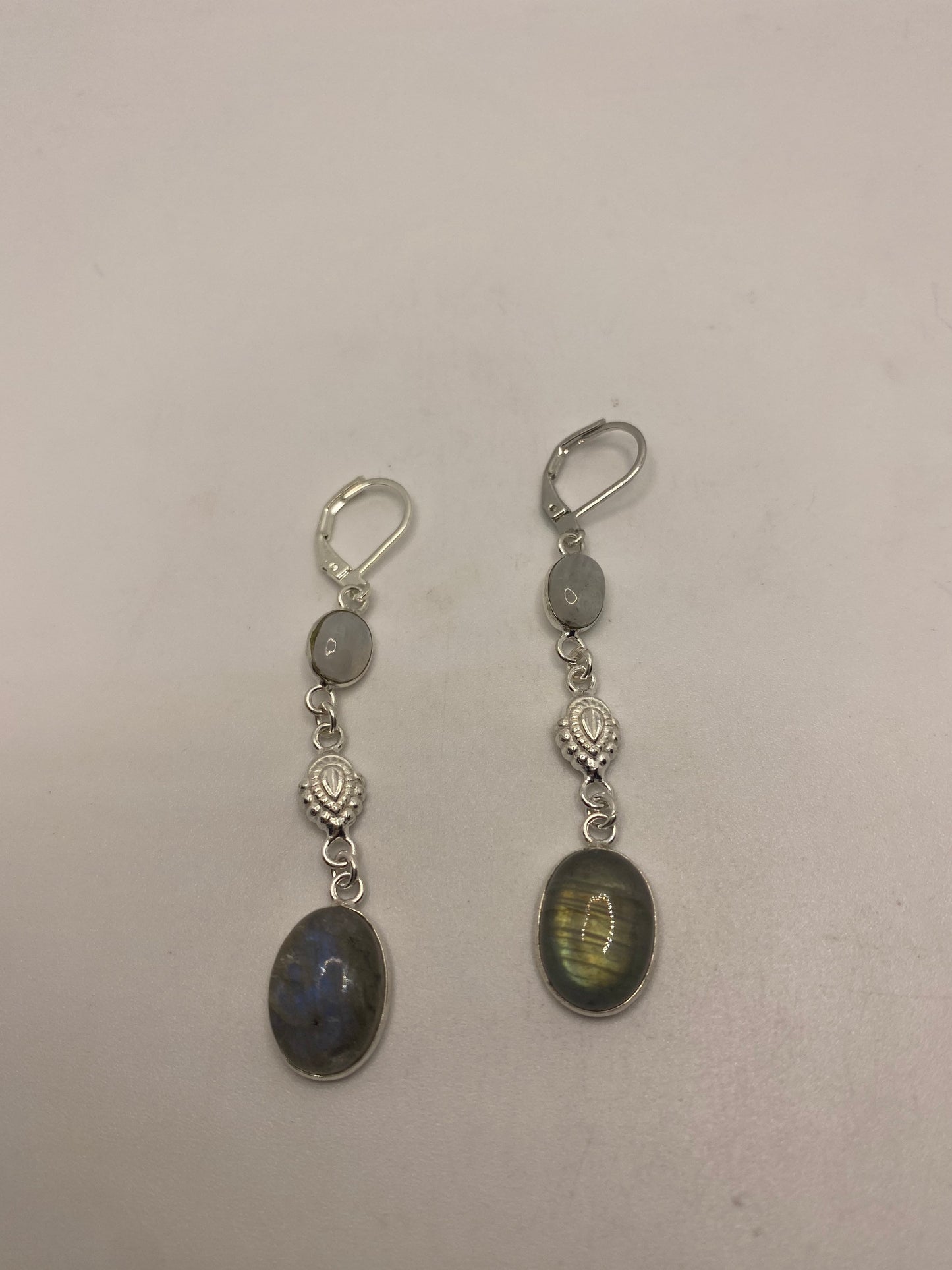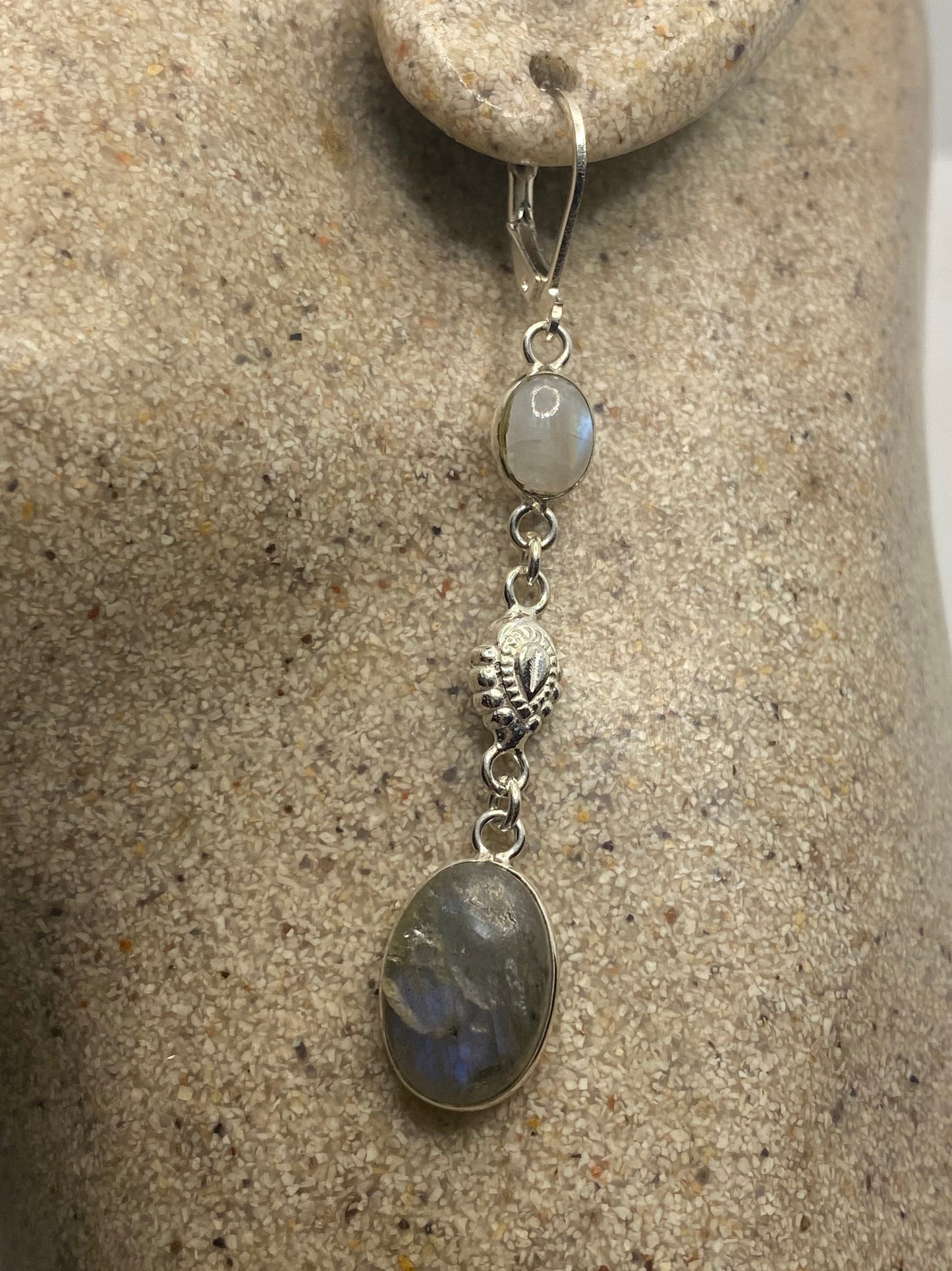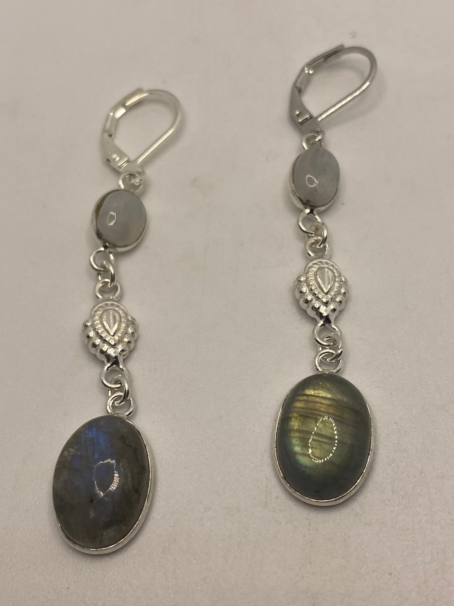 Delicate and detailed green labradorite and stone rainbow moonstone and 925 Silver silver Leverback earrings