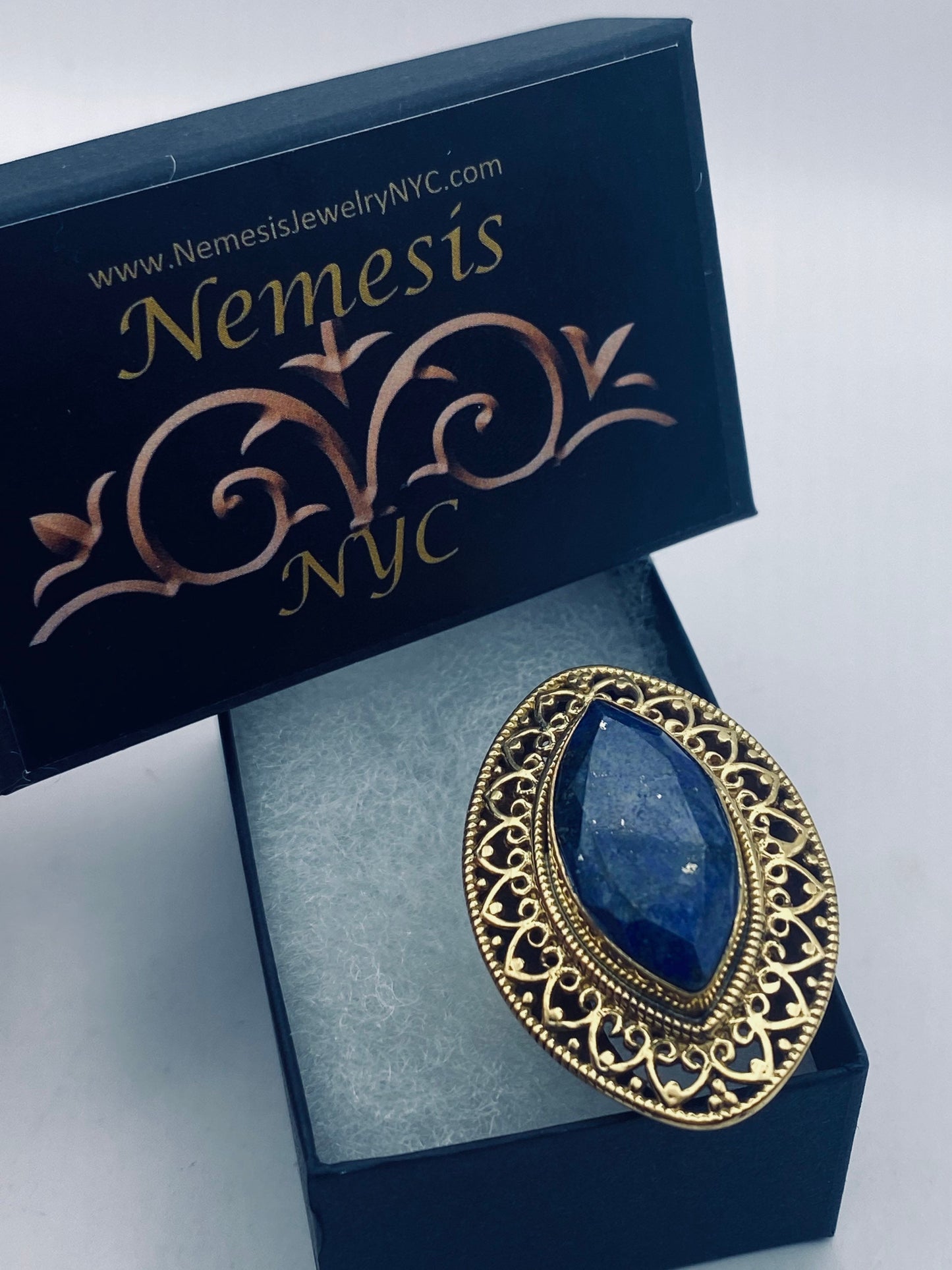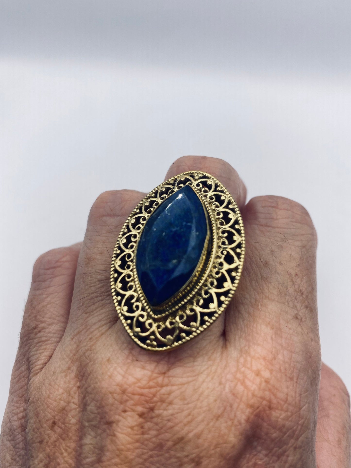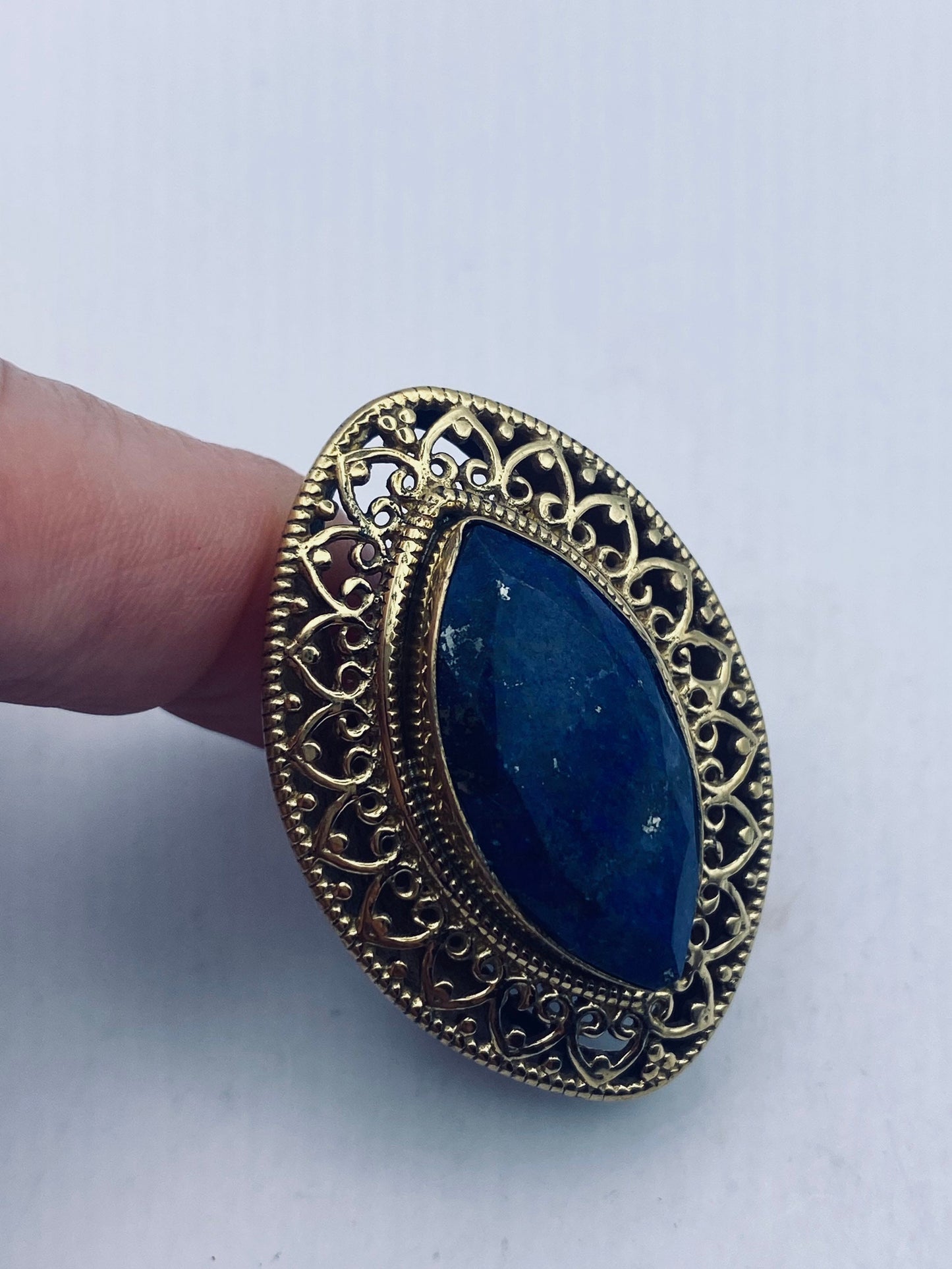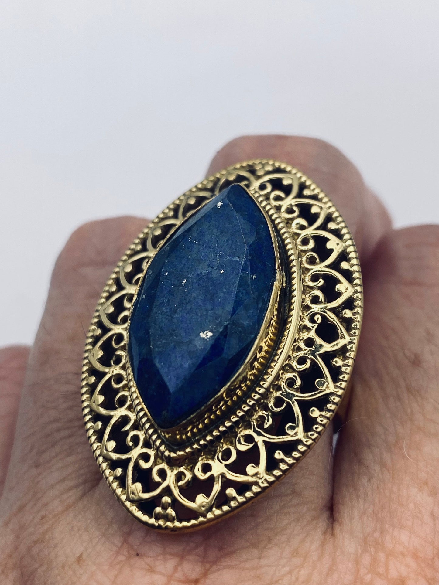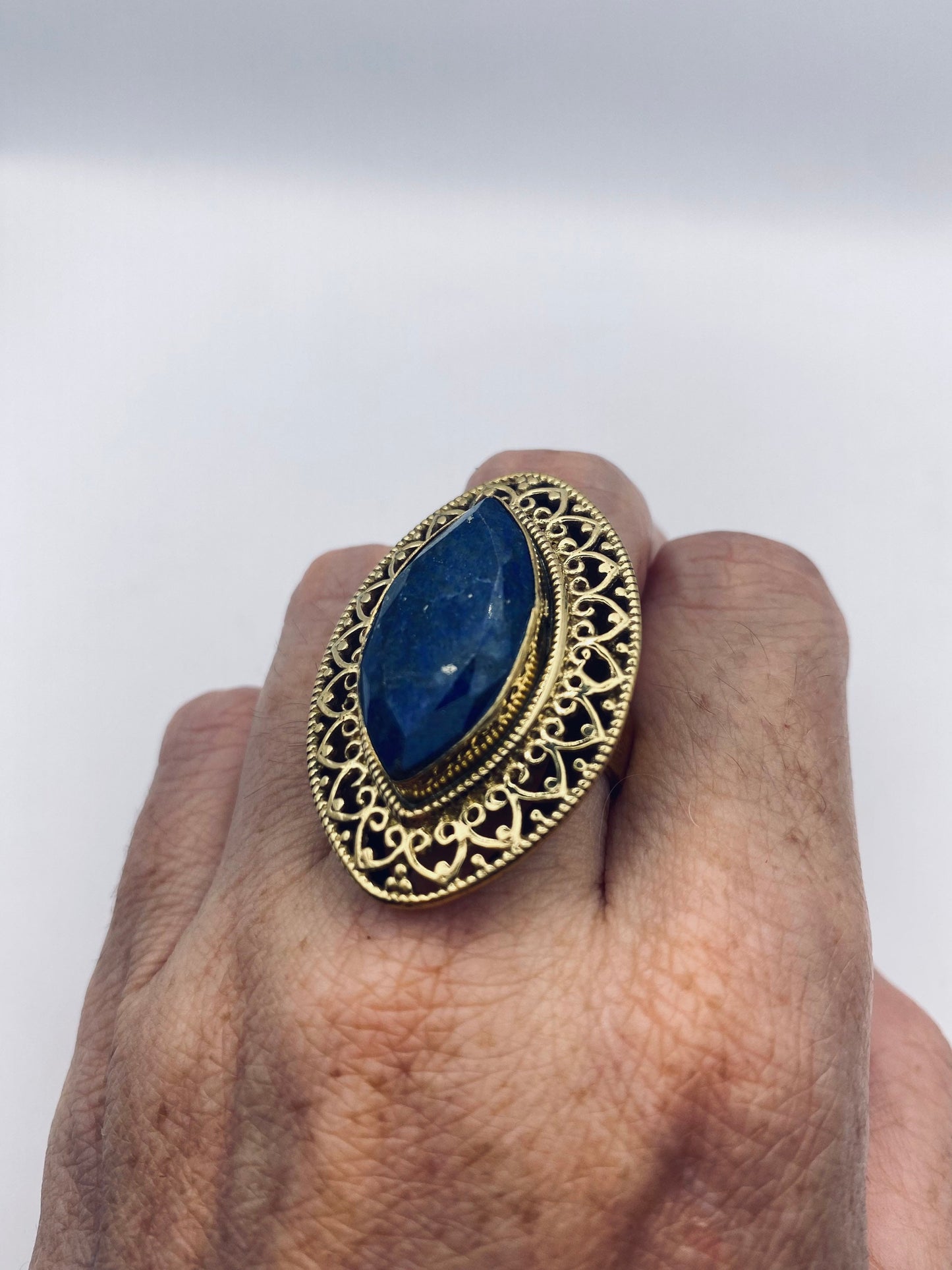 Vintage Lapis Lazuli Gold Bronze Cocktail Ring