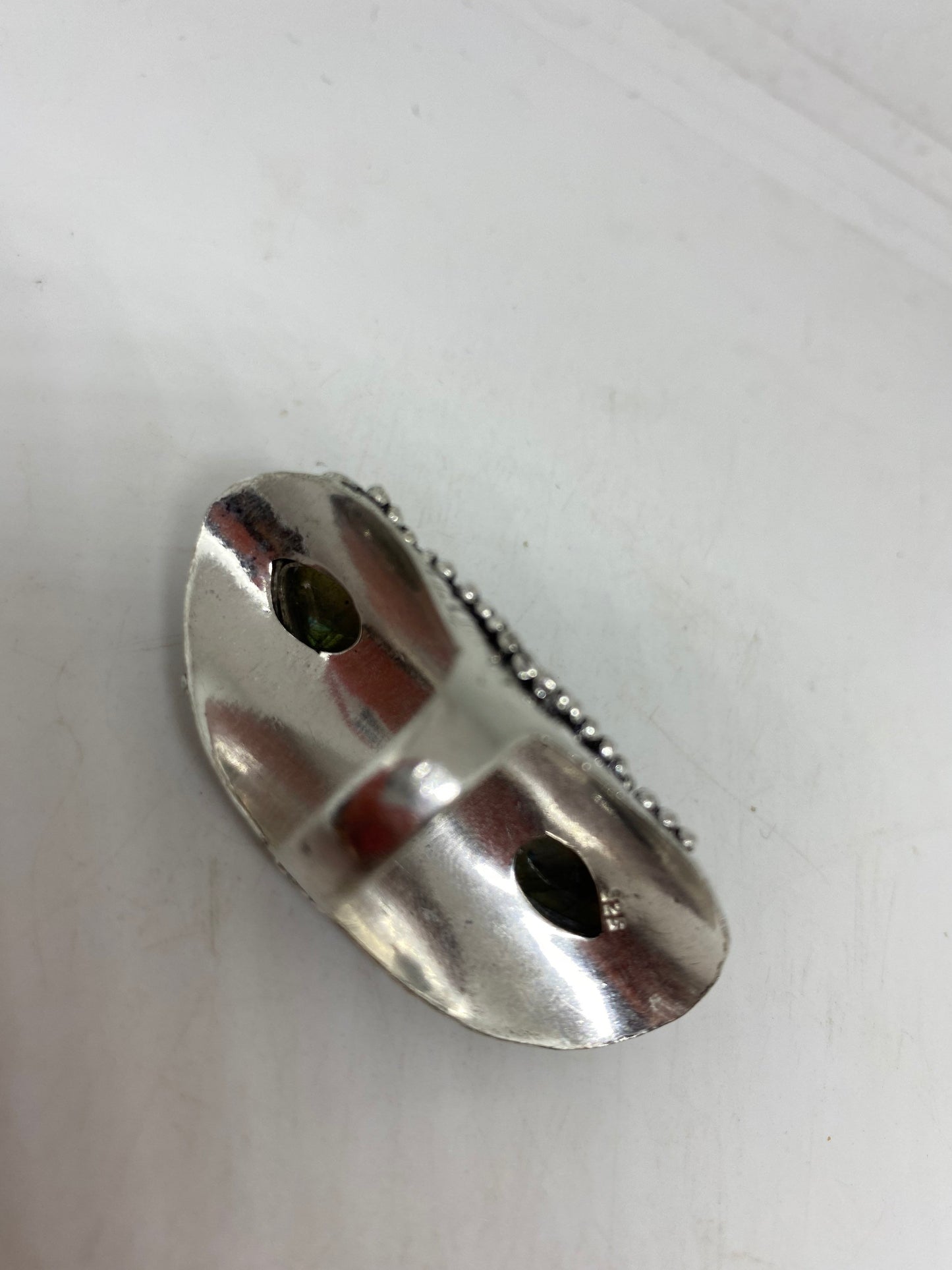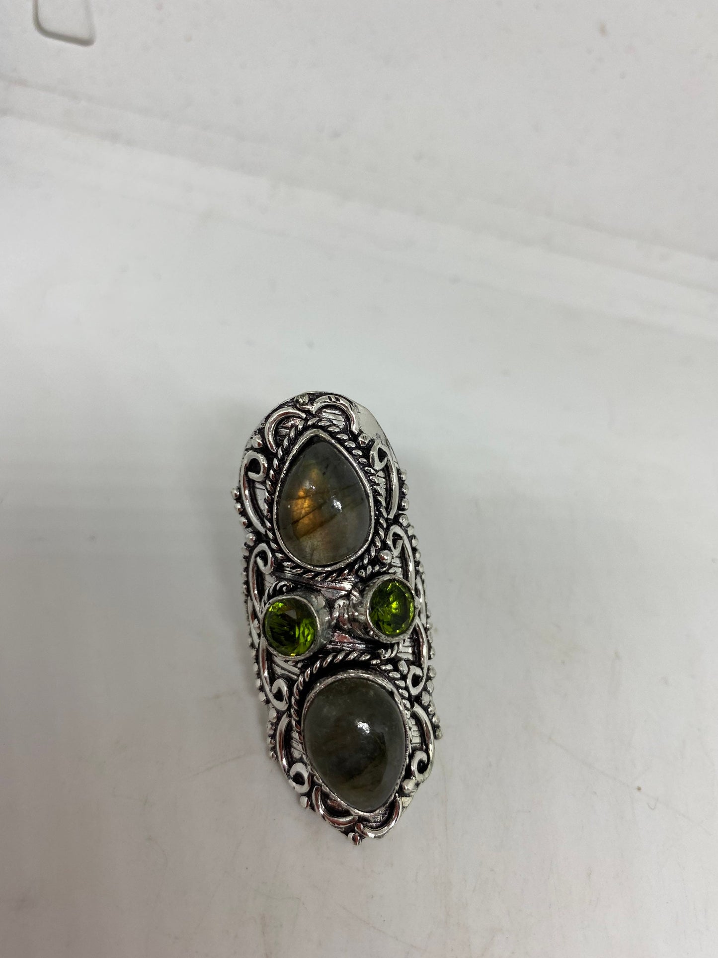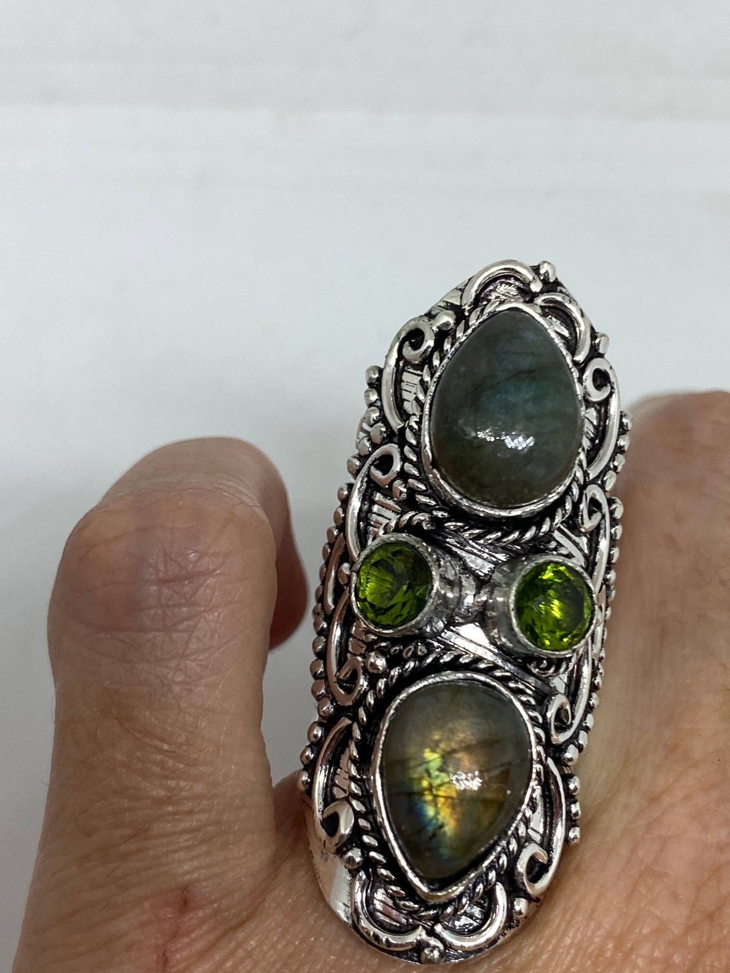 Vintage Large Blue Green Labradorite Stone Silver Ring